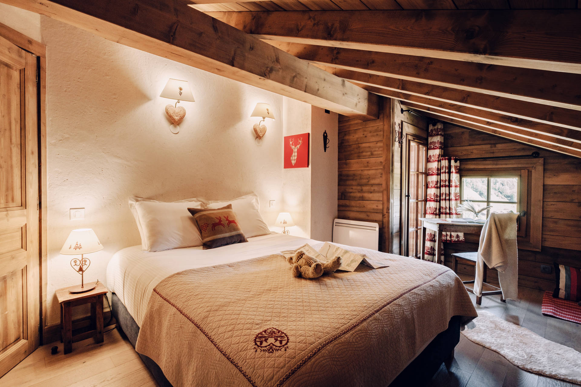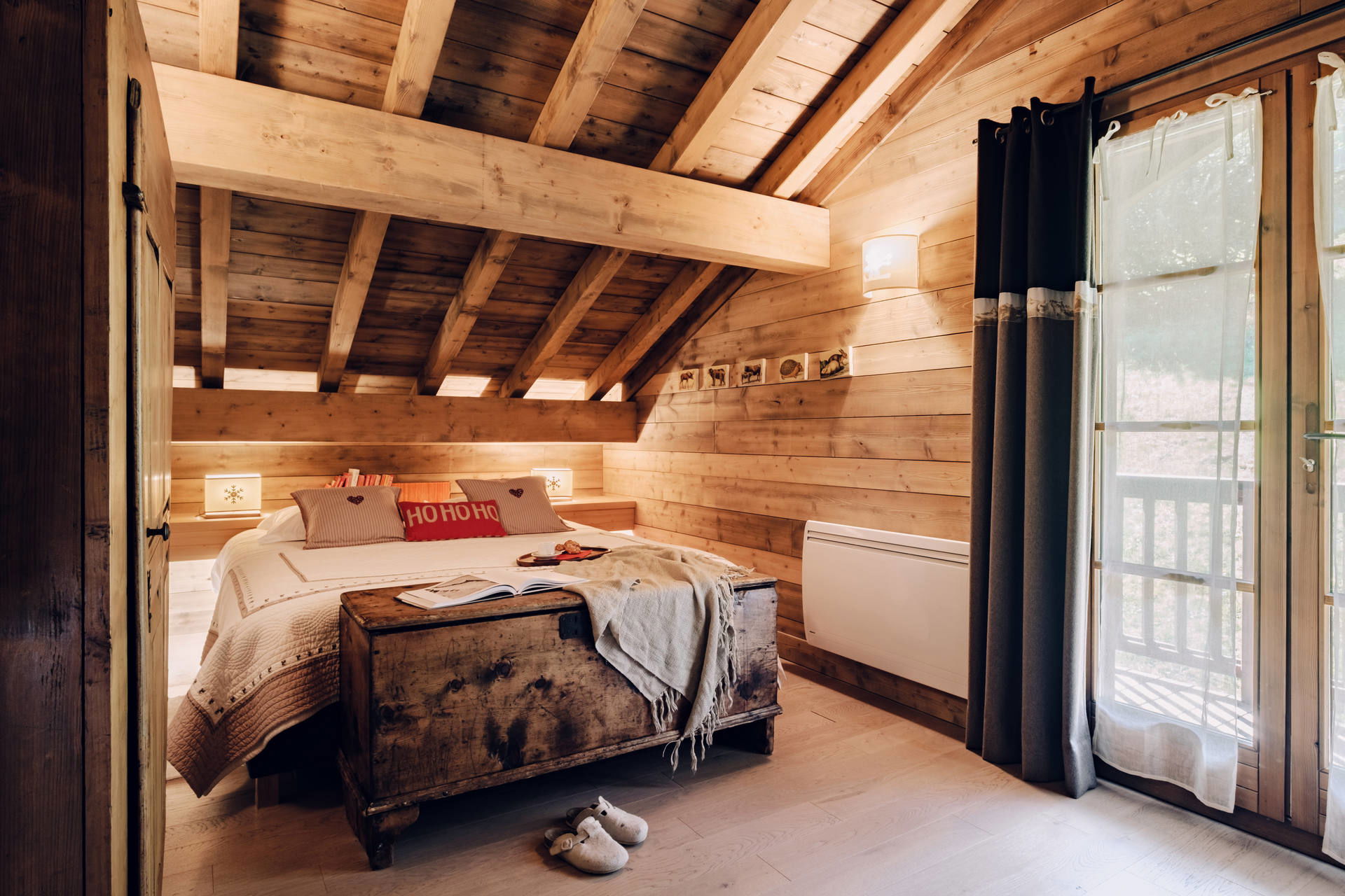 - BEDROOM (16.08 m² including 3.87m² mansard roofed) : 1 DOUBLE BED (160), west facing French window + balcony, fields / next door chalets view. Adjoining shower room: shower, TOWELDRYER radiator (4 m²)