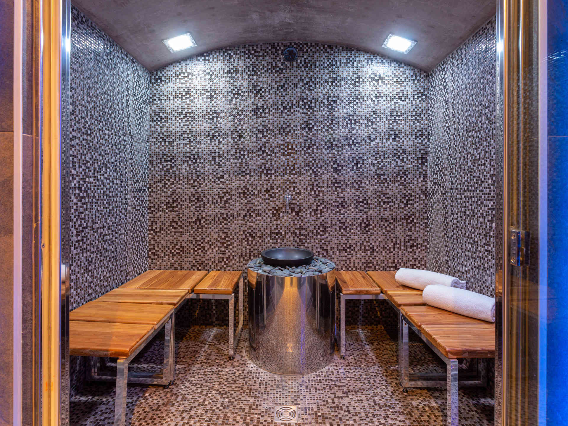 - Wellness: outdoor spa (6 people), sauna, hammam