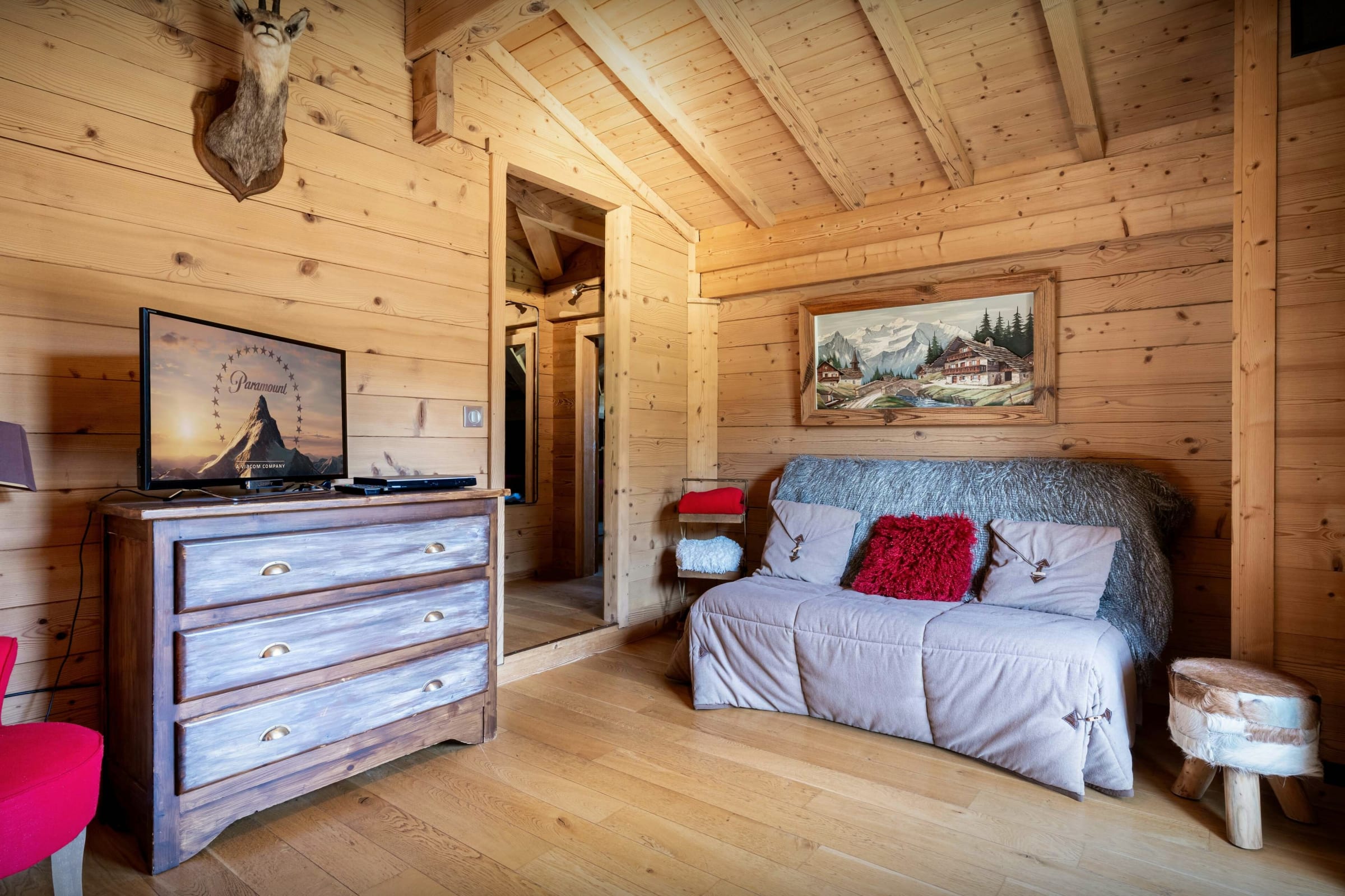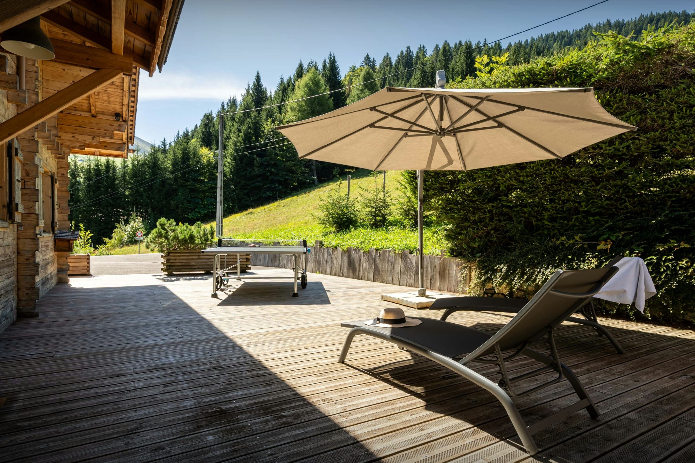 This area opens on to the 150m2 terrace and balcony, which runs around two sides of the chalet to make the most of the sunshine throughout the day. The views are spectacular, and there's a lovely barbecue area too, so that you can eat outside in good weather. At the opposite end of the balcony is the jacuzzi - the perfect place to relax after a busy day. There's a shower room and separate toilet on this floor too.