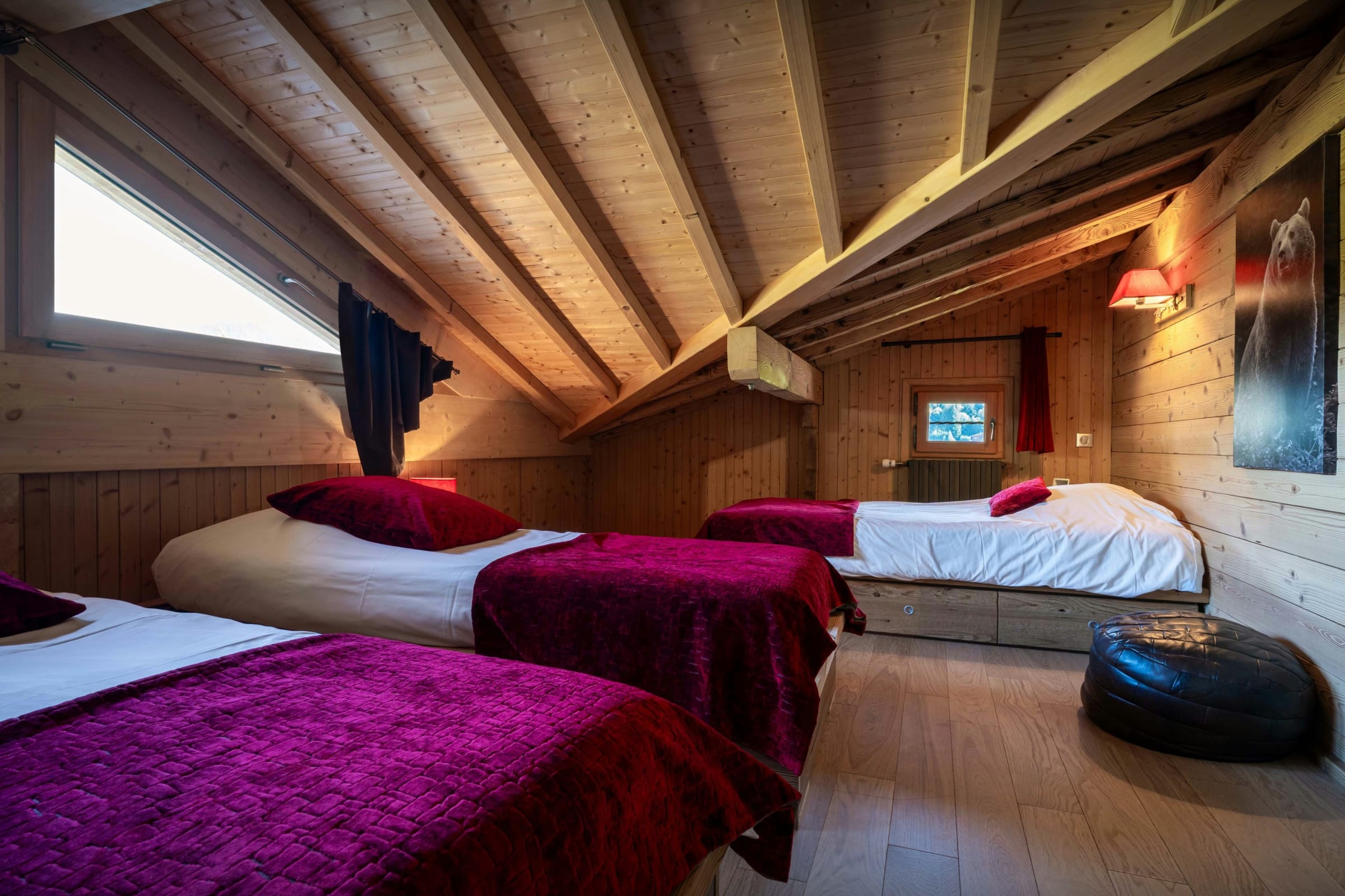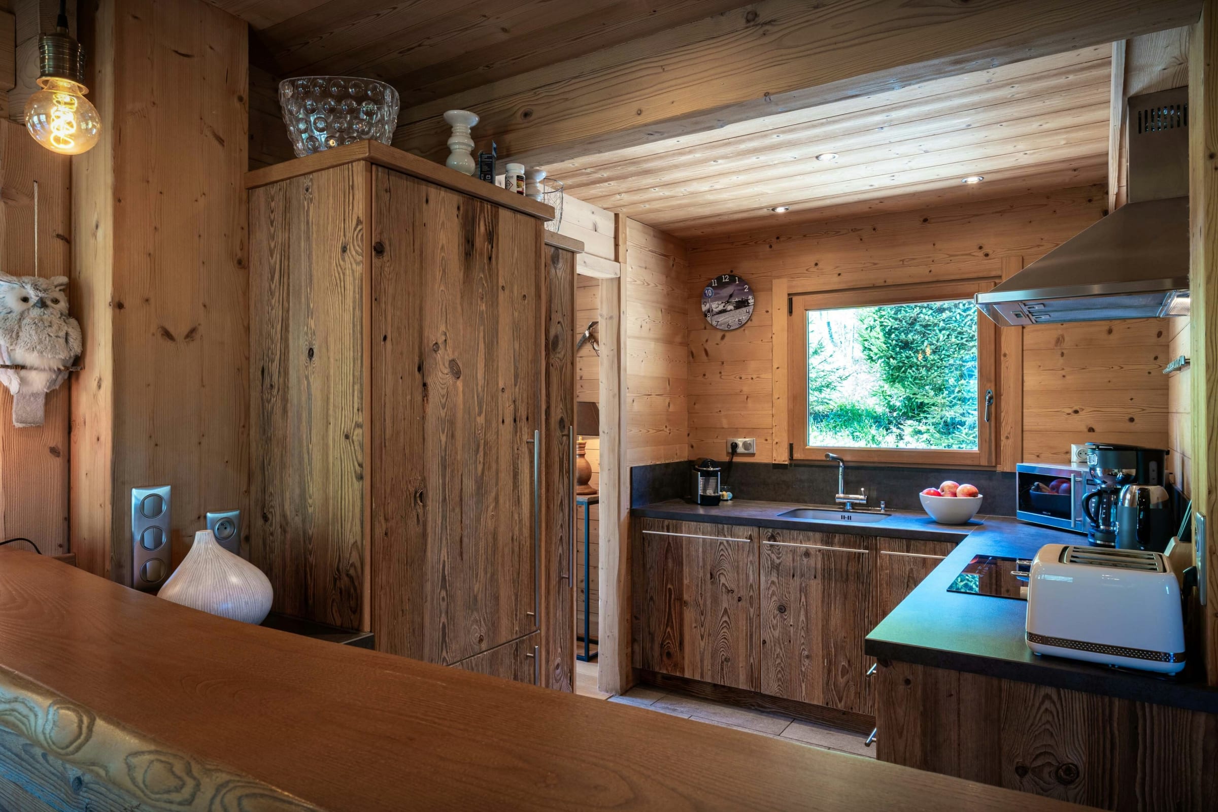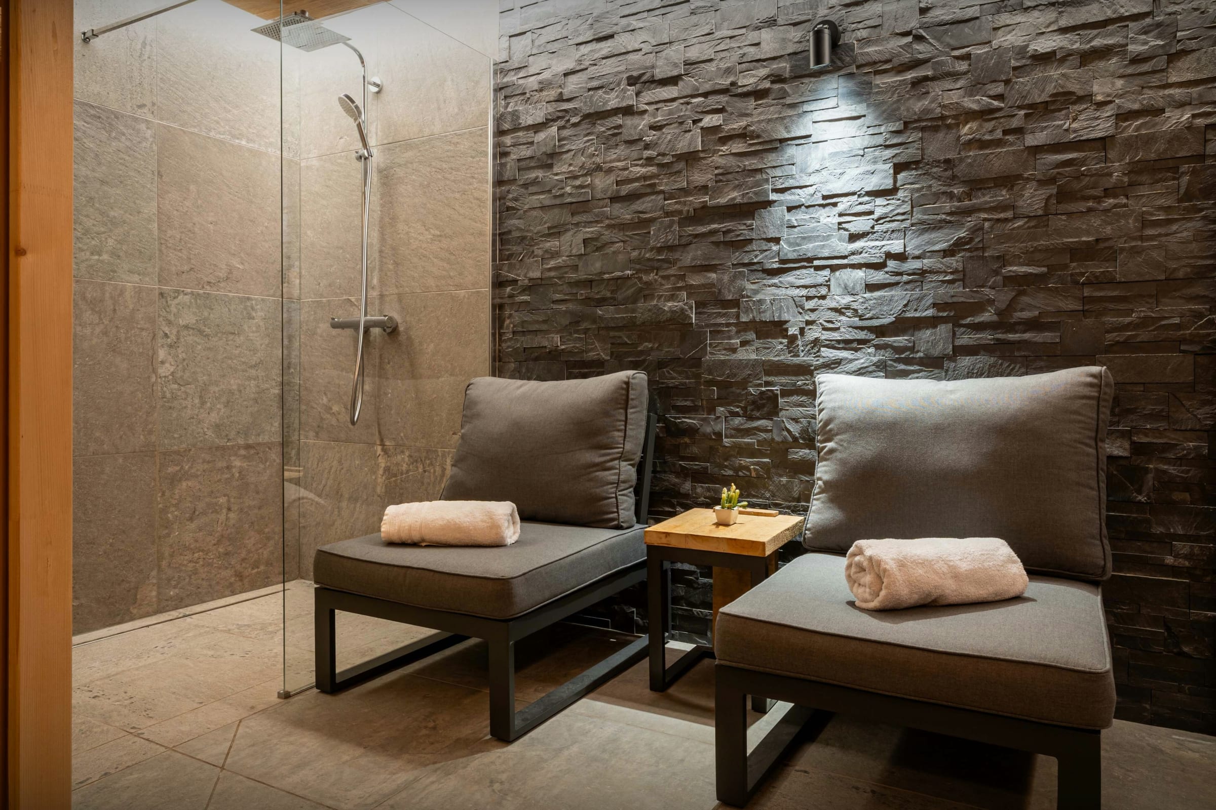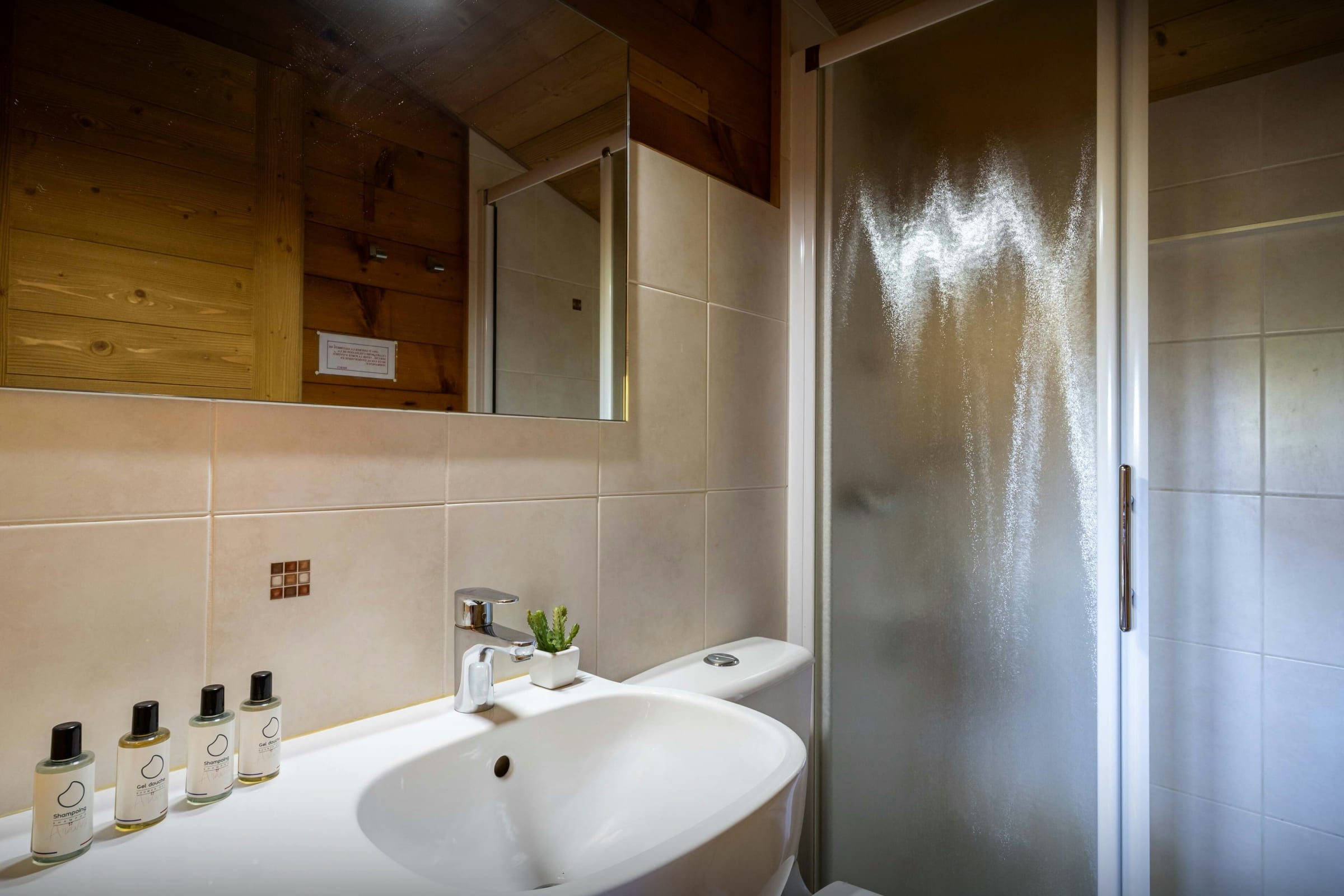 Upstairs there is a double bedroom and a larger 4 people dorm under the eaves. These rooms share a stylish shower room. The dorm can be either set up with 4 single beds, or as a family room with one double bed and two single. There are a further two double en suite bedrooms in the lower level, where you'll also find a really useful ski store (for 12 pairs of skis, with also 2 boot warmers), lots of hanging space, a laundry and drying room, and more importably a fantastic sauna to relax after an active day in the mountains.