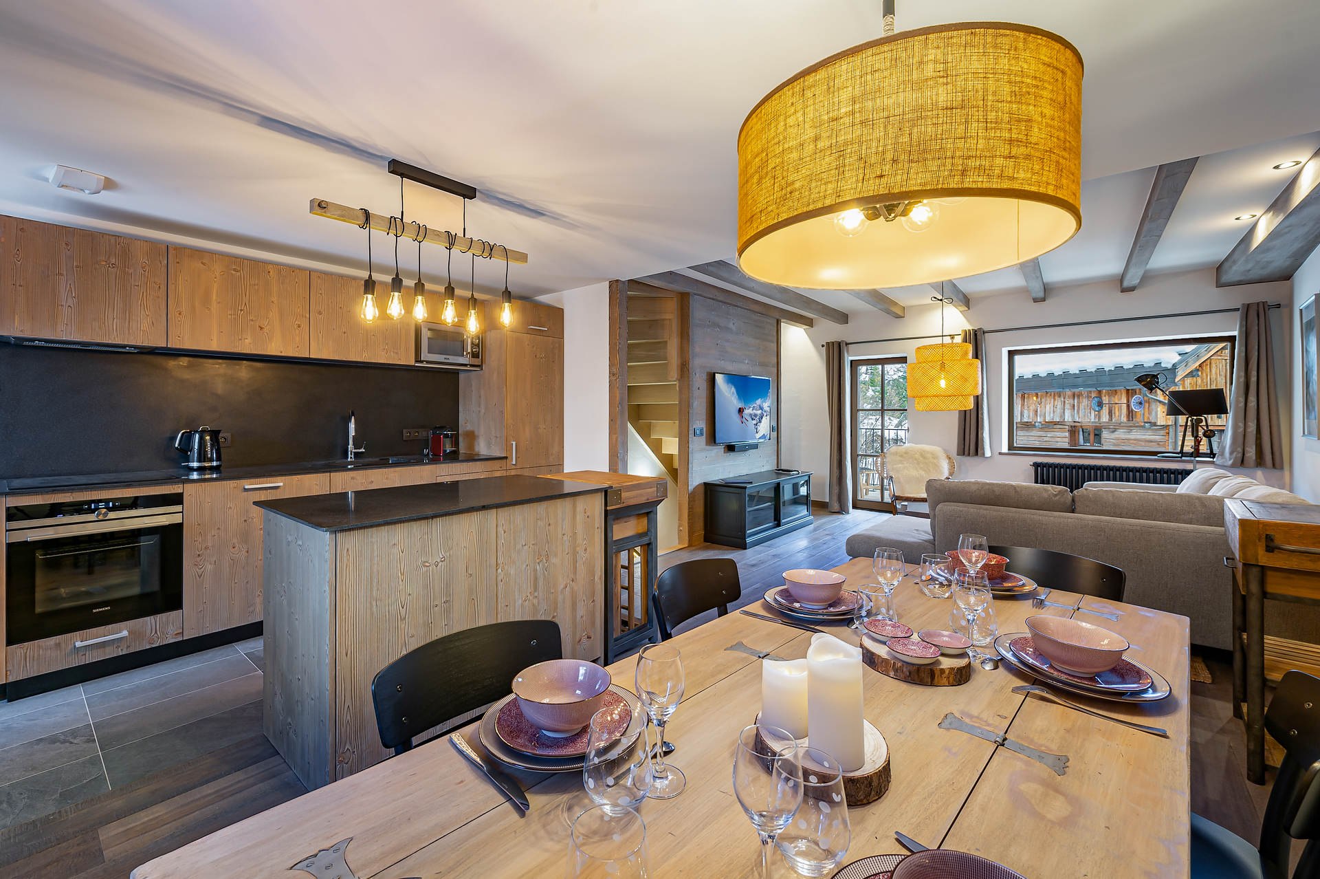 - Open kitchen (vitro-ceramic hob, oven, fridge, freezer, microwave, Nespresso, dishwasher)
