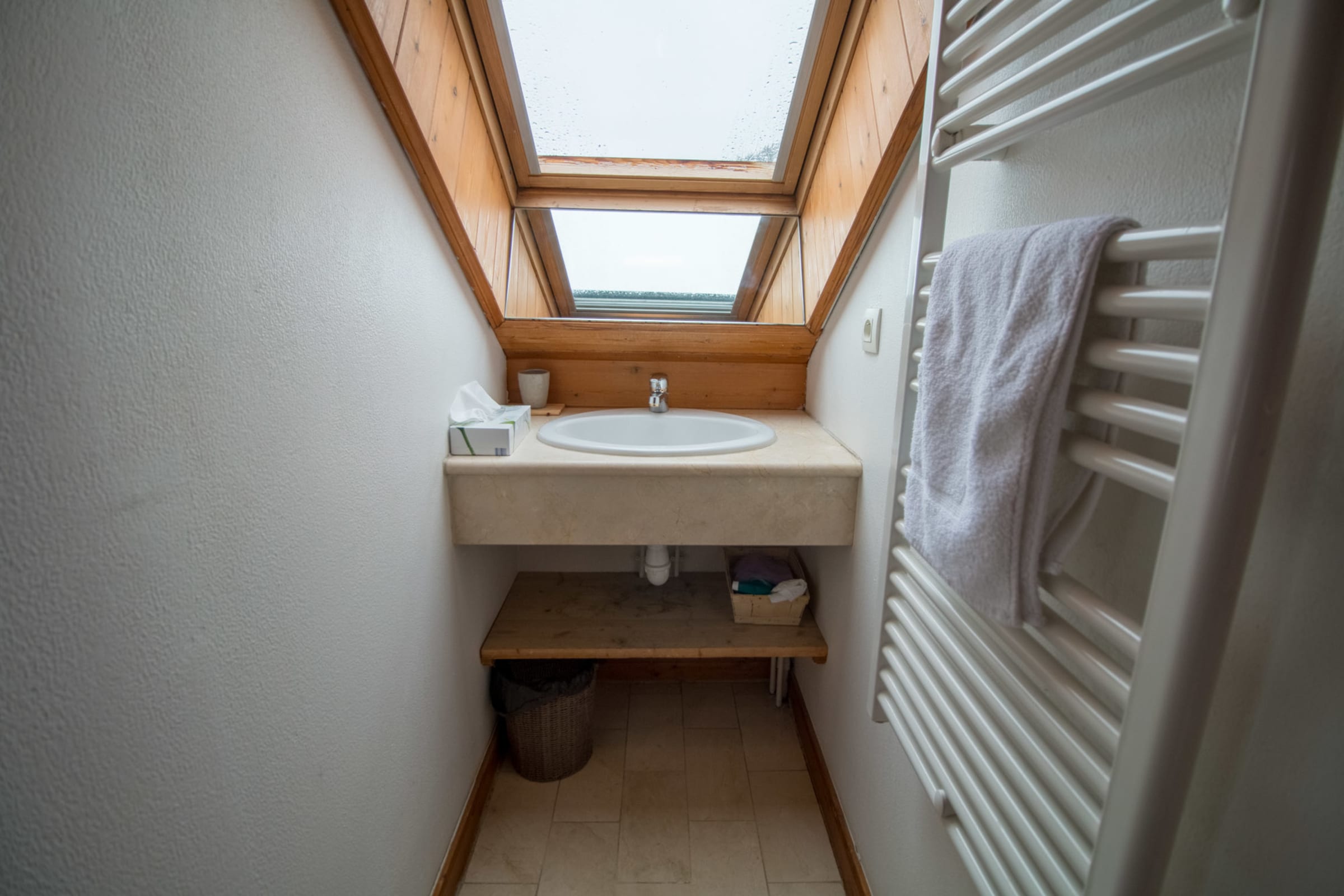 the chalet has 7 rooms to offer,each room has it's private bathroom and toilets ( except the two rooms on top thats shares one), the room is on the 1st floor, it's the biggest but has no view. On the second floor there are four rooms, Two with a nice mountain view(one with small balcony), two without view but with a bath instead of shower.