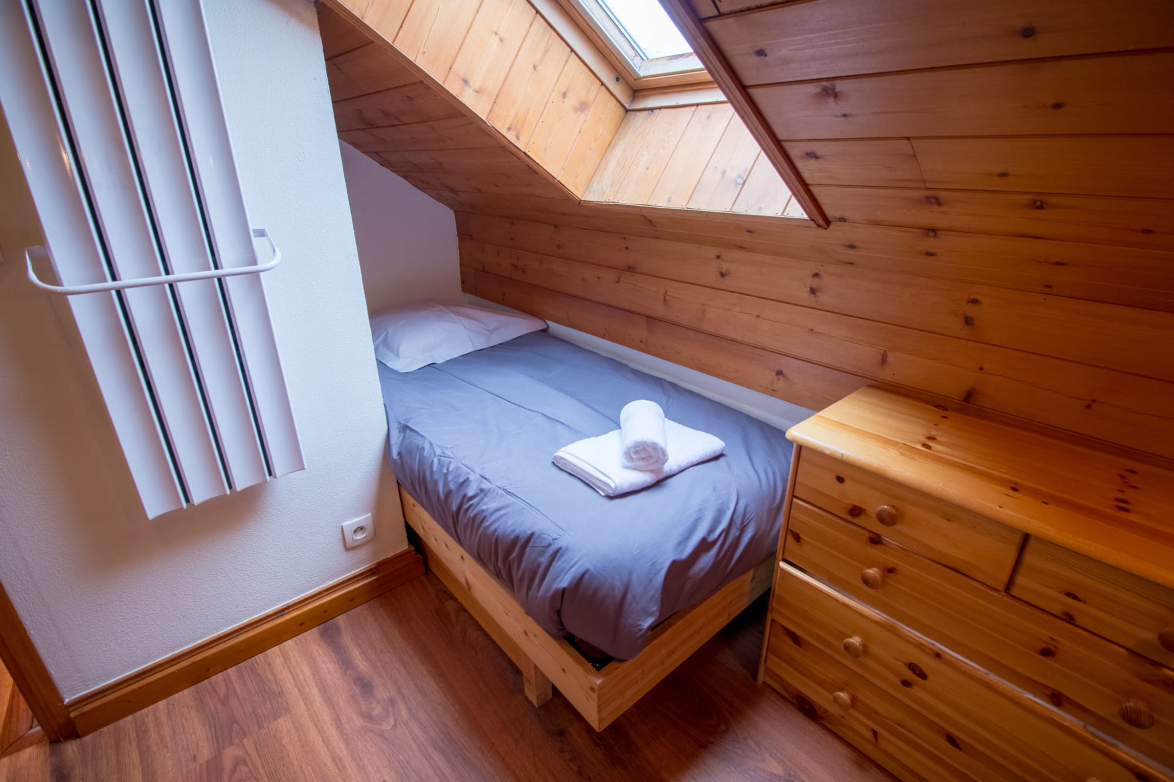 The two last room are on the last floor. They are the smalest. Be aware this room is not confortable for people taller than 1,80. Those two rooms are perfect for children/teenagers or people who aren't tall