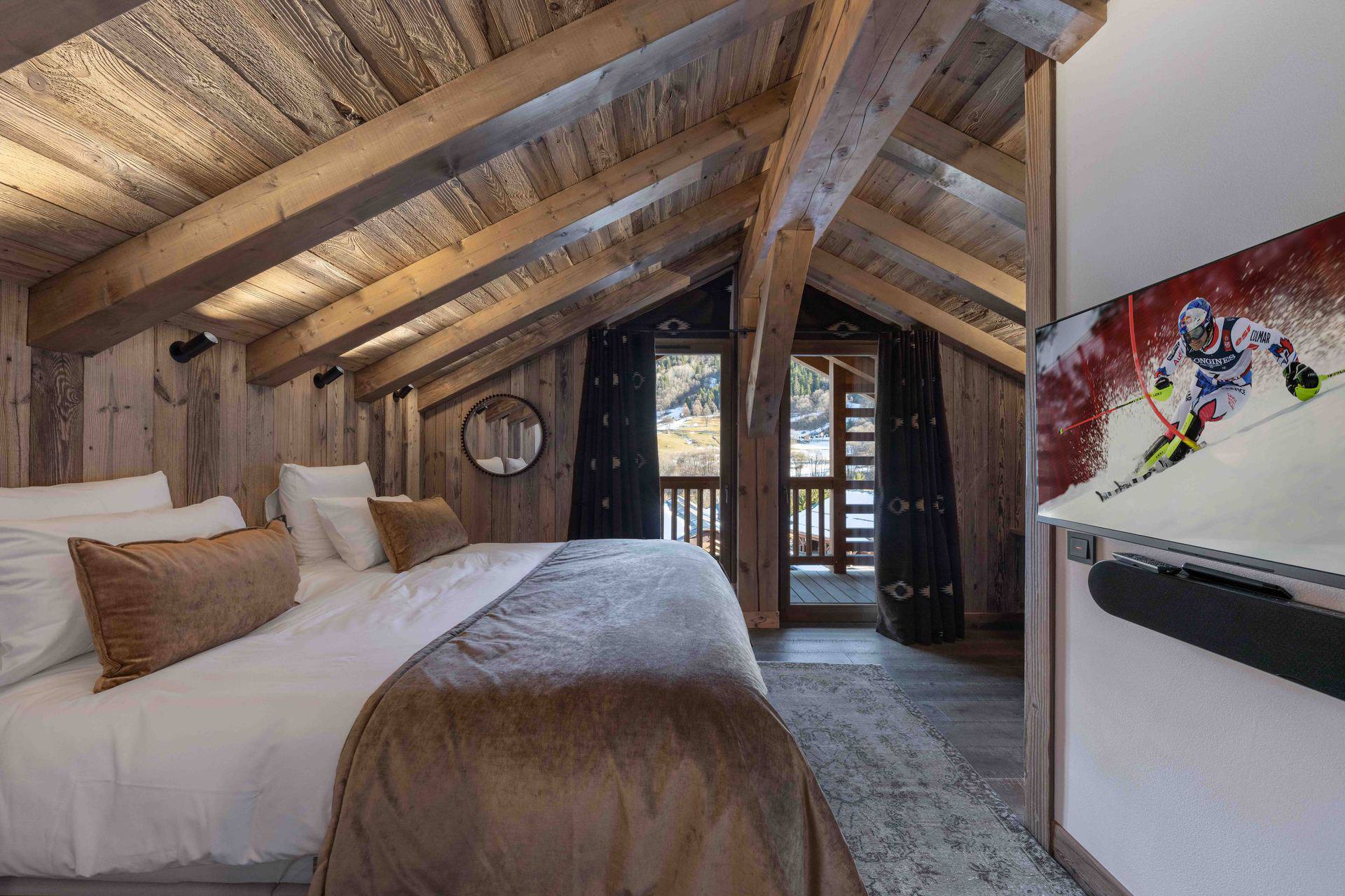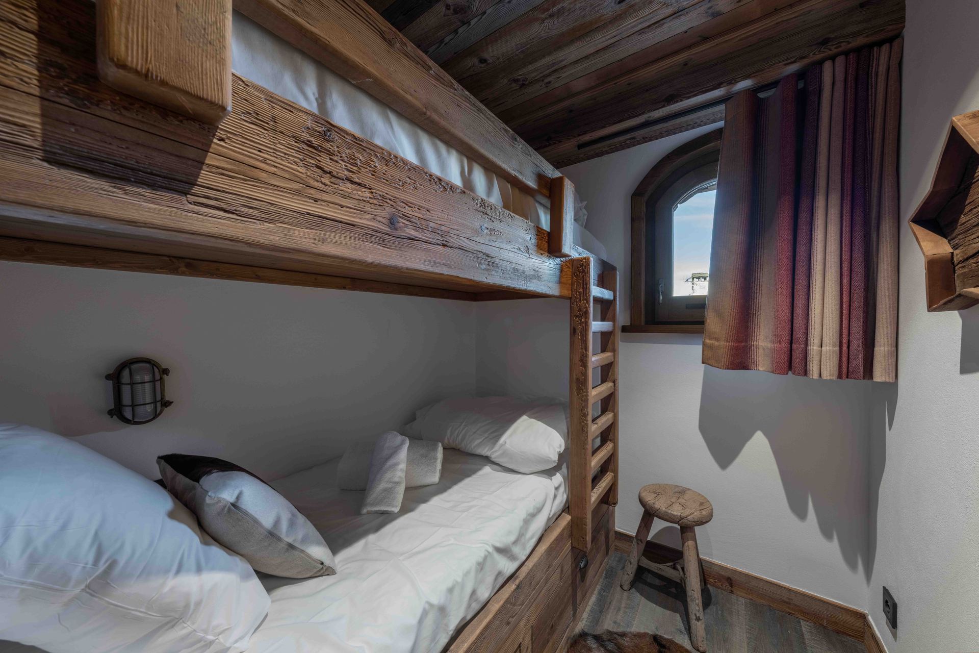 Chalet EDEL of about 157m², with 5 bedrooms for 10 persons. It is located in the hamlet of Raffort, 145 meters from the free bus stop that leads to Meribel center. There is also the Olympe gondola nearby which leads directly to the snow front of Méribel.