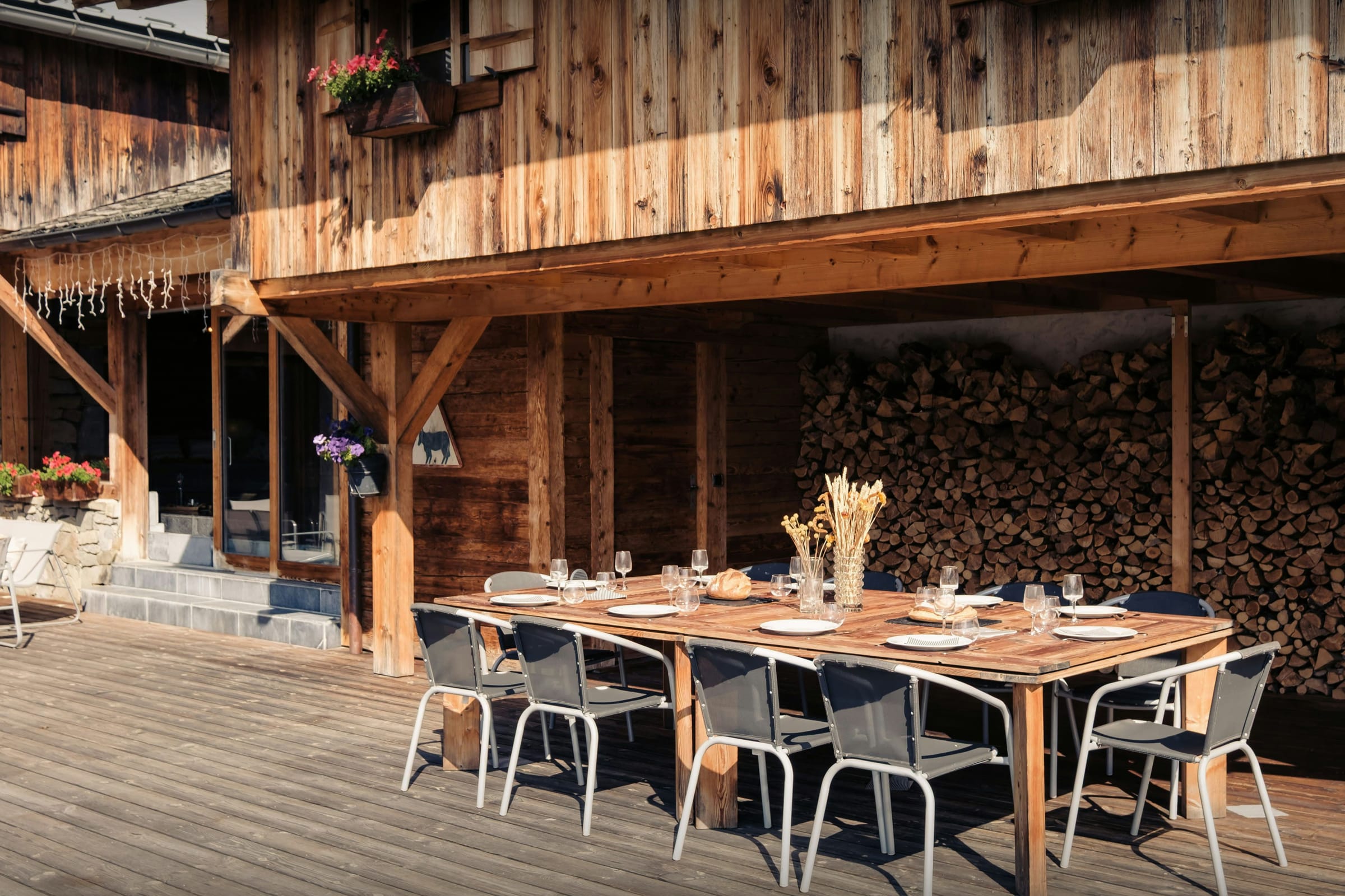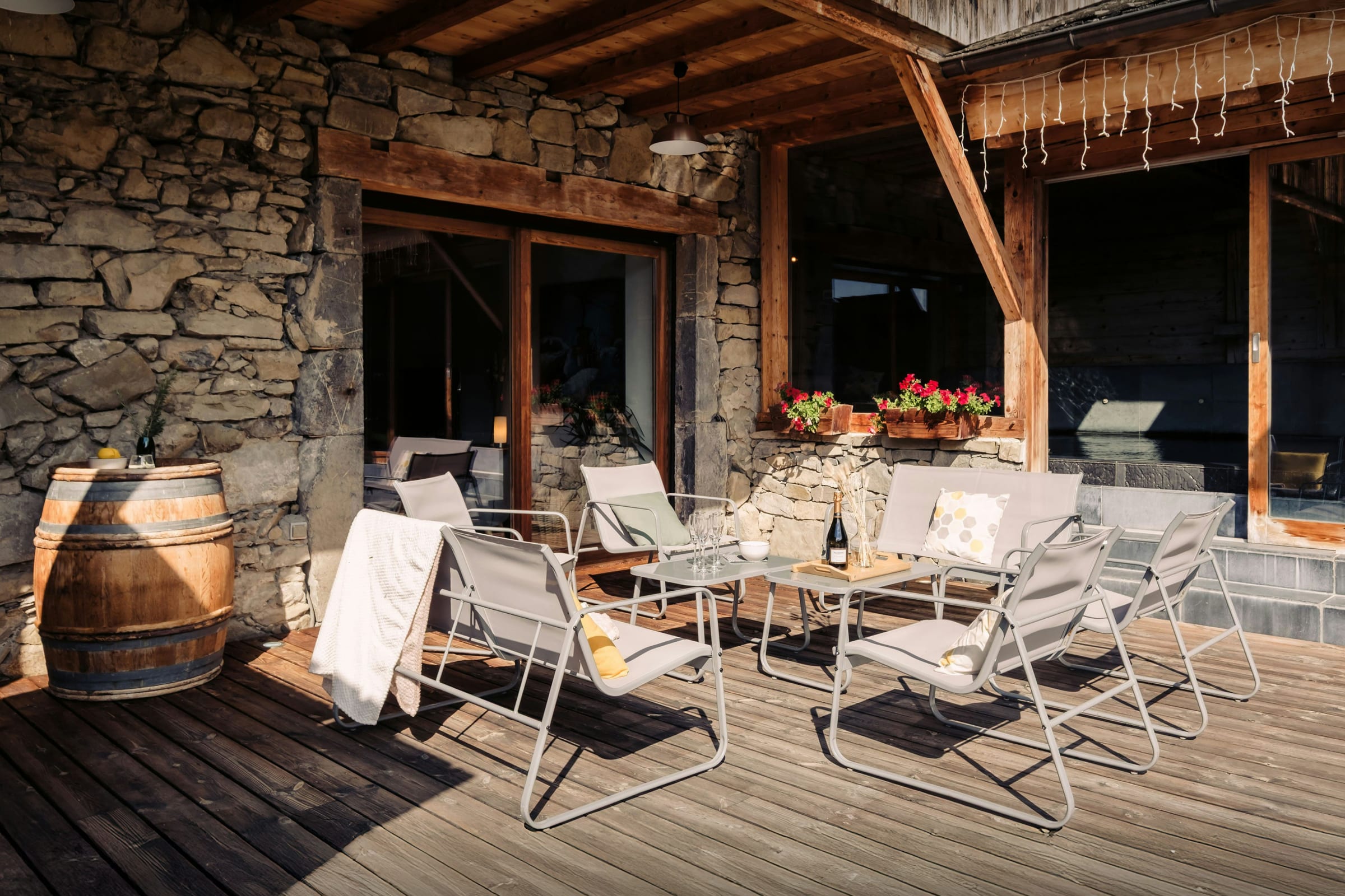 The outside space is a real feature of this property, with a large sunny terrace perfect for catching some sun and a covered dining area seating 12, which can be used all year round – the perfect place for enjoying dinner while the sun sets behind the mountains.