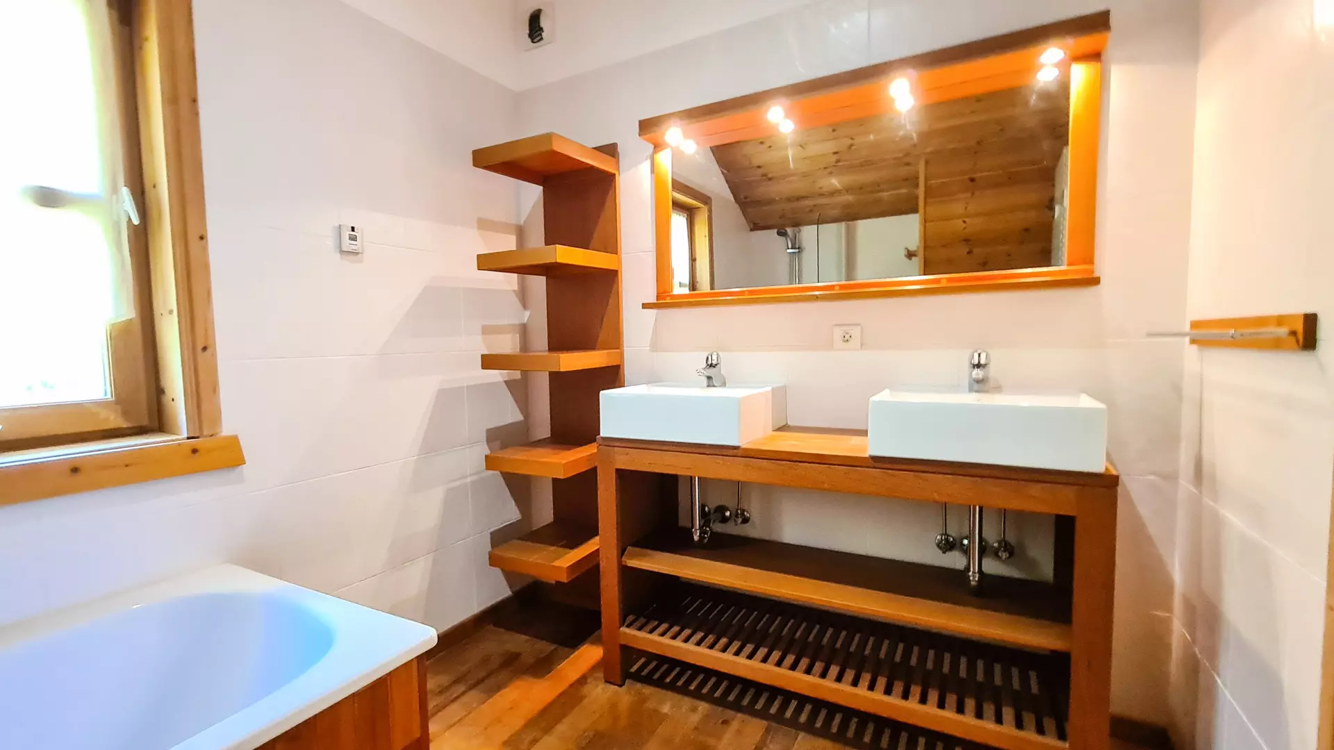 - 2 bathrooms with bathtub and 2 sinks, 4 shower rooms.