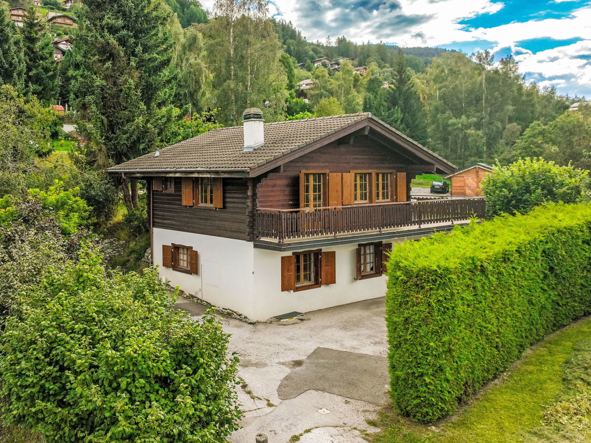 Tsamandon: Chalet "La Couronne". 1 km from the centre, in a quiet position, in a cul-de-sac. Private: with lawn. Steep motor access to the house (mountain road). In Winter: please take snow chains, 4x4 car recommended in winter. Parking (for 2 cars). Supermarket 1 km, restaurant 100 m, bus stop "Haute-Nendaz, station/poste" 1.5 km, railway station "Sion" 17.2 km, outdoor swimming pool 700 m. Golf course (18 hole) 18 km, tennis 600 m, gondola lift 1.5 km, ski bus stop 200 m, ice rink 1 km, children's playground 600 m. Well-known ski regions can easily be reached: Les 4 Vallées 1.5 km. Hiking paths: Les Bisses 1.4 km.