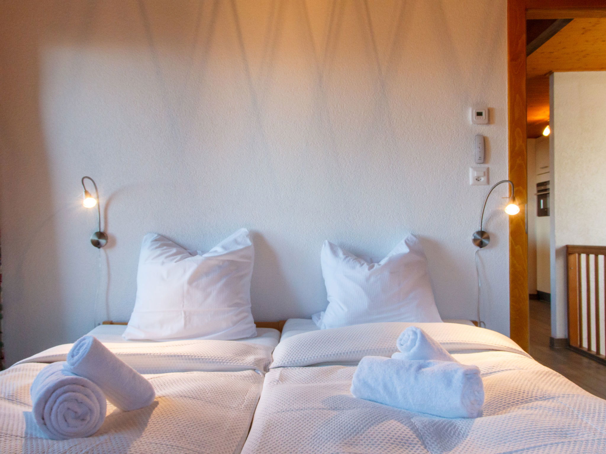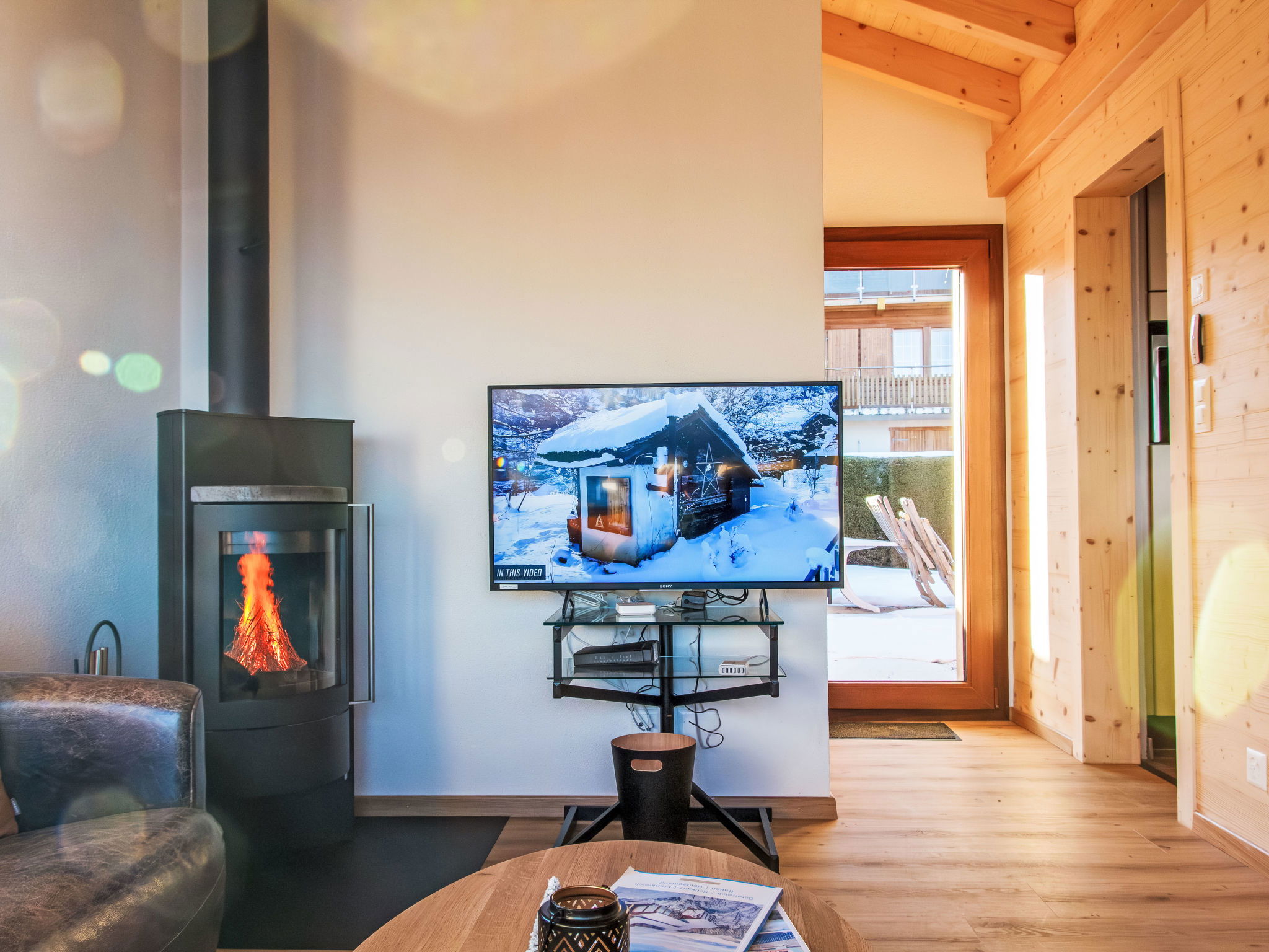 "Beke", 4-room chalet 110 m2 on 2 levels. Renovated in 2024, comfortable and beautiful furnishings: entrance hall. Living room with Scandinavian wood stove and cable TV. Exit to the balcony, east facing position. Dining room. Exit to the balcony, east facing position. 1 room with 2 beds (90 cm, length 190 cm), separate WC and shower. Exit to the balcony. Open kitchen (oven, dishwasher, 4 ceramic glass hob hotplates, toaster, kettle, electric coffee machine, Capsules for coffee machine (Nespresso) extra, raclette grill, fondue Set (chinoise, cheese)). Heating. Solar power. On the lower ground floor: 1 room with 1 double bed (2 x 80 cm, length 200 cm). Exit to the patio. Office. 1 room with 2 beds (90 cm, length 200 cm). Bath/WC, shower. Balcony, east facing position, terrace, west facing position, large garden, west facing position. Terrace furniture, barbecue (portable). Beautiful view of the mountains and the valley. Facilities: washing machine, hair dryer. Internet (WiFi, free). Parking, garage, height 190 cm, width 220 cm. Please note: non-smokers only. Maximum 1 pet/ dog allowed.