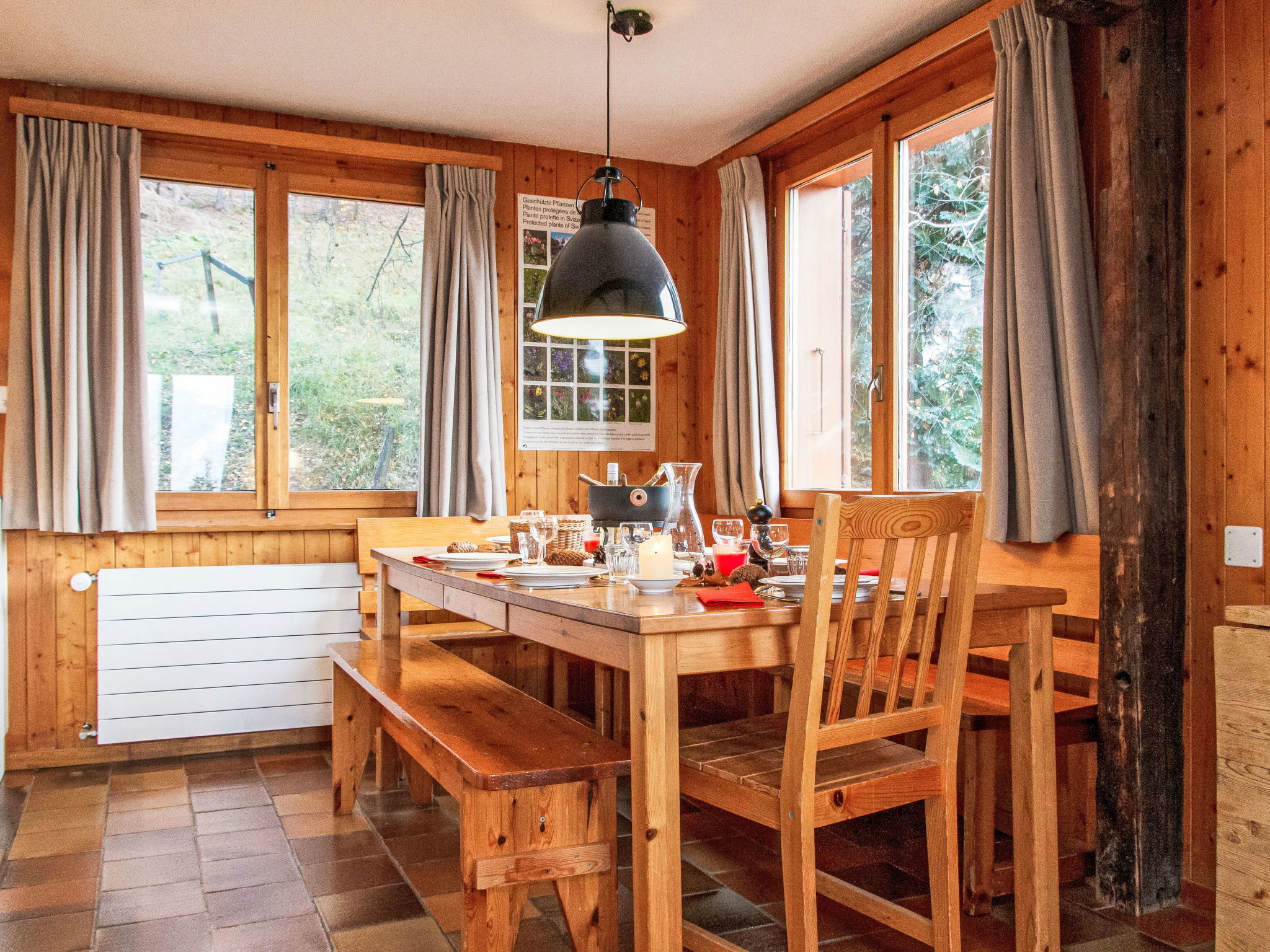 "Les Etoiles", 5-room chalet 170 m2 on 3 levels. Living/dining room with open-hearth fireplace and cable TV. Exit to the terrace. Open kitchen (oven, dishwasher, 4 induction hot plates, toaster, kettle, microwave, electric coffee machine, Capsules for coffee machine (NESPRESSO) extra, raclette grill, fondue Set (cheese)). Sep. WC. Heating. On the lower ground floor: shower/WC. Upper floor: 1 small room with sloping ceilings with 2 beds (90 cm, length 200 cm), hand-basin. 1 small room with sloping ceilings with 2 beds (90 cm, length 200 cm), hand-basin. 2 rooms, each room with 1 double bed (2 x 90 cm, length 200 cm). Exit to the balcony, north facing position. Bathroom, shower/WC. Balcony, north facing position, terrace, west facing position. Barbecue, box-room. View of the valley. Facilities: washing machine, children's high chair, baby cot. Internet (WiFi, free). Parking space n 9 Prachalier (roofed) at 500 m, height 210 cm, width 220 cm. Please note: non-smokers only. Maximum 1 pet/ dog allowed.