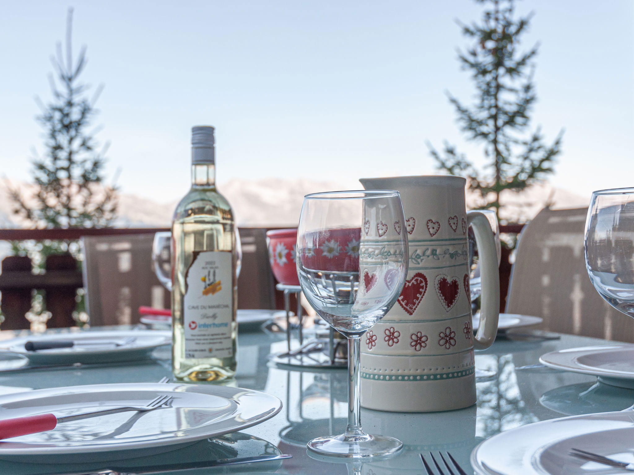 "Agneau", 5-room chalet 200 m2 on 3 levels. Living/dining room with Scandinavian wood stove. Exit to the terrace. Open kitchen (oven, dishwasher, toaster, kettle, microwave, freezer, electric coffee machine, Capsules for coffee machine (Nespresso) extra, raclette grill, fondue Set (cheese)) with bar. Shower/WC. Heating. On the lower ground floor: 1 room with 1 french bed (140 cm, length 190 cm). 1 room with 2 beds (90 cm, length 200 cm). 1 room with 3 beds (90 cm, length 200 cm), shower/WC. Bath/shower/WC. Upper floor: gallery with cable TV and DVD. 1 large room with 1 french bed (160 cm, length 190 cm), bath/WC. 2 balconies, north facing position terrace 50 m2, west facing position. Terrace furniture, barbecue (portable). Panoramic view of the mountains. Facilities: washing machine, dryer, children's high chair, baby cot, hair dryer. Internet (WiFi, free). Garage (2 cars) at 50 m, height 230 cm, width 240 cm. Please note: non-smokers only. Maximum 1 pet/ dog allowed.
