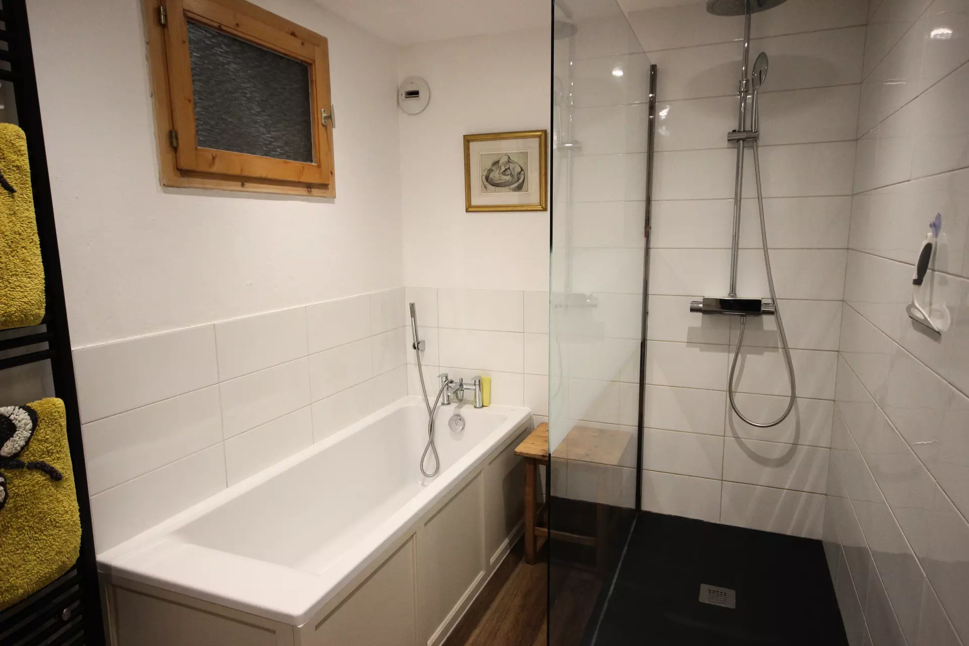 At your disposal a bathroom with bathtub, shower and toilet. A shower with toilet.