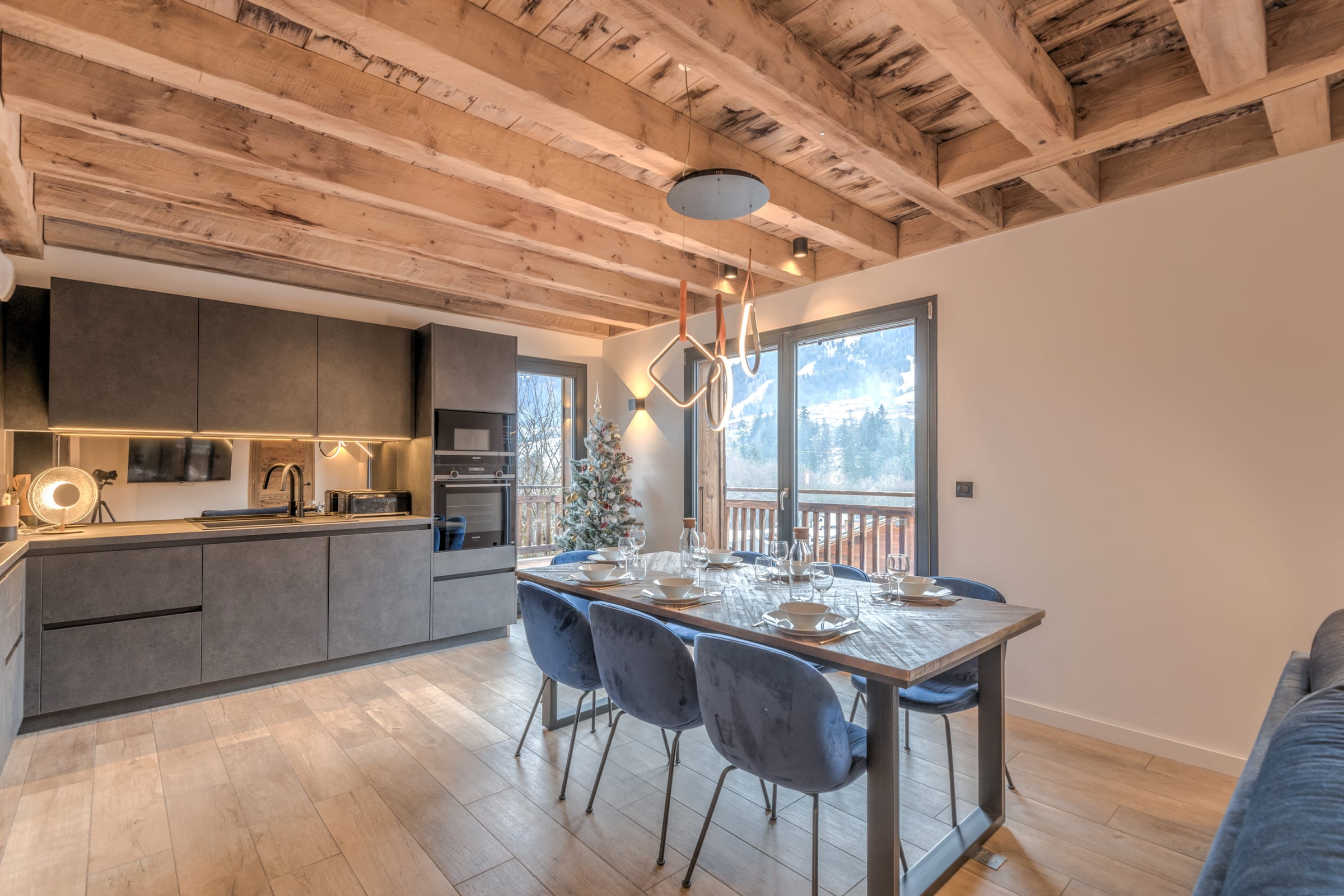 Discover this new half-chalet in aged wood, located in a quiet area on the heights of Praz-sur-Arly, right next to the ski slopes and hiking trails.