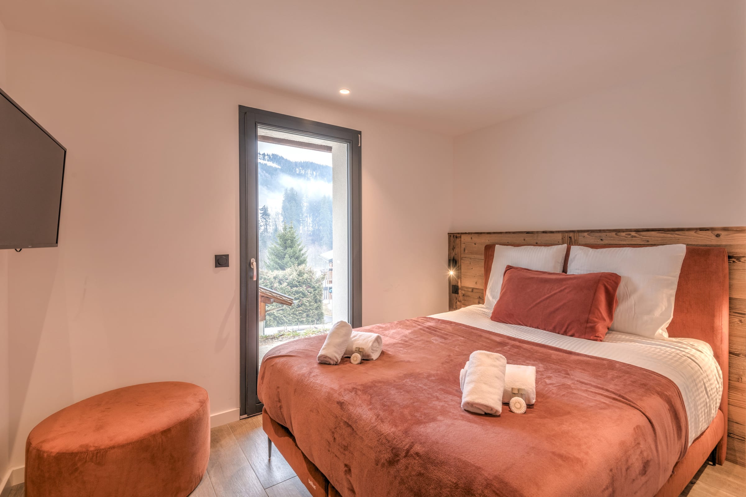 - a master bedroom with king-size bed (180 cm) and en-suite bathroom, with access to the terrace,