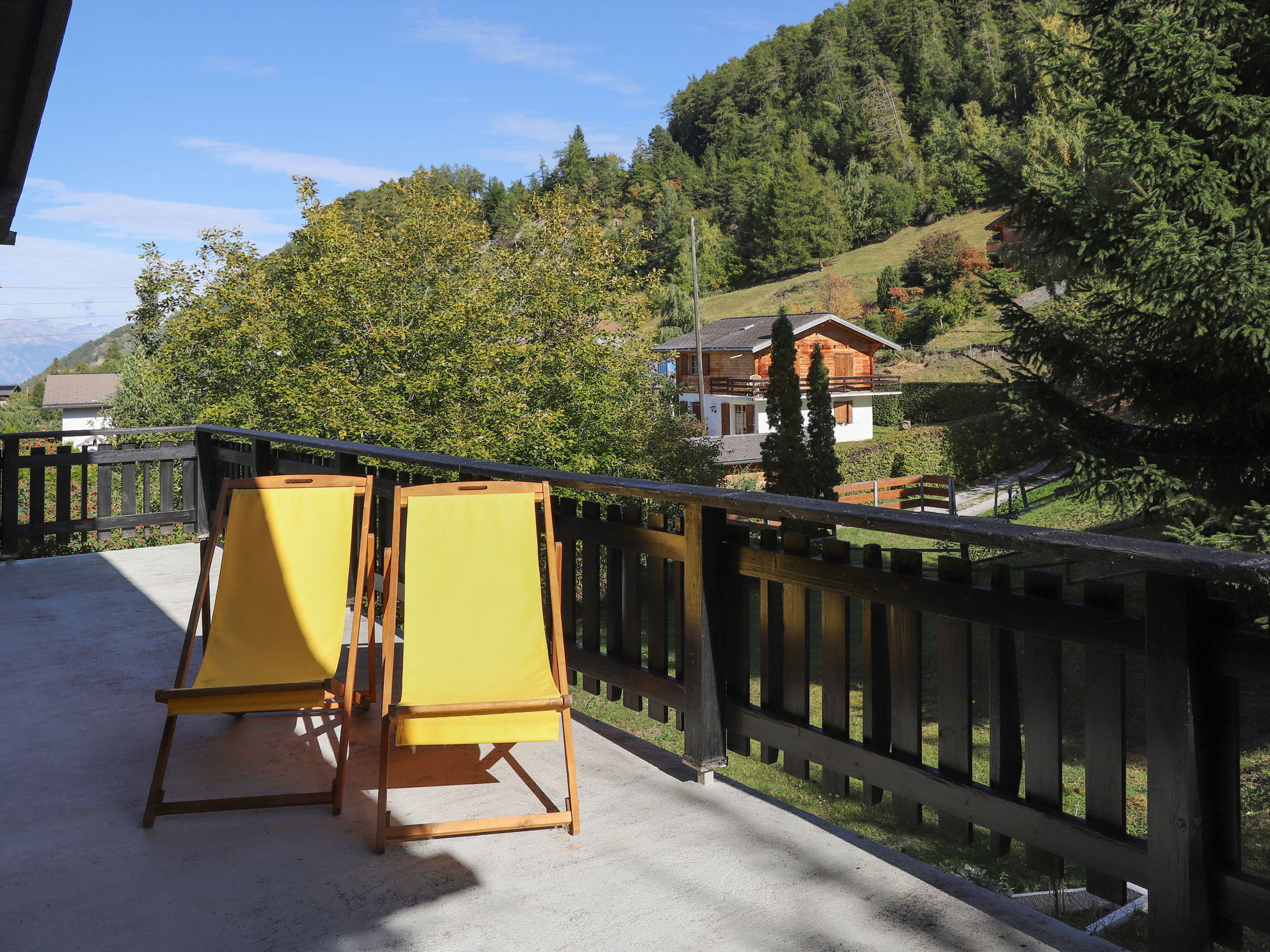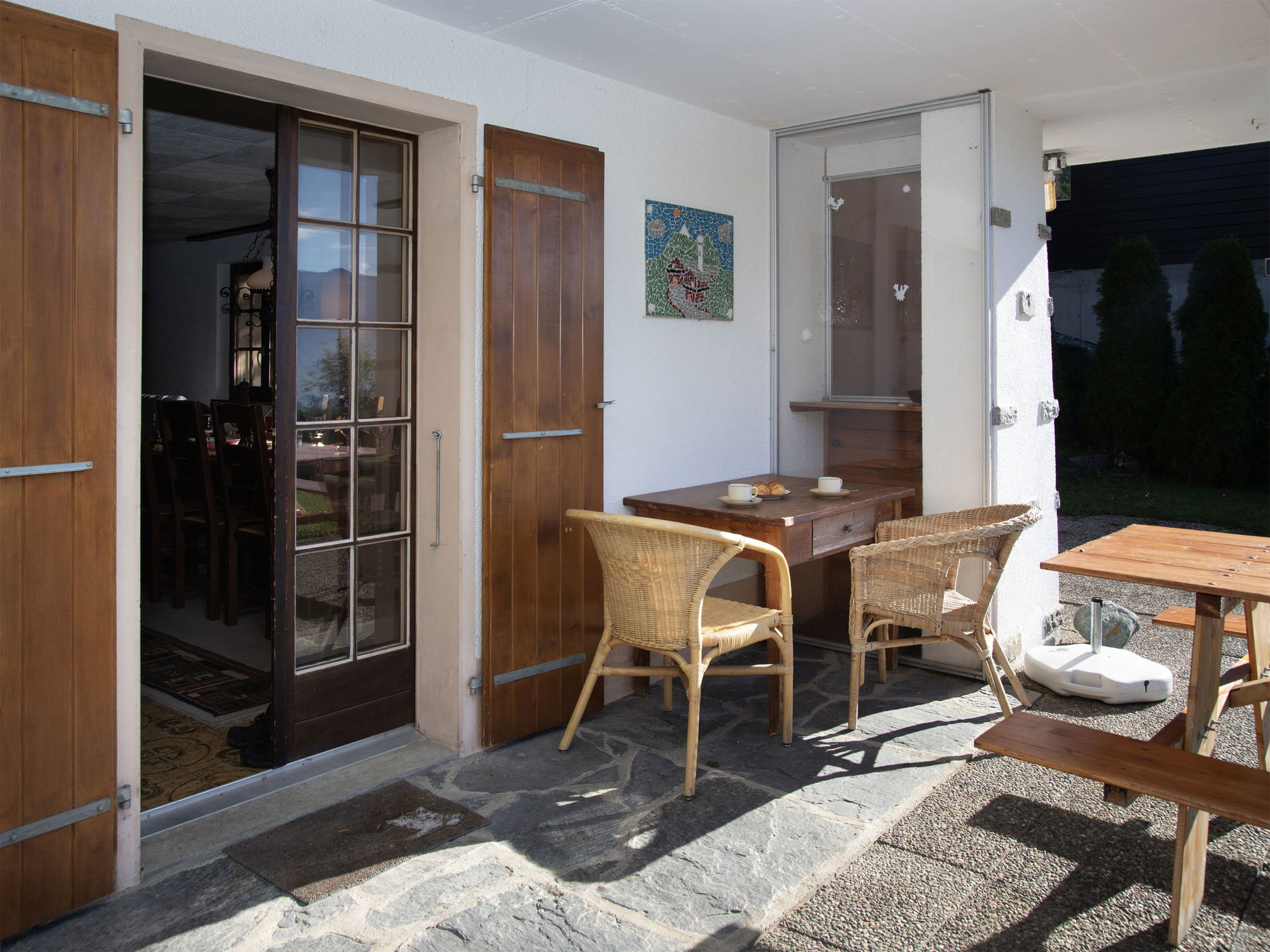 "Chalet Chante Neige", 4-room chalet 90 m2 on 2 levels. Spacious and bright, comfortable and tasteful furnishings: living/dining room with open-hearth fireplace. Exit to the terrace. Kitchen (4 hot plates, oven, dishwasher, kettle, microwave, freezer, electric coffee machine, Capsules for coffee machine (Nespresso), raclette grill, fondue Set (cheese)). Shower/WC. Upper floor: 2 rooms, each room with 1 double bed (160 cm, length 200 cm). Exit to the terrace. 1 room with 1 x 2 bunk beds (90 cm, length 200 cm), 1 french bed (140 cm, length 200 cm). Exit to the balcony. Bath/WC. Balcony, large terrace, large garden. Terrace furniture, barbecue, deck chairs (2). Marvellous panoramic view of the mountains, the valley and the countryside. Facilities: washing machine, dryer. Internet (WiFi, free). Parking, garage at the house, height 195 cm. Please note: non-smokers only. Maximum 1 pet/ dog allowed. Fire extinguisher.