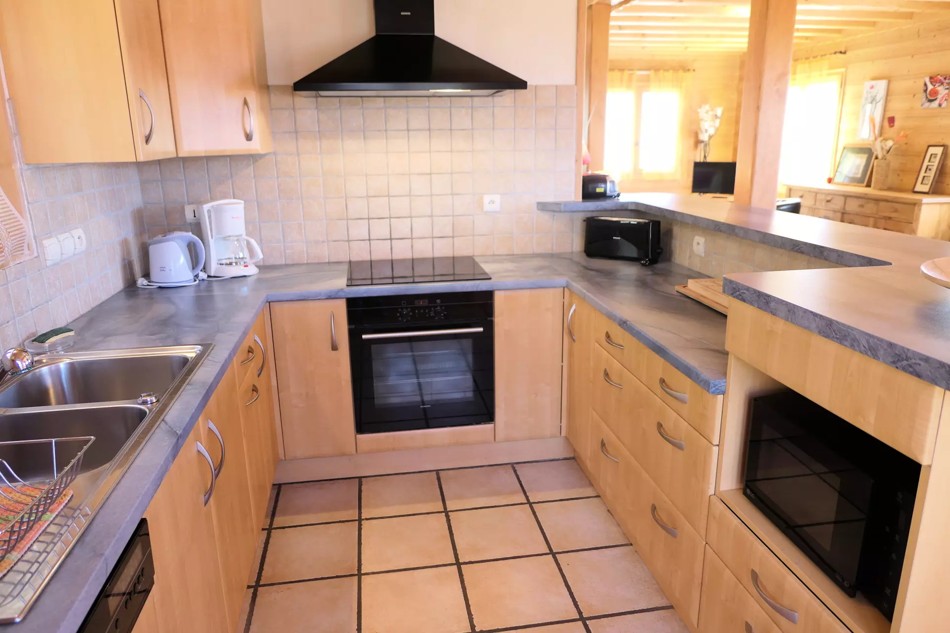 - Kitchen equipped with 4 ceramic hobs, fridge/freezer, microwave, dishwasher.