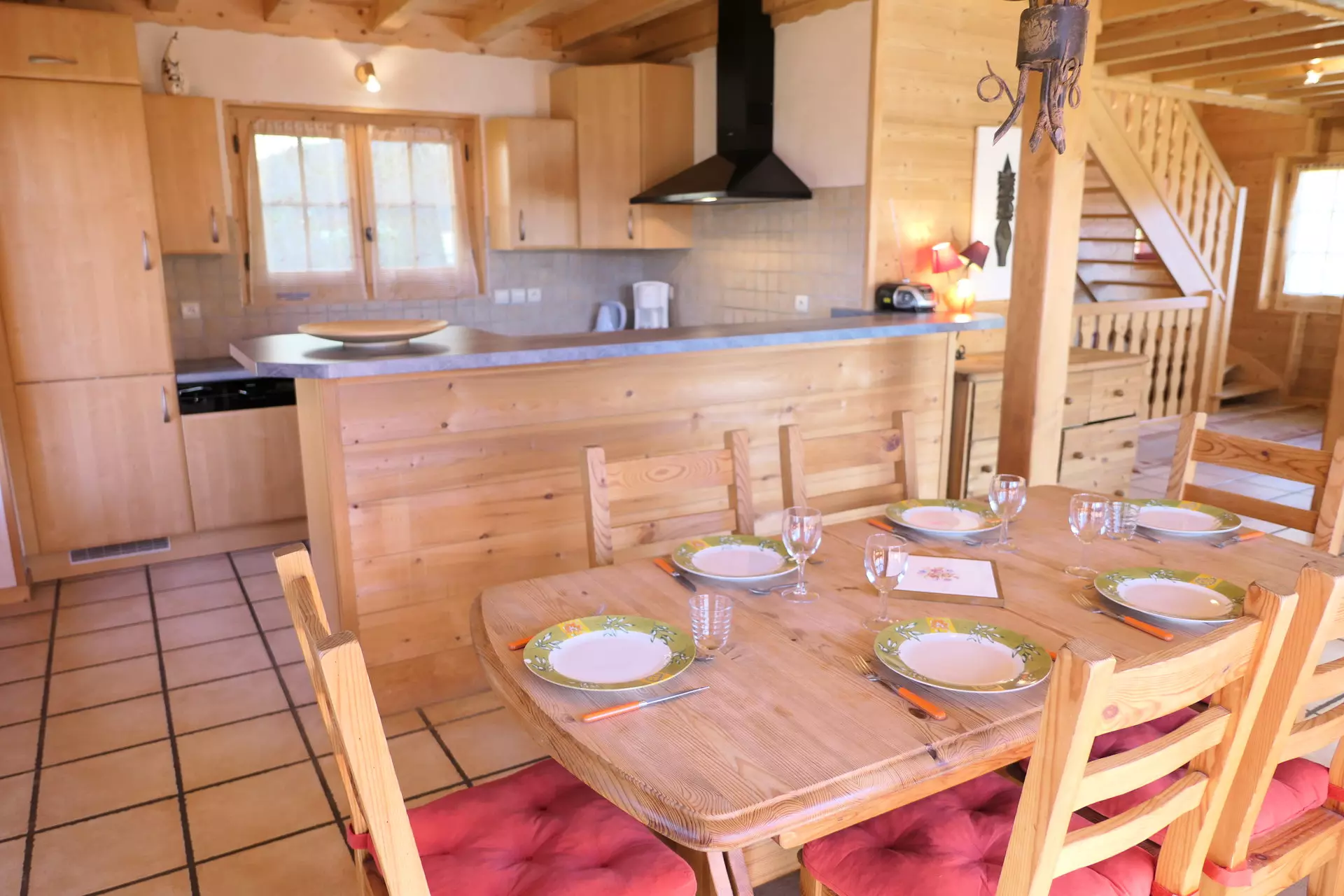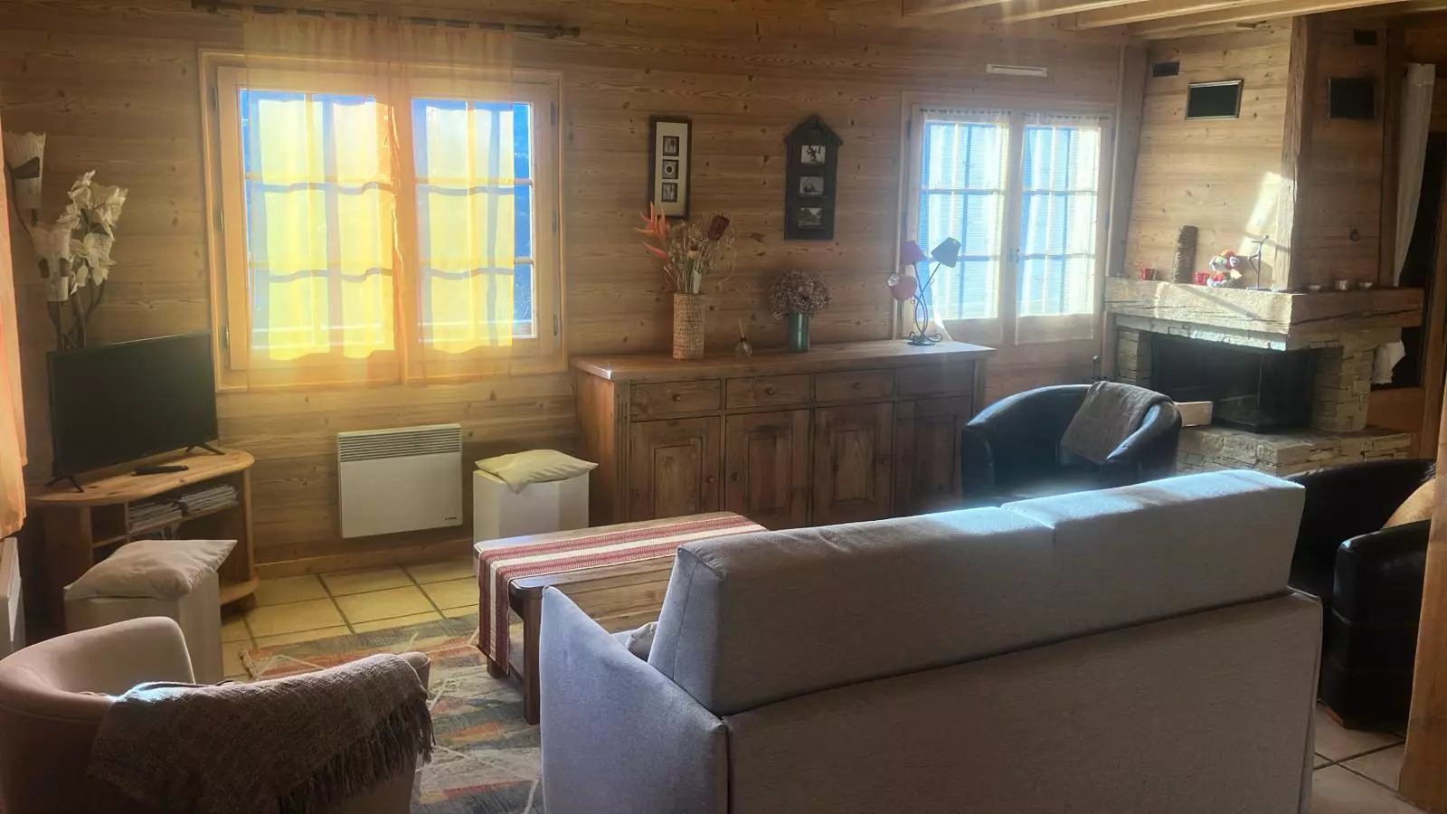 This 140 m² chalet, spread over two levels, can accommodate up to 6 people. It offers views of the Aravis mountain range, the valley, and Mont-Joly.