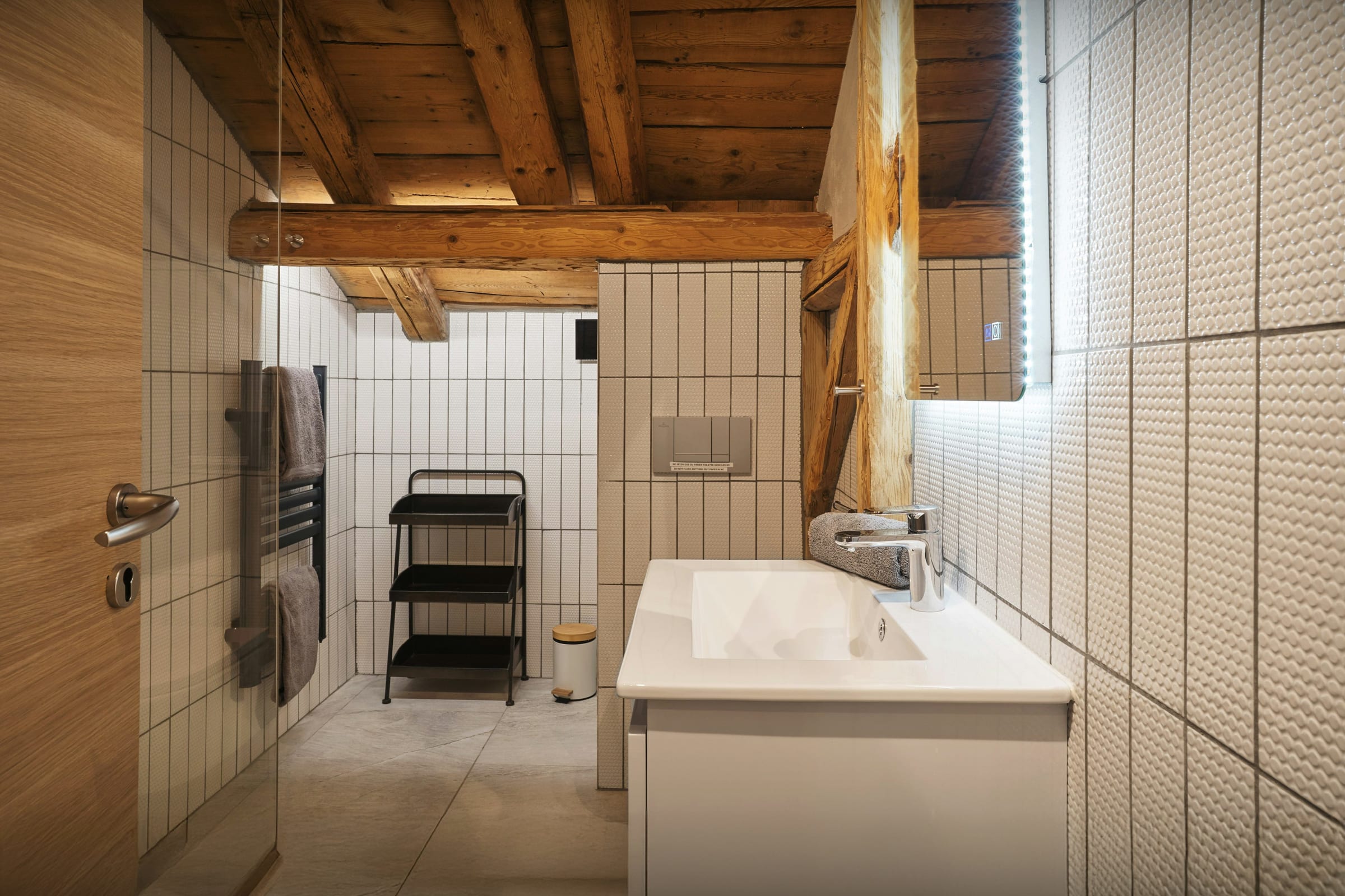 At the entrance, the ski room with a heated boot dryer will be particularly useful in winter. There's also a laundry room with a washing machine and tumble dryer.