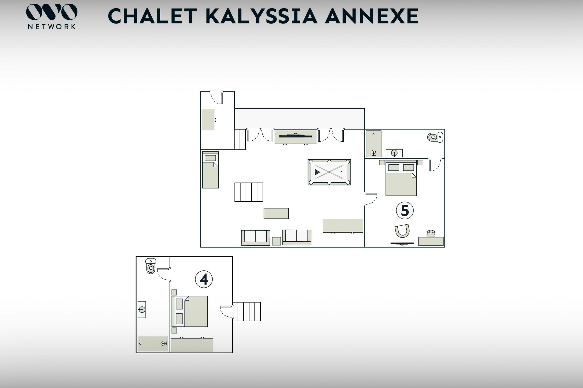 Chalet Kalyssia in an OVO Network property. A very unique property - sleeping 11 (10 adults and a child), the accommodation is split over two buildings.