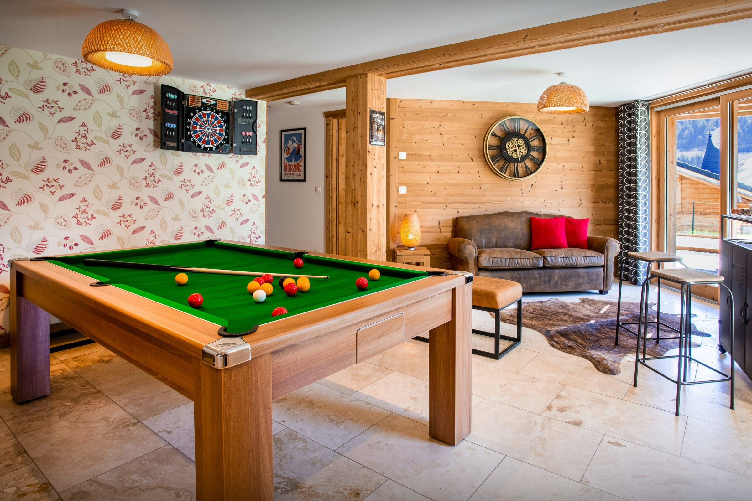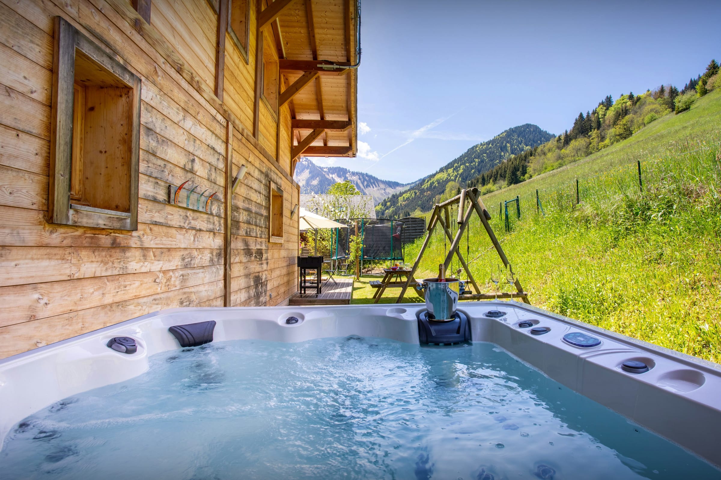 When you return to Chalet Levant Blanc after a day in the mountains, you can just switch off and relax. The children have their own spaces - a games room with toys for younger kids on the main floor, where you can keep an eye on them, and older children will love the room on the ground floor, which has a pool table, darts and a TV. There's also a trampoline in the garden. While they are playing, you can unwind in the hot tub or watch the sunset from the terrace.