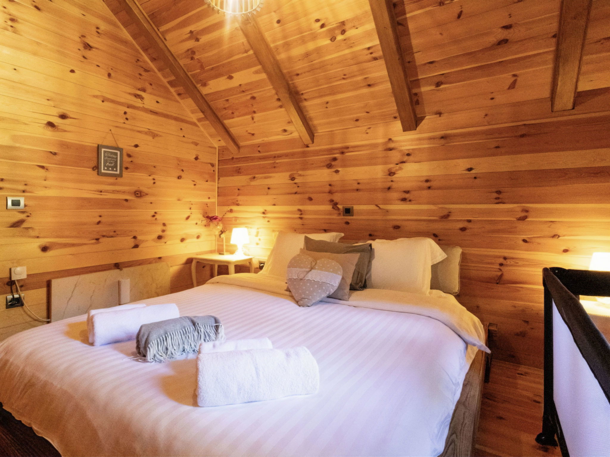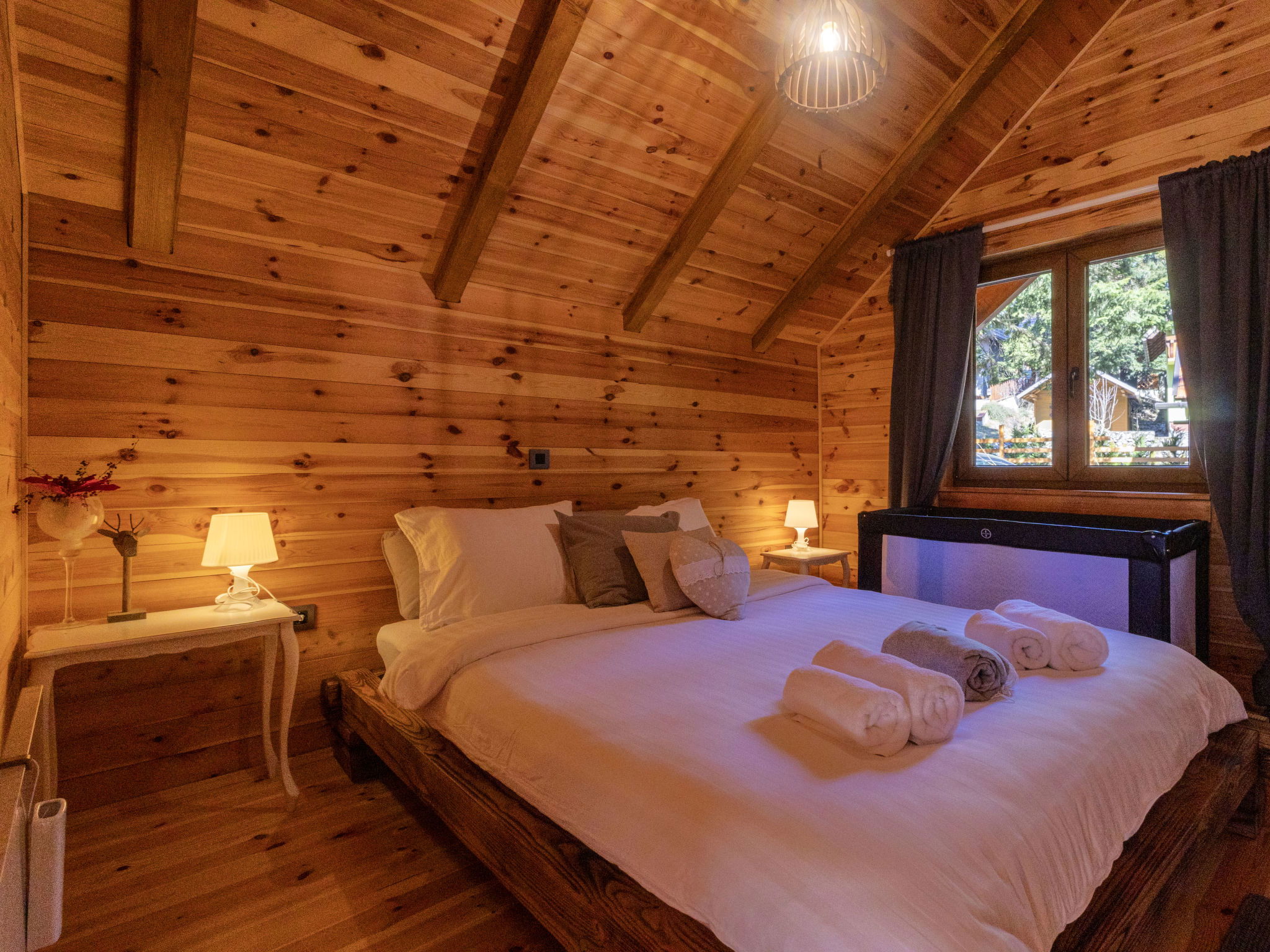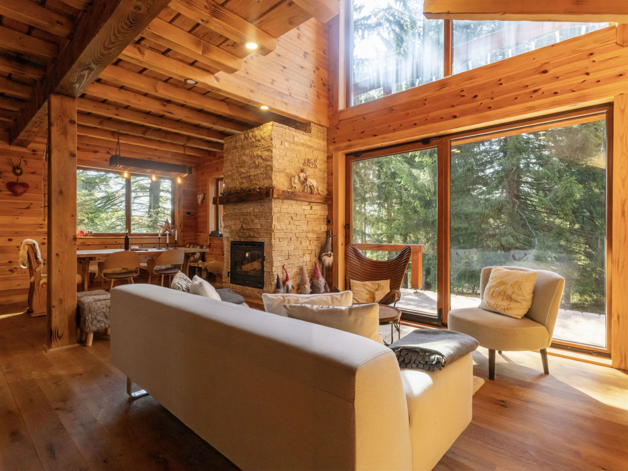 4-room chalet 110 m2 on 2 levels. Living/dining room with open-hearth fireplace, satellite TV and air conditioning. Exit to the terrace. 1 room with 1 french bed (140 cm, length 200 cm), satellite TV. Open kitchen (oven, dishwasher, 4 induction hot plates, kettle, freezer, electric coffee machine). Sep. WC. Upper floor: 1 room with 1 french bed (160 cm, length 200 cm). Exit to the balcony. 1 room with 1 french bed (160 cm, length 200 cm). Shower/WC. Electric heating, wood heating, forced-air heating. Balcony 12 m2, terrace 27 m2. Balcony furniture, barbecue (portable). Facilities: sauna, iron, baby cot, hair dryer, logs (free). Internet (WiFi, free). Please note: 2 pets/ dogs allowed. Fire extinguisher.