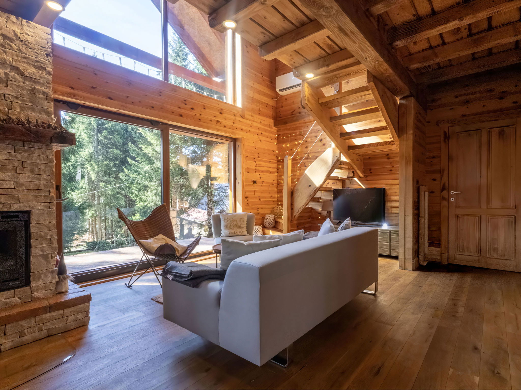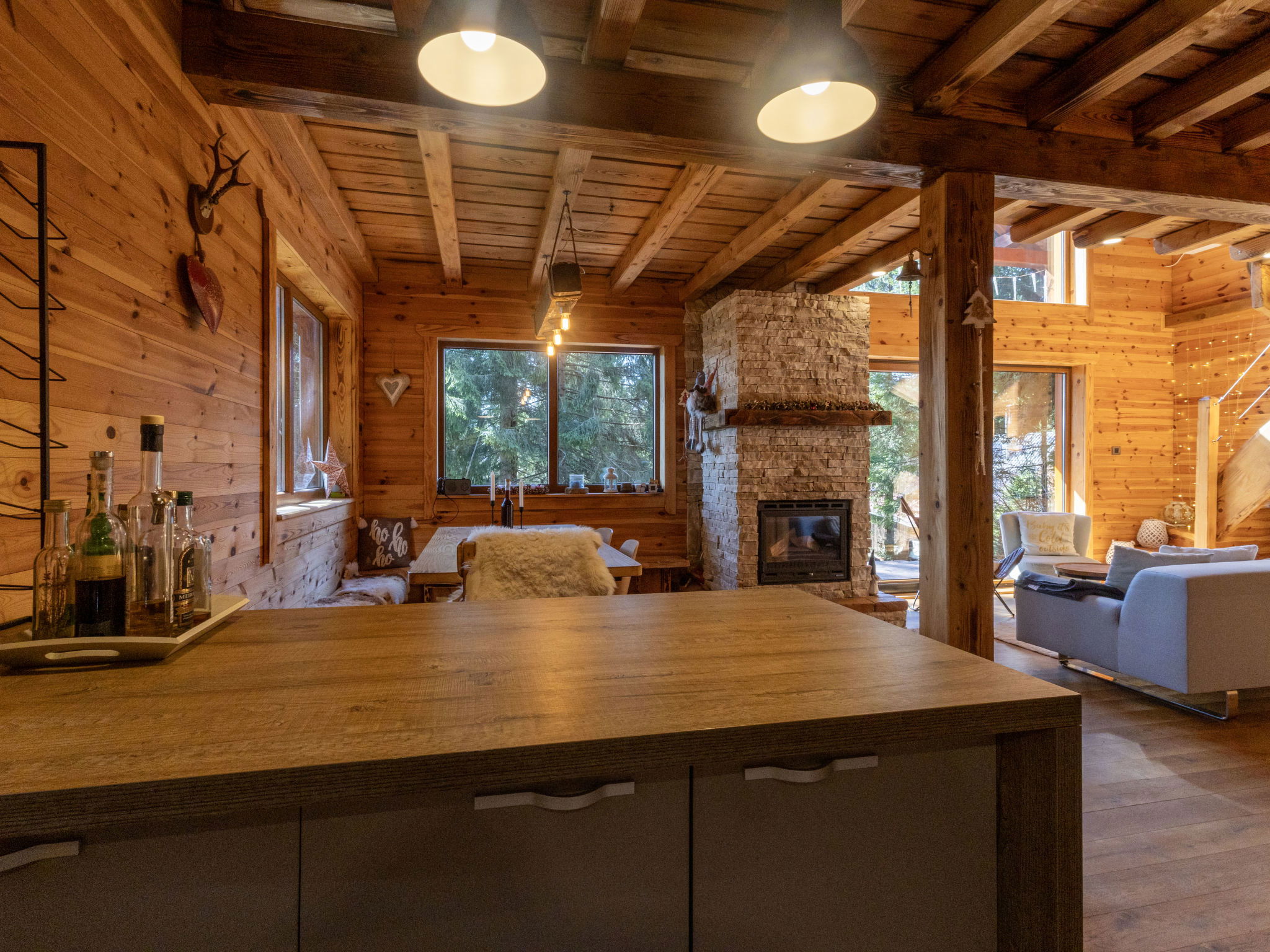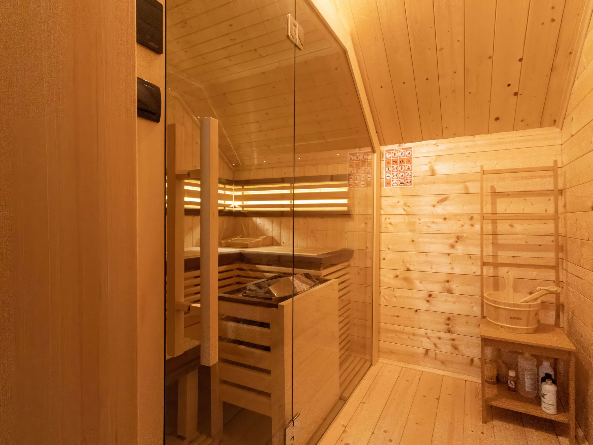 4-room chalet 110 m2 on 2 levels. Living/dining room with open-hearth fireplace, satellite TV and air conditioning. Exit to the terrace. 1 room with 1 french bed (140 cm, length 200 cm), satellite TV. Open kitchen (oven, dishwasher, 4 induction hot plates, kettle, freezer, electric coffee machine). Sep. WC. Upper floor: 1 room with 1 french bed (160 cm, length 200 cm). Exit to the balcony. 1 room with 1 french bed (160 cm, length 200 cm). Shower/WC. Electric heating, wood heating, forced-air heating. Balcony 12 m2, terrace 27 m2. Balcony furniture, barbecue (portable). Facilities: sauna, iron, baby cot, hair dryer, logs (free). Internet (WiFi, free). Please note: 2 pets/ dogs allowed. Fire extinguisher.