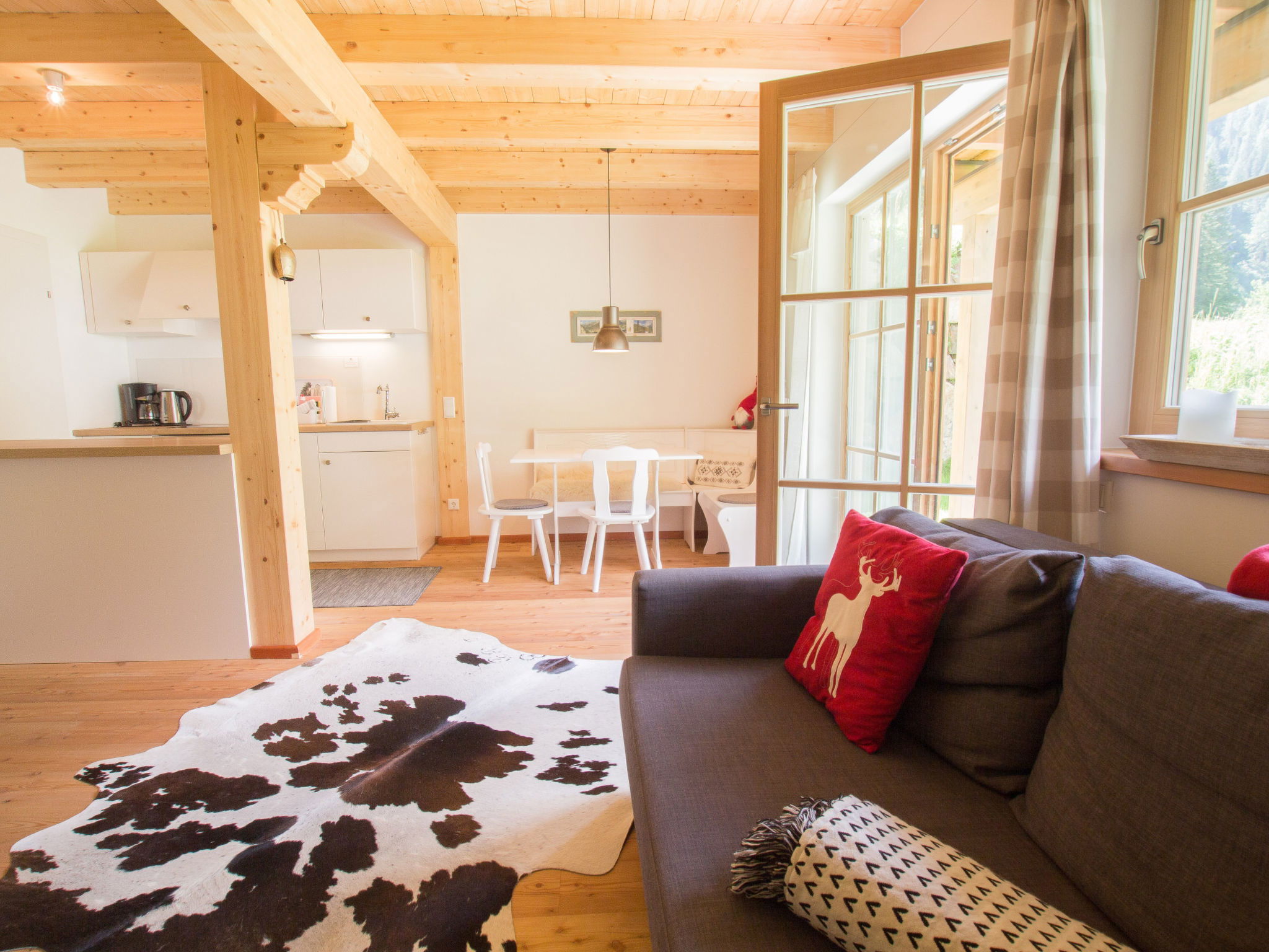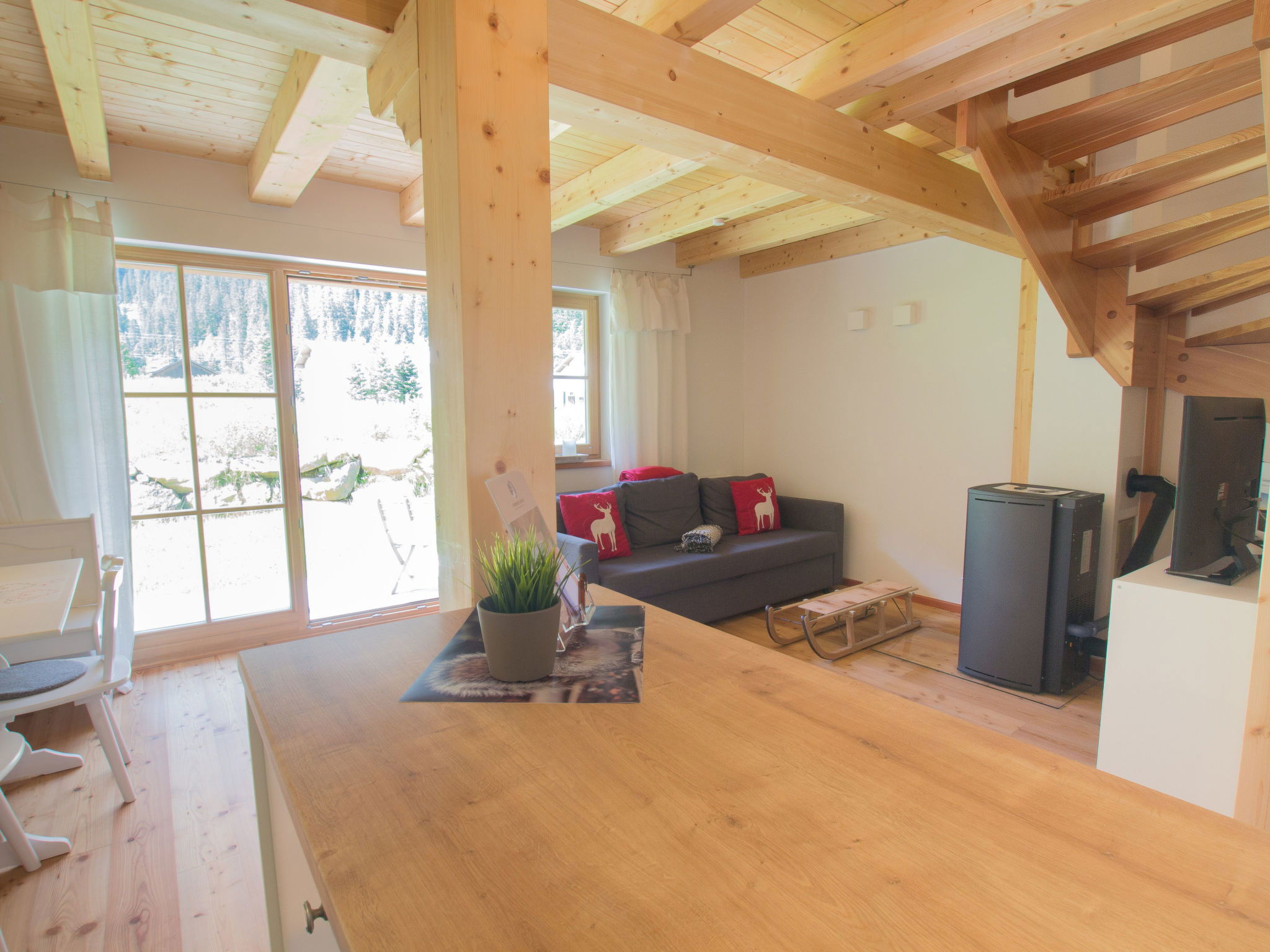 "Lodge Enzian 194 im Tauerndorf Enzingerboden", 3-room chalet 66 m2. Object suitable for 6 adults. Living room with 1 sofabed, 1 pull-out bed, open-hearth fireplace and TV. 1 room with 1 double bed and TV. 1 room with 1 double bed. Open kitchen (4 hot plates, oven, dishwasher, toaster, kettle, microwave, electric coffee machine). 2 showers/WC, 2 sep. WC's. Balcony, terrace 20 m2. Barbecue. View of the lake and the mountains. Facilities: washing machine, hair dryer. Internet (WiFi, free). Please note: non-smokers only. Maximum 1 pet/ dog allowed. 50624-000672-2024