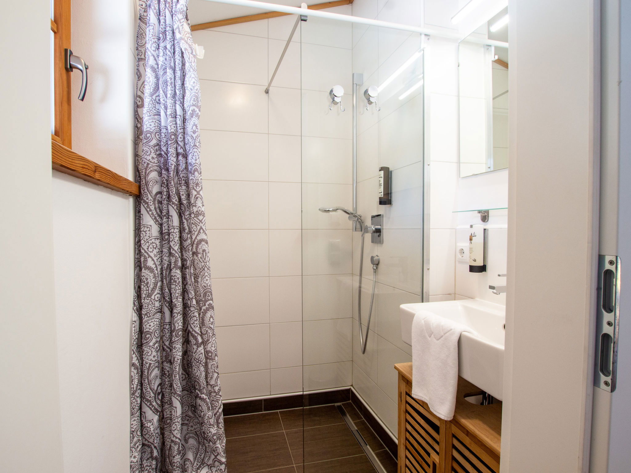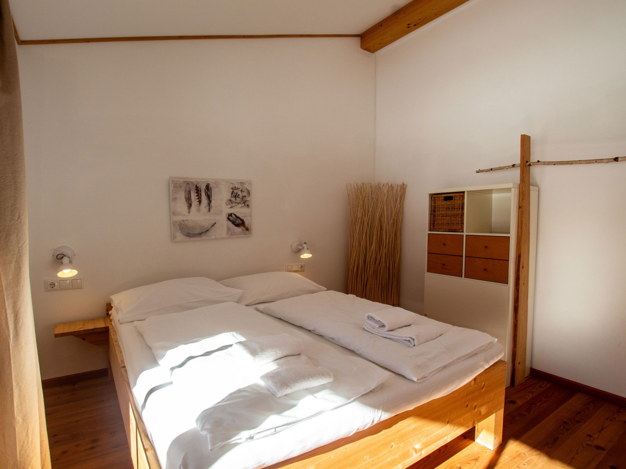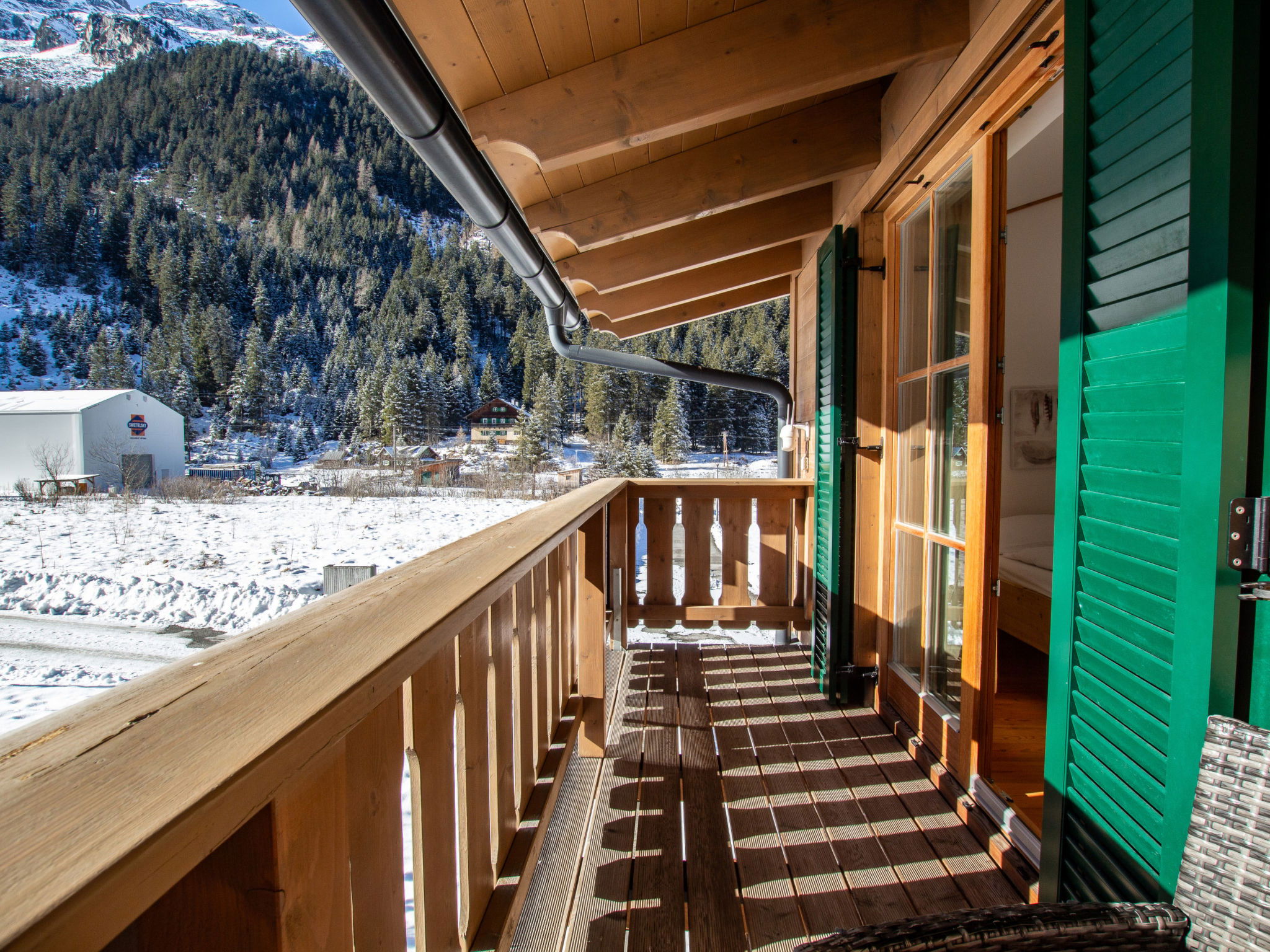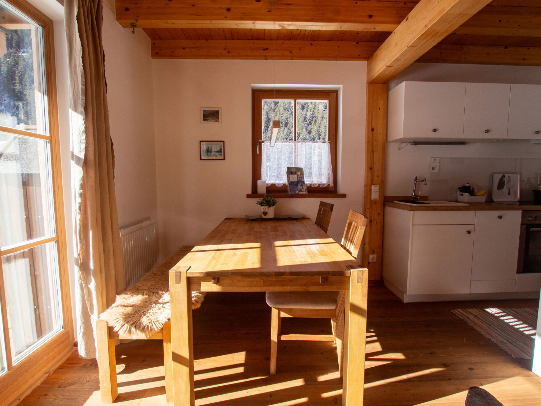 "Lodge kleiner Bär 191 im Tauerndorf Enzingerboden", 3-room chalet 66 m2. Object suitable for 6 adults. Living room with 1 sofabed, 1 pull-out bed, open-hearth fireplace and TV. 1 room with 1 double bed. 1 room with 1 double bed. Open kitchen (4 hot plates, oven, dishwasher, kettle, electric coffee machine). 2 showers/WC, 2 sep. WC's. Balcony, terrace 20 m2. Barbecue. View of the lake and the mountains. Facilities: hair dryer. Internet (WiFi, free). Please note: non-smokers only. Maximum 1 pet/ dog allowed. 50624-000671-2024