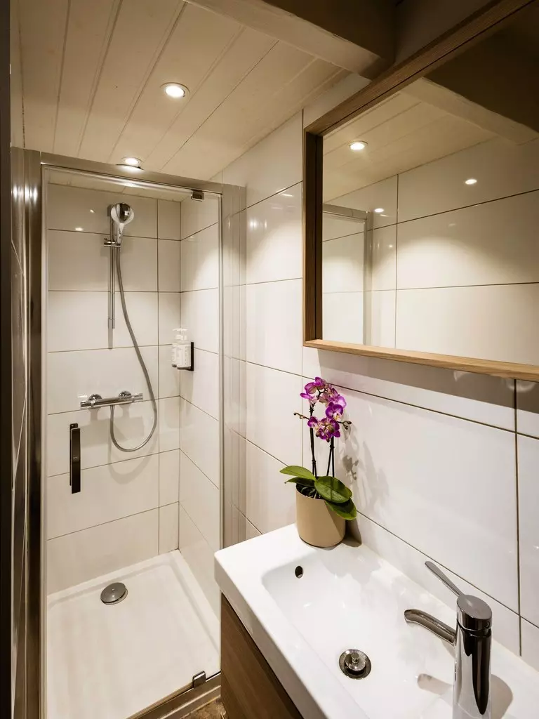 Shower room (Level 1): sink, shower, hairdryer and WC.