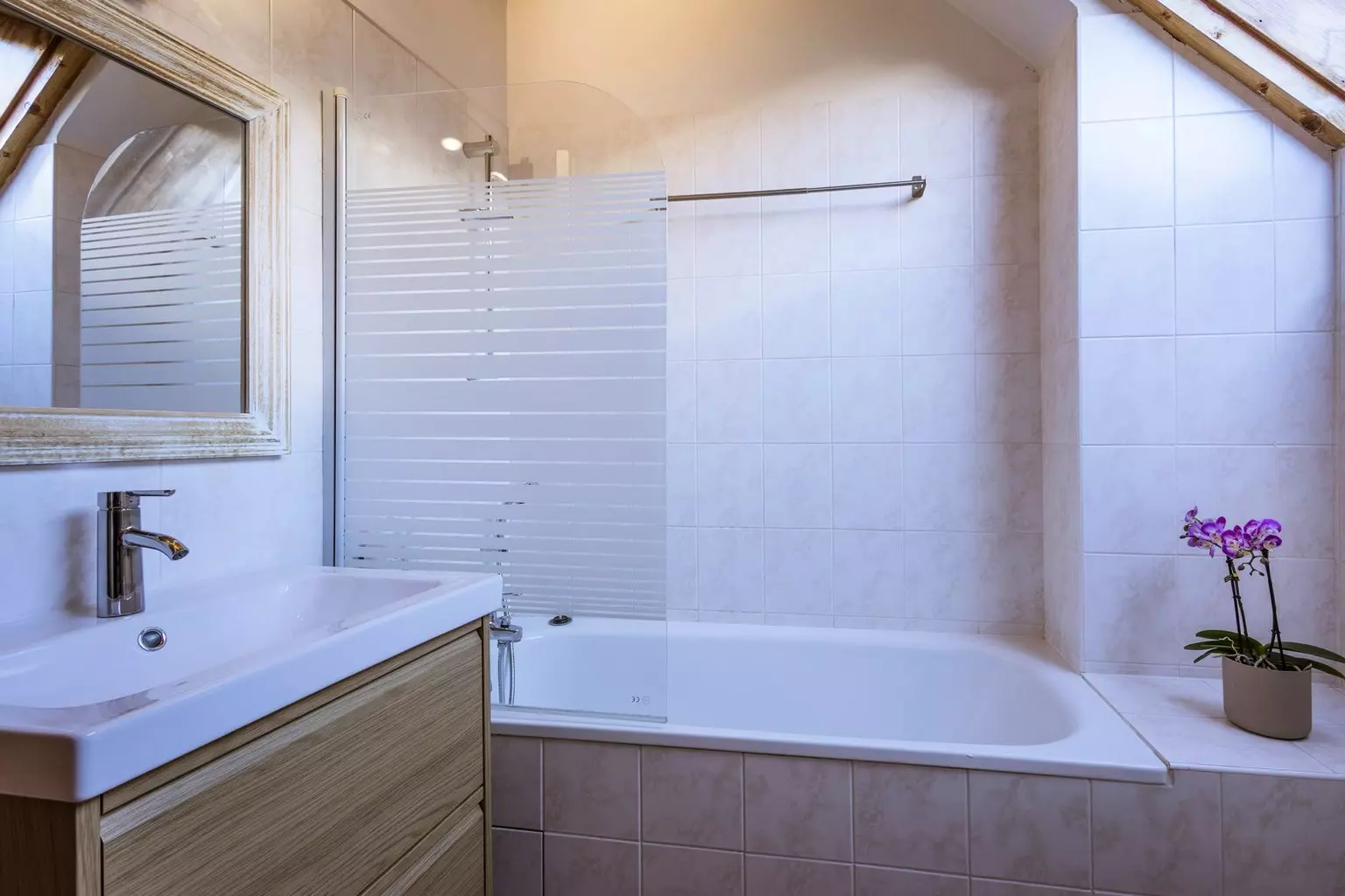 Bathroom (Level -1): sink, bathtub, hairdryer and WC.