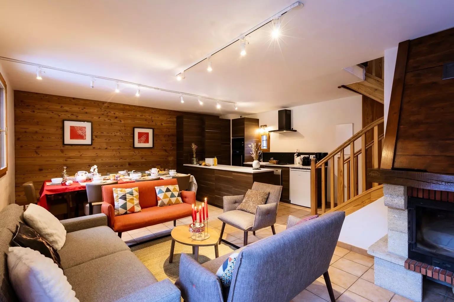 Semi-detached triplex chalet: Level 0: Entrance + sleeping area + living room / Level +1: Bedrooms + Bathroom / Level -1: Bedrooms + Bathroom