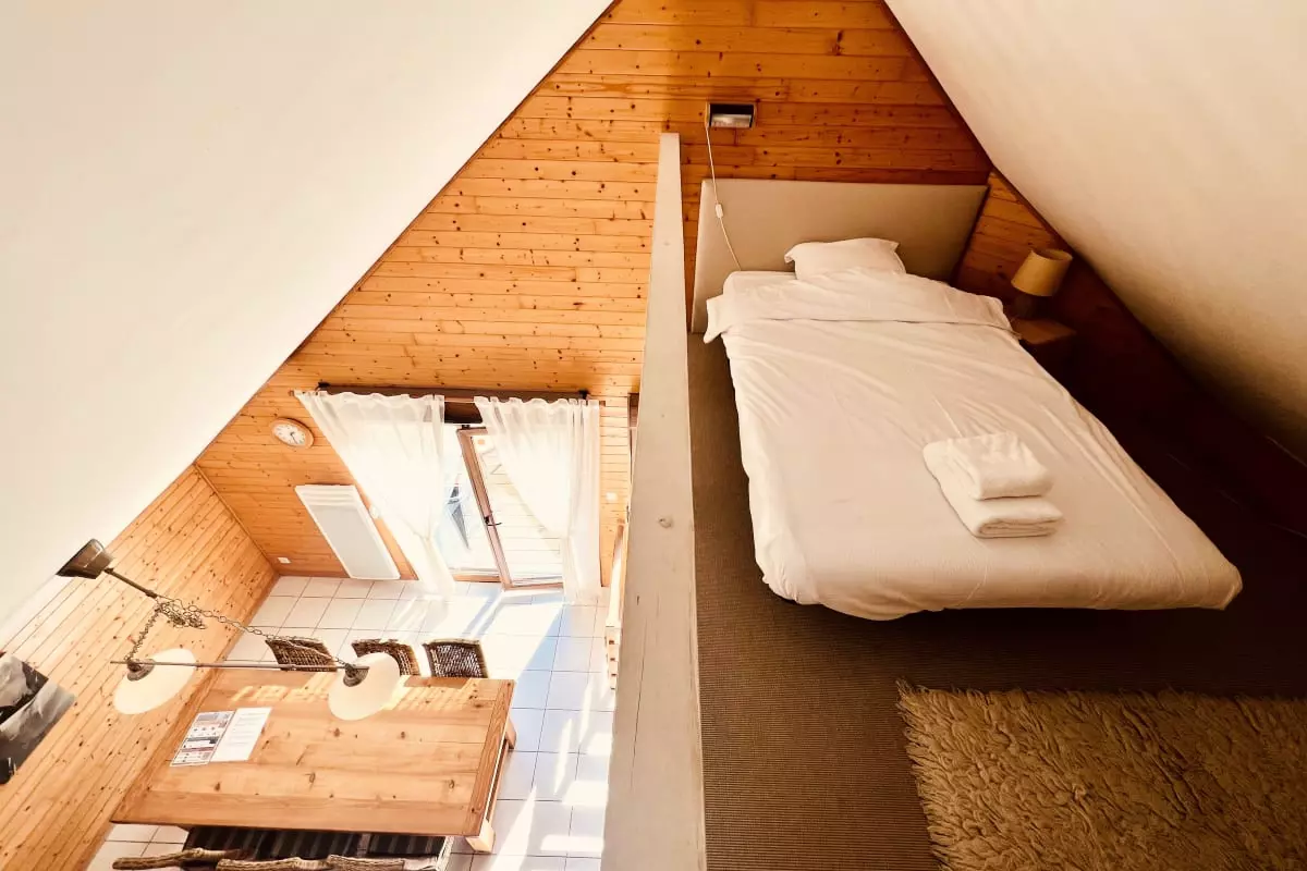 - a mezzanine with a single bed;