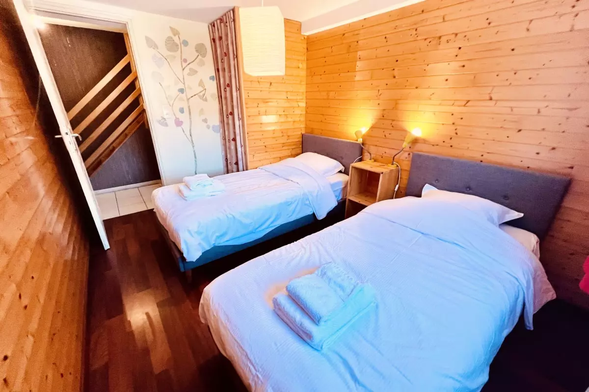 - a bedroom with two single beds;