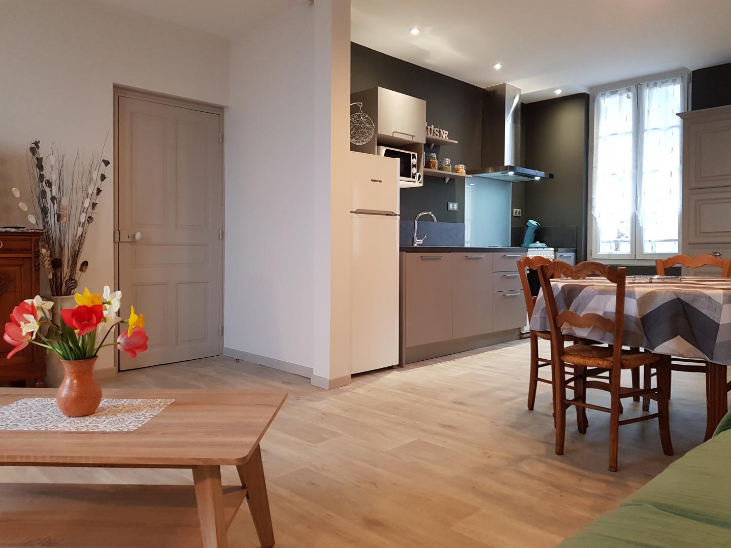The house consists of a beautiful living room, spacious with fully equipped kitchen open to the living room. Two bedrooms, one bedroom with a double bed and one bedroom with two double beds. A bathroom and a separate toilet. A laundry room. Outside, a beautiful terrace with a green space, view of the Sourdoire Valley. From October 15 to April 1 € 5 / day for heating. In the heart of the Dordogne Valley, in the small village of Curemonte, classified as one of the Most Beautiful Villages in France, close to Collonges la Rouge and close to the remarkable sites of the Lot such as Rocamadour, Padirac ... but also at the gateway to Périgord, Sarlat la Canéda ... We will welcome you in our completely renovated cottage, at the foot of the Château de Curemonte. The cottage offers a panoramic view of the Sourdoire Valley from the living room and from the master bedroom.