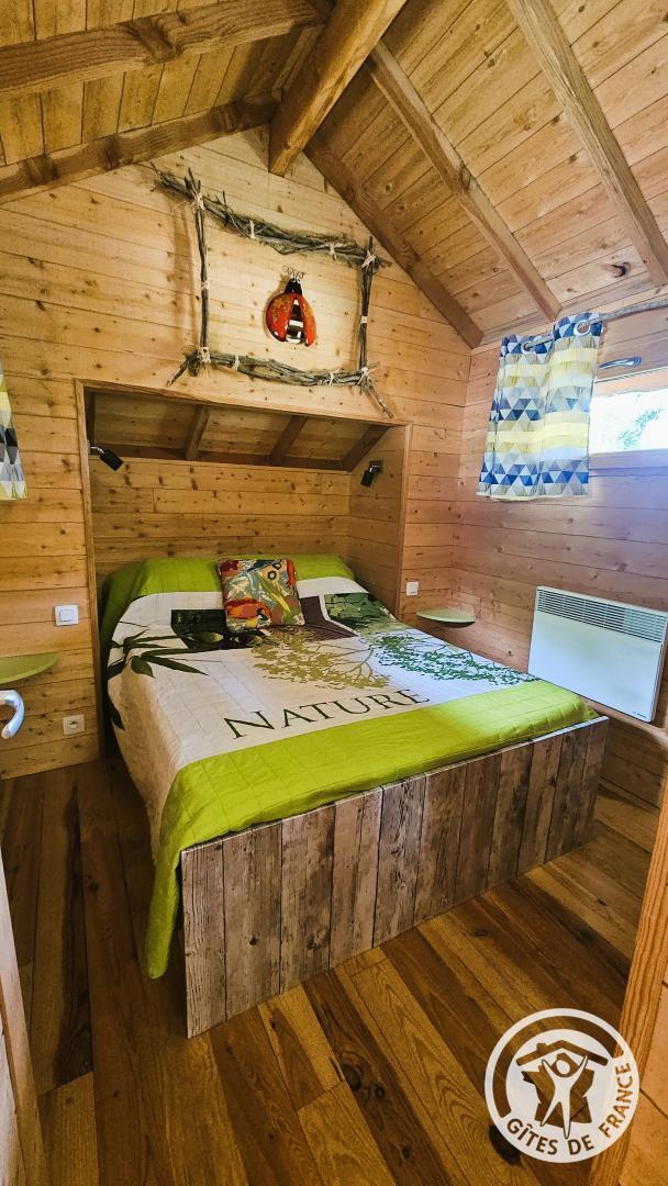1 bedroom with 1 double bed, kitchenette, sofa, shower room, toilet, heating. Land of approximately 600 m². Enclosed terrace. Warm in all seasons thanks to its heating, this adorable cabin is located 2.4 km from Lac du Causse. You will have a modern layout: a shower room with shower, toilet and sink, an equipped kitchenette. A covered terrace will allow you to enjoy the barbecue or the deckchairs available.