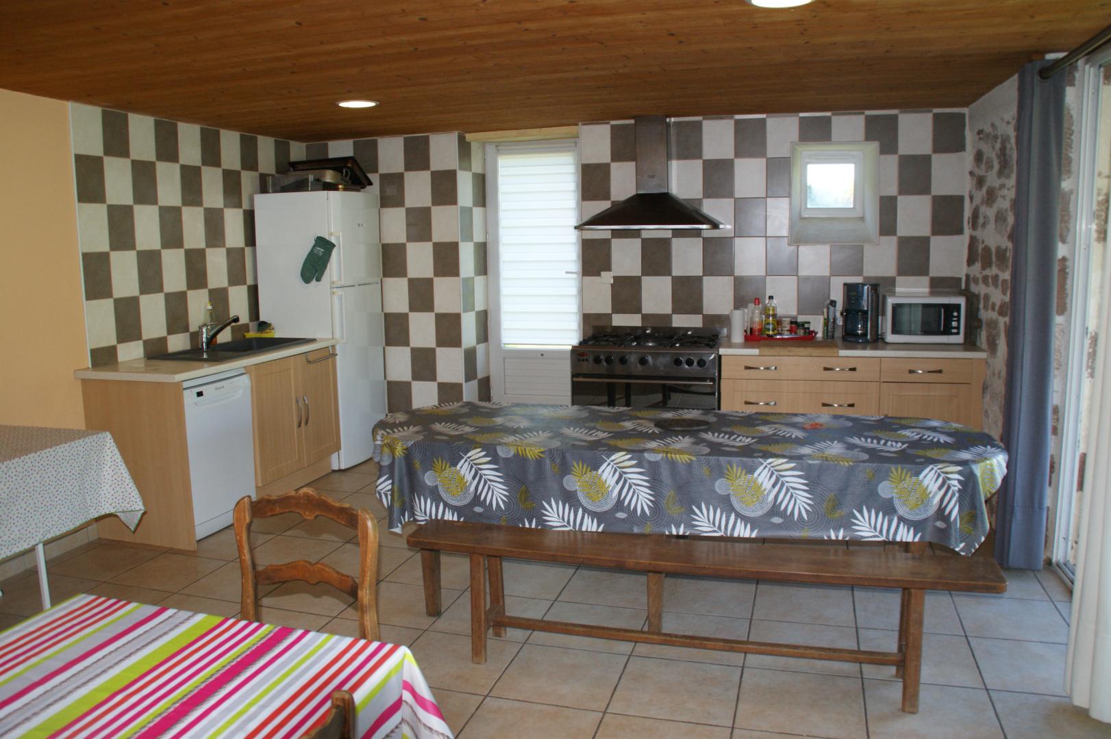 Perfect for family or friends reunions. Kitchen area, dining room with wood stove (free wood). 3 bedrooms with 3 double beds, 1 bedroom with 2 single beds. Two shower rooms (one with WC + a separate WC).