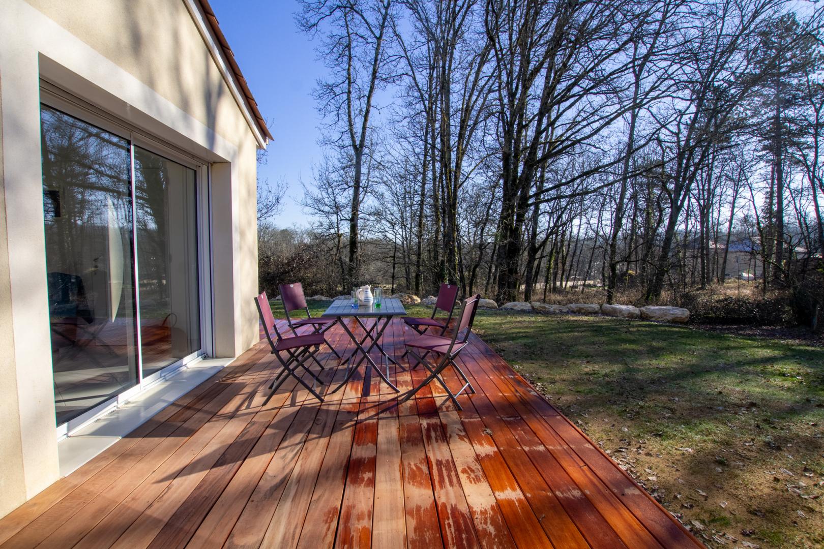 Pretty recent single-storey and comfortable house 500 meters from the village of Saint Martial de Nabirat in the Périgord Noir. You will benefit from a kitchen equipped with a freezer, an oven, a microwave, a dishwasher, 3 ceramic hobs, open to the living room (TV and wifi) and the dining room. Reversible air conditioning throughout the house. You will have a bedroom with 1 bed 140x190, a 2nd bedroom with 2 beds 90x190 as well as a bathroom with shower and separate toilet. You will have at your disposal a shelter to store your bikes with padlock. From the large bay windows of the living room, you will access the wooden terrace facing south, not overlooked, to rest after your visits of the day. Baby equipment: travel cot, high chair, changing mat. Electricity and heating included. Sheets 15 € / bed / change. Towels €8/person/change. End of stay cleaning €50. Treat yourself to the gastronomic markets of Sarlat, a medieval town with an exceptional heritage, every Wednesday and Saturday morning. Many hiking, mountain biking and horse riding trails cross the village, including the stage circuit of the Tour du Périgord Sud Dordogne and 6 km away the 400 km Lot VTT circuit for enthusiasts. You can enjoy the river 15 minutes by car from the beaches with gabarre rides, paddle, canoeing... The house is at the gateway to Quercy with 14 of the most beautiful villages in France within a radius of 10 minutes to 1 hour by car: Domme, La Roque Gageac, Monpazier, Beynac, Saint Cirq Lapopie, Rocamadour...