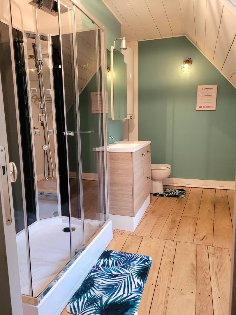 A second bedroom with two single beds (90x190), equipped with a sink with mirror
