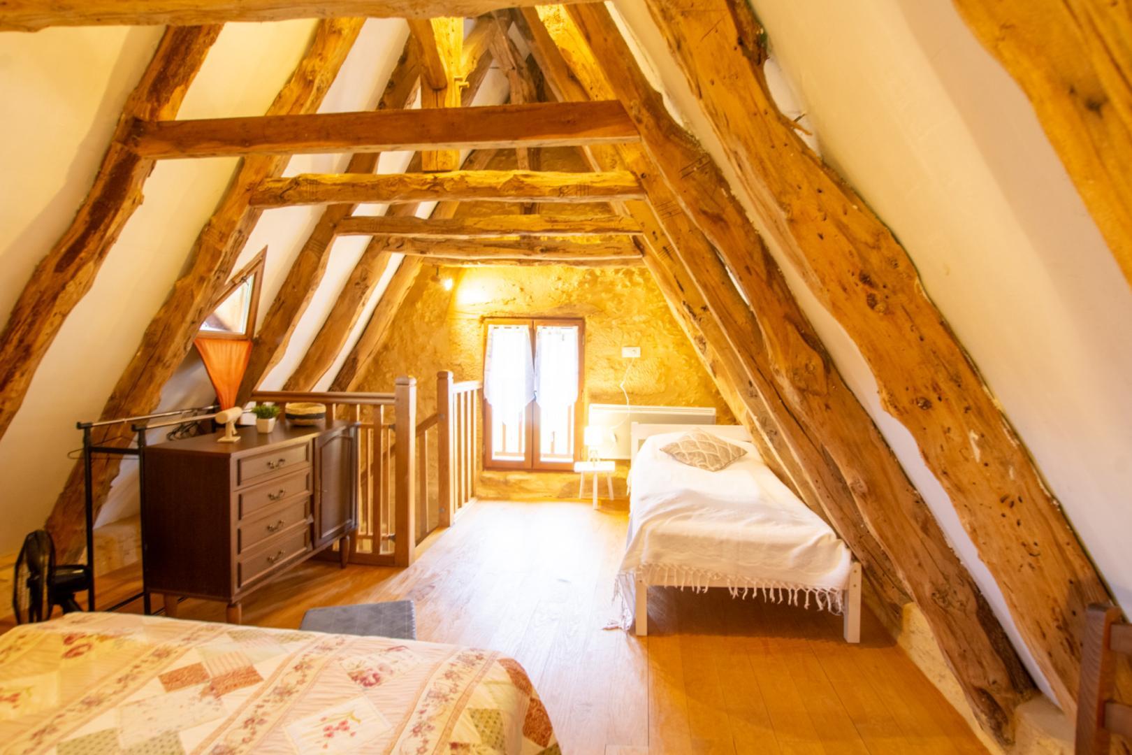 Detached house with, on the ground floor, a living room, followed by a fitted kitchen, a bedroom with a 140 cm bed, a shower room with washing machine and separate toilets. Upstairs (15 steps), a mezzanine accessible from the living room with a 140 cm bed and a 90 cm bed. Overlooking the medieval city of Sarlat-la-Canéda, less than 1 km from the city centre, this isolated house in the countryside is a true haven of peace. During your stay, don't miss the must-see places such as Domme, La Roque-Gageac, Beynac, Castelnaud-la-Chapelle, Les Milandes, Fénelon, Les Eyzies-de-Tayac (capital of Prehistory), the International Center for Parietal Art Lascaux 4, the Grottes de Maxange, the Chasm of Proumeyssac, the Gardens of Marqueyssac and Eyrignac... Enjoy a stay rich in cultural visits and outdoor activities such as hiking or horse riding, canoeing, cycling, and much more.