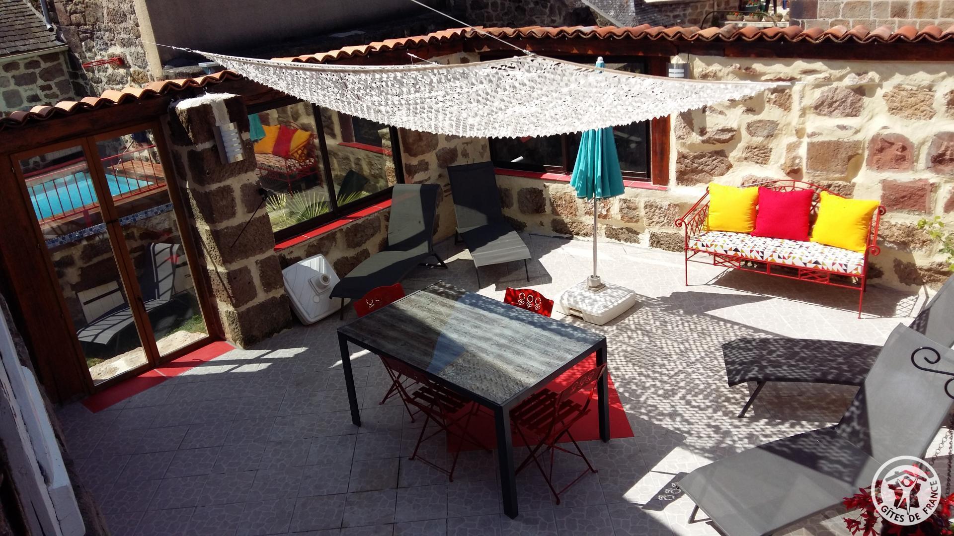 90 m² house with enclosed garden, 2 terraces, swimming pool. Deckchair, barbecue.
