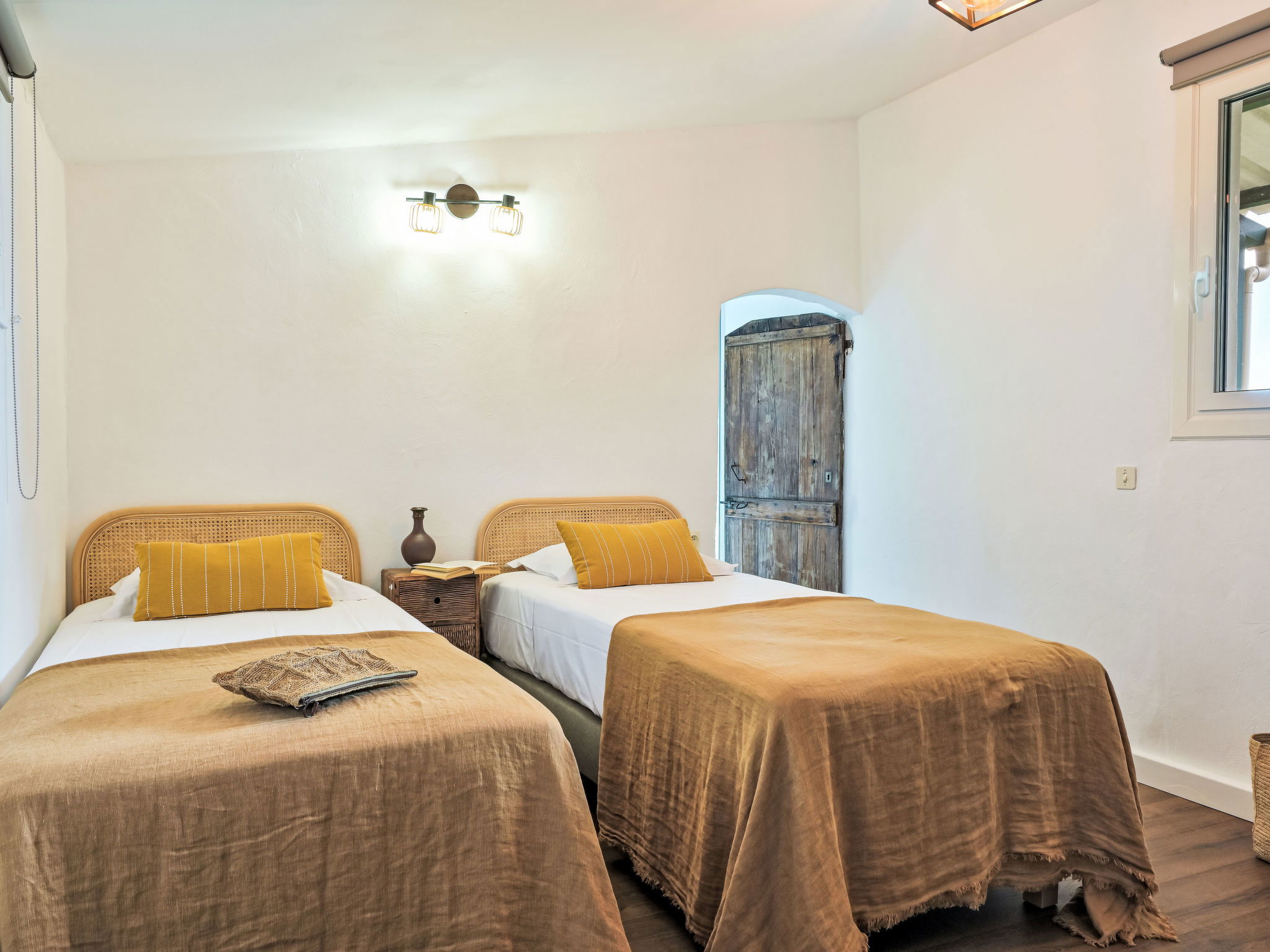 "Maison Gerard", 4-room house 80 m2. Beautiful and cosy furnishings: living/dining room with dining table, satellite TV and air conditioning. Exit to the terrace. 2 rooms, each room with 2 beds (90 cm, length 200 cm), shower/WC. Exit to the terrace. 1 small room with 1 french bed and shower/WC. Open kitchen (oven, dishwasher, 4 gas rings, kettle, microwave, freezer, electric coffee machine). Electric heating. 2 terraces, small garden, lawn, porch. Terrace furniture (portable), deck chairs (2). Very beautiful panoramic view of the sea, the mountains and the countryside. Facilities: washing machine, baby cot for up to 2 year olds. Internet (WiFi). Please note: one double bedroom is outside the apartment. Non-smokers only. Maximum 2 pets/ dogs allowed. Smoke alarm.