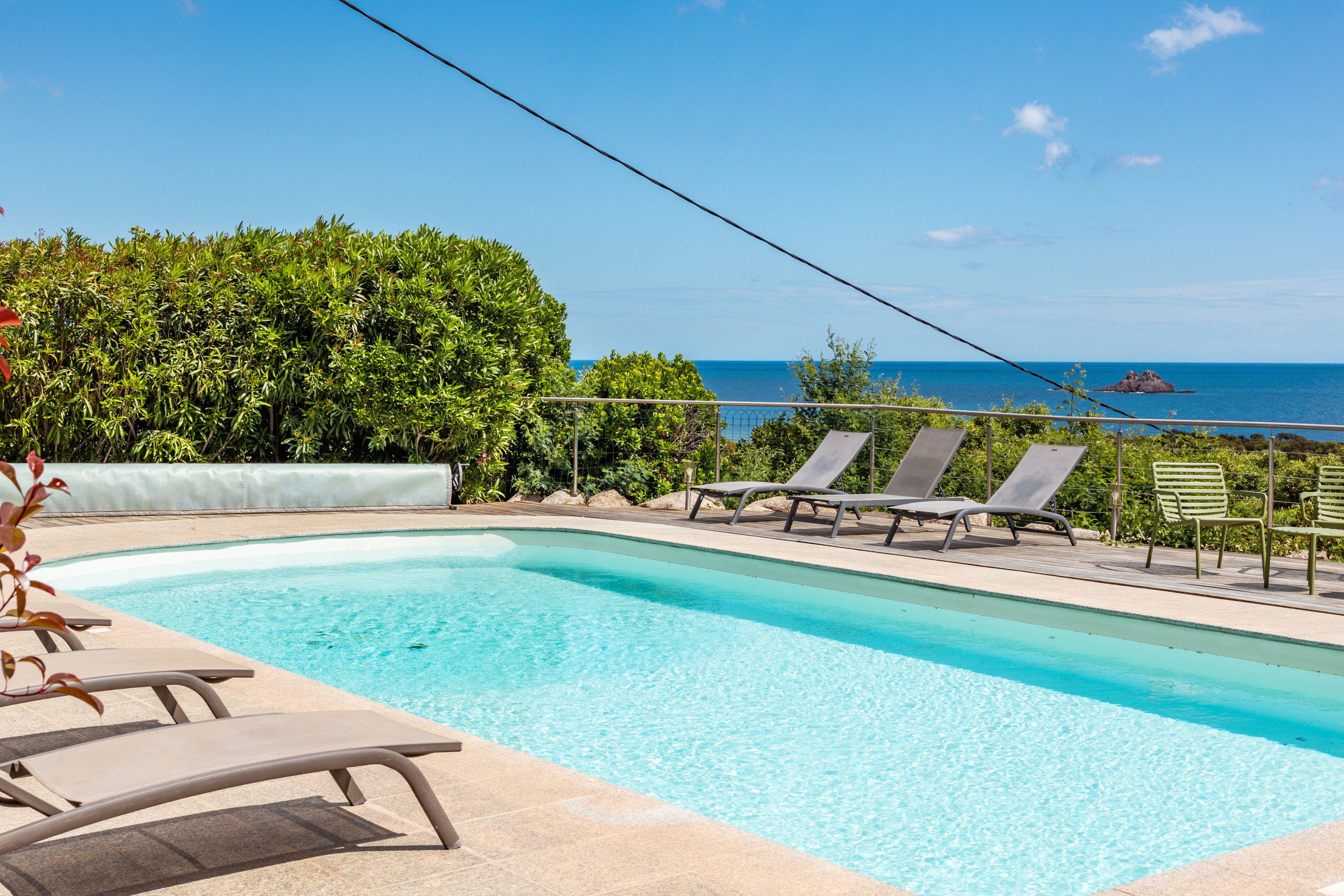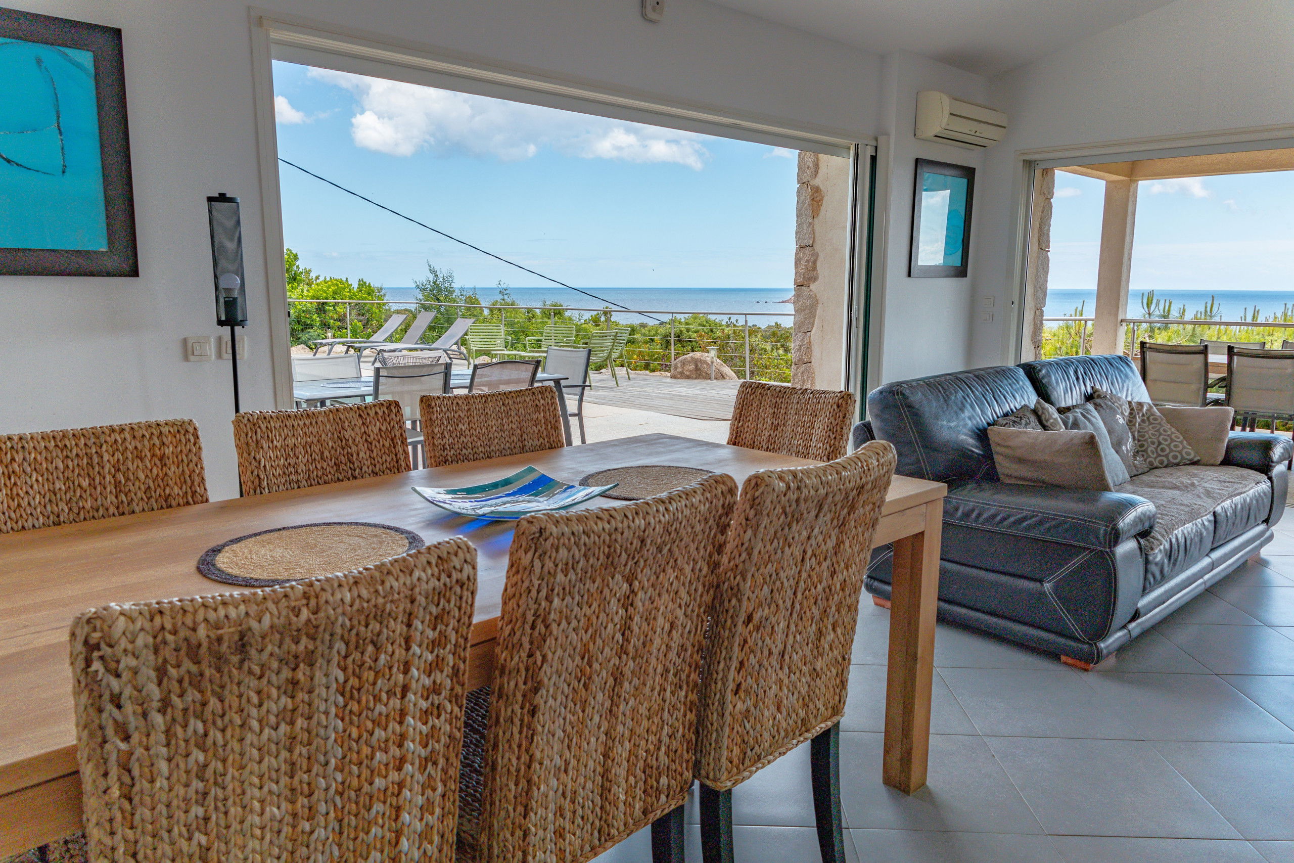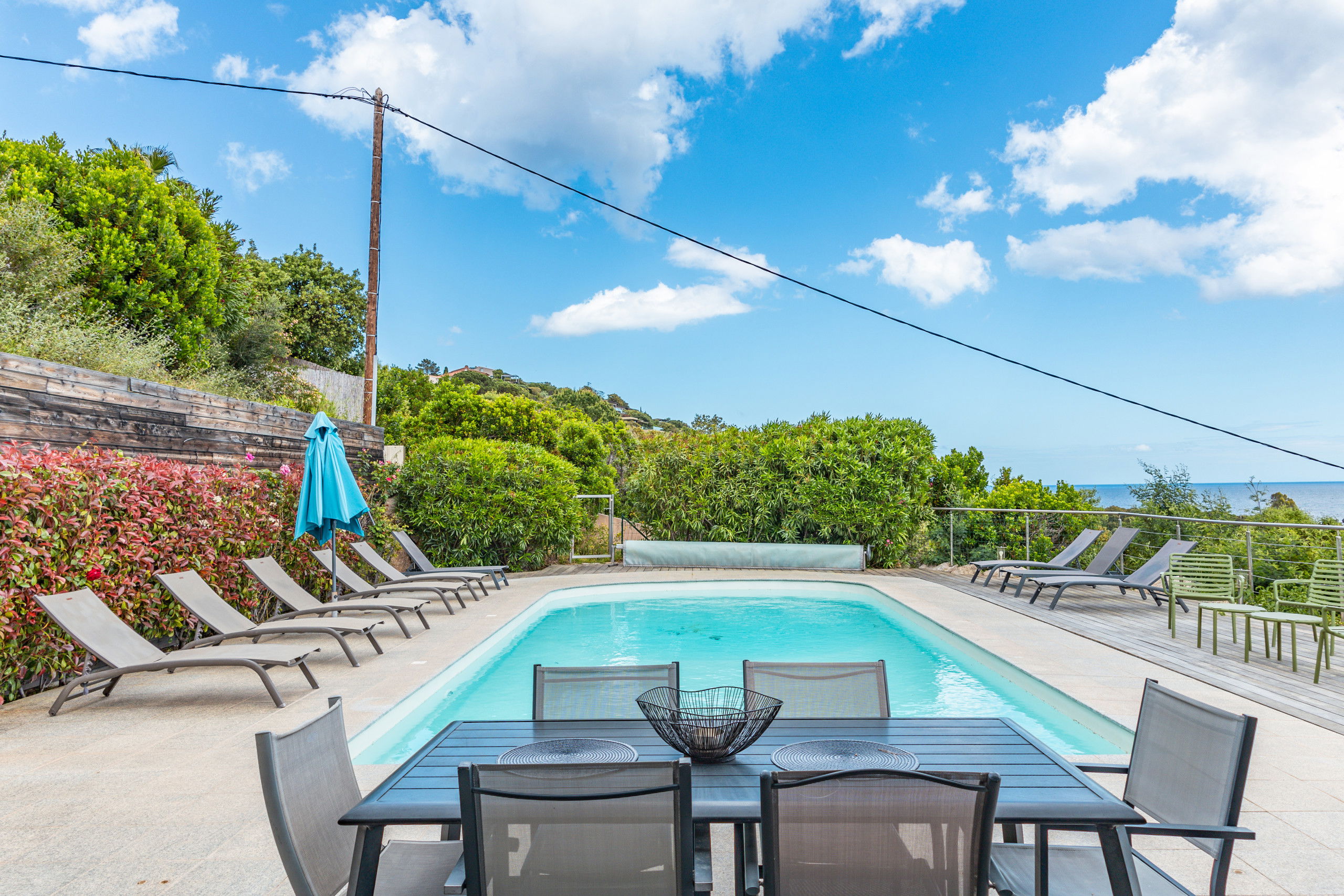 Overlooking the bay of Pinarello and its symbolic Genoese tower and only 250 metres from the beach of Vardiola, this beautiful villa with heated swimming pool is a unique place to spend a holiday with family or friends.
