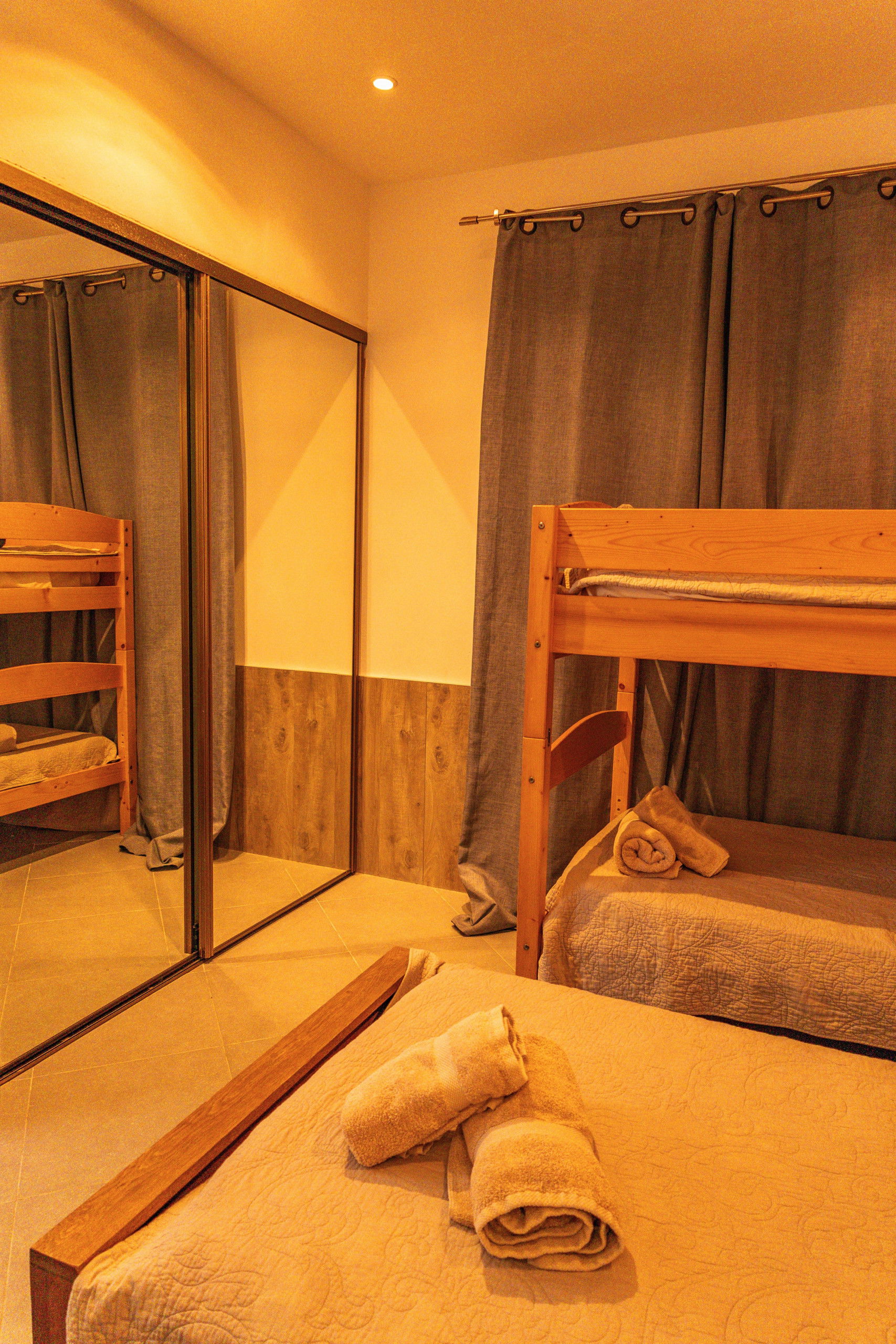 Bedroom 3 : 3 * Single beds 90 * 200 including 1 bunk bed with shower room