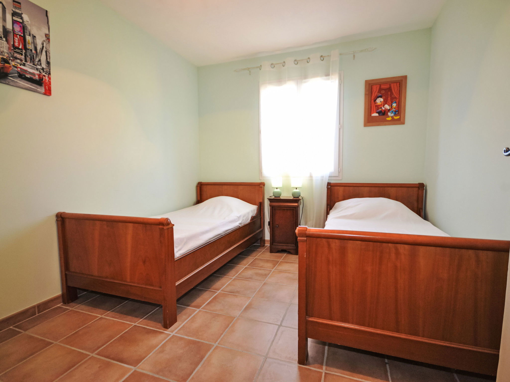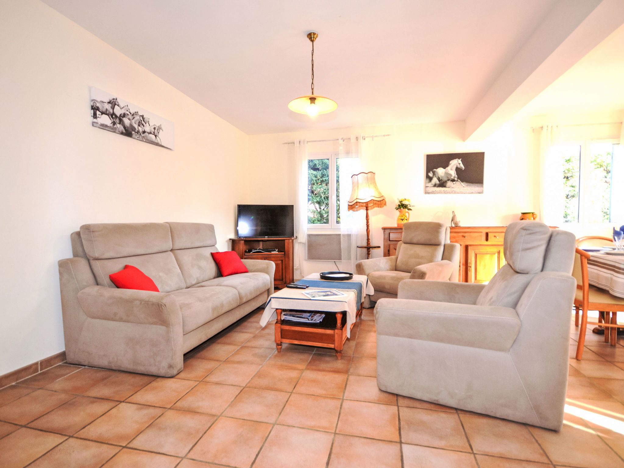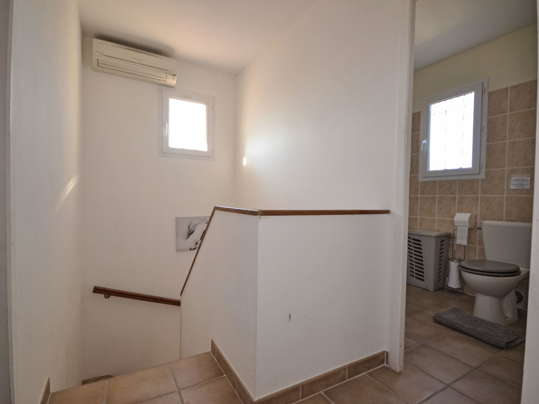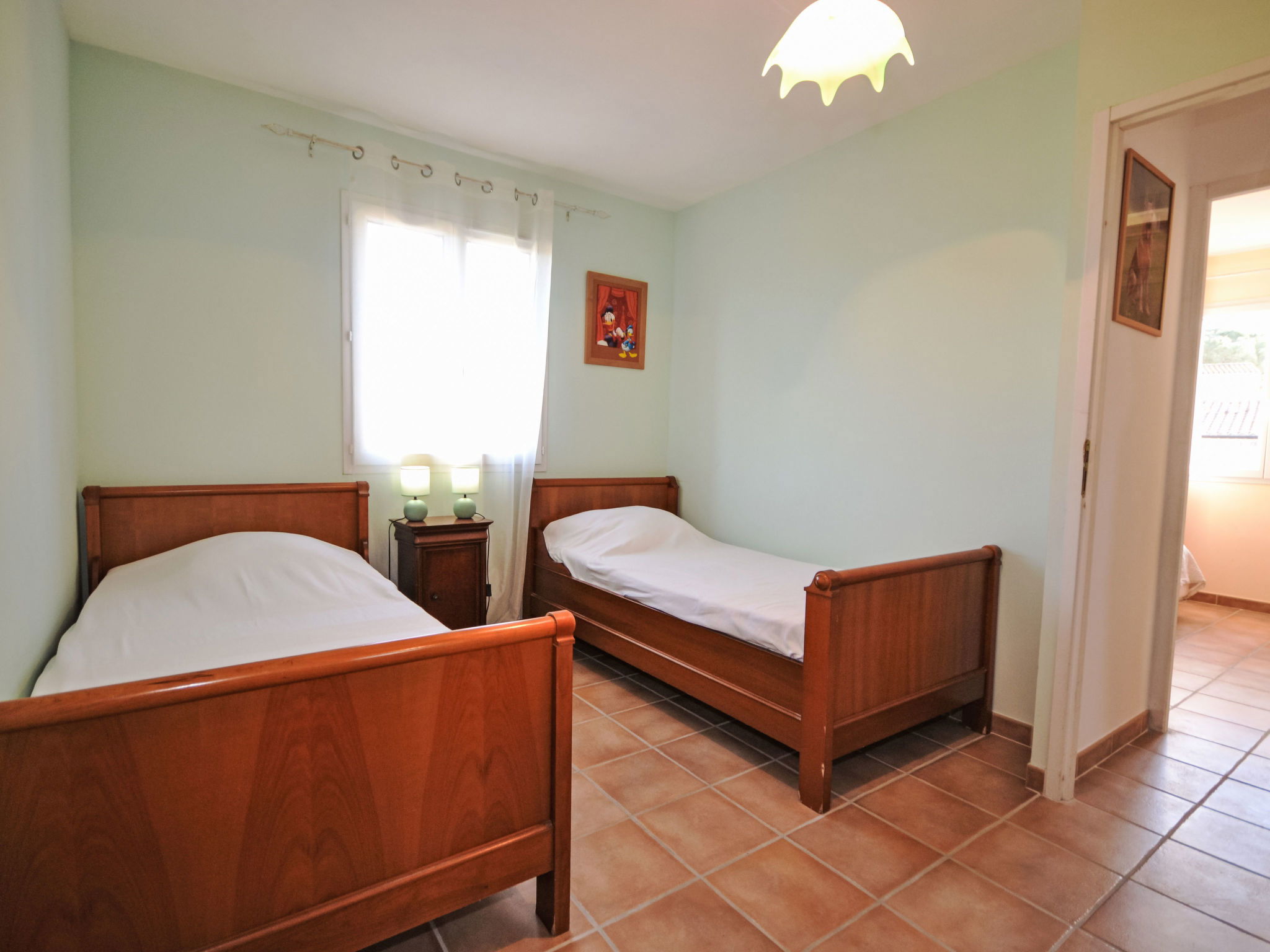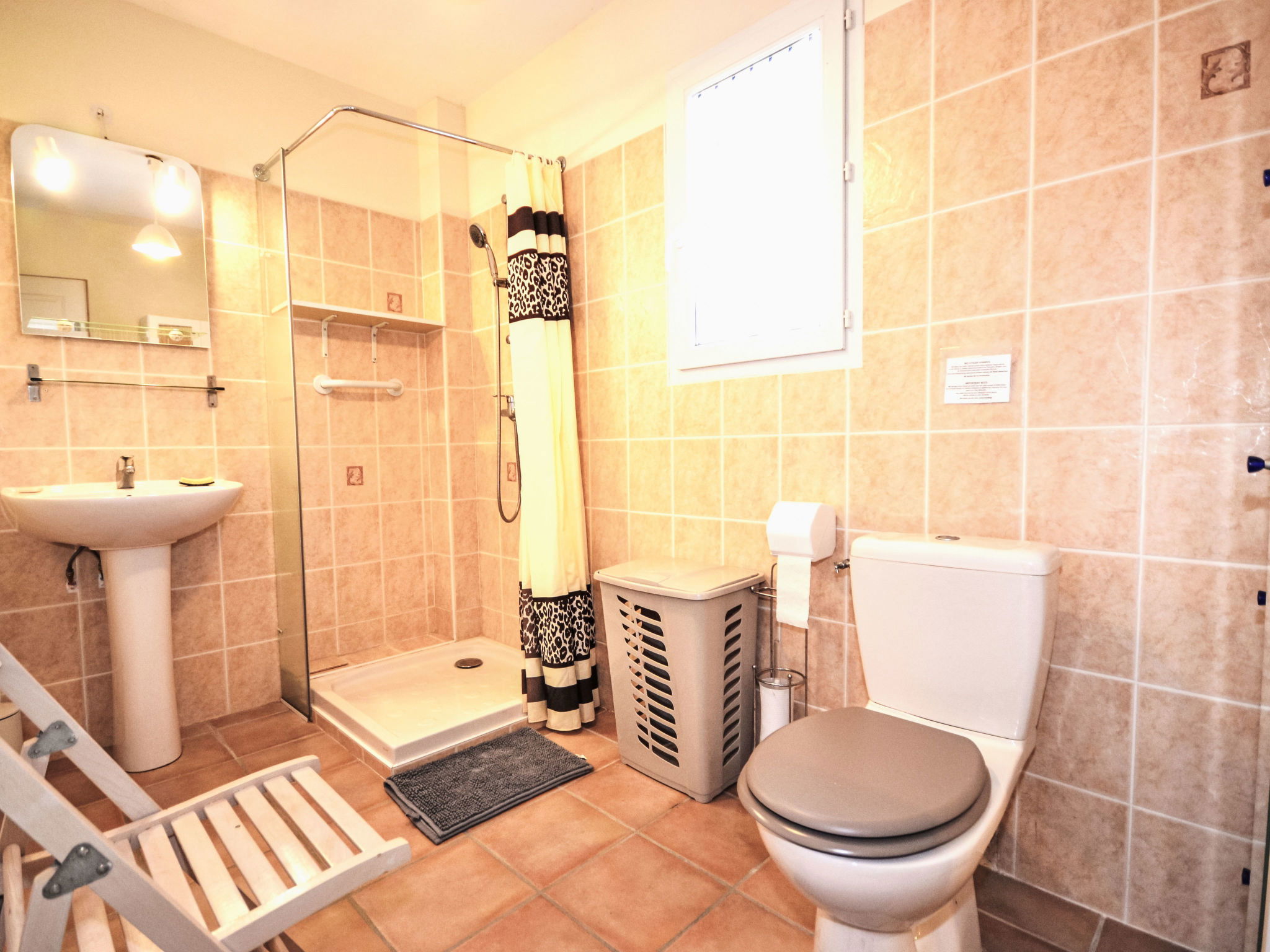 4-room house 100 m2 on 2 levels. Bright, comfortable furnishings: living/dining room with digital TV. Exit to the garden, to the terrace. Open kitchen (4 hot plates, oven, dishwasher, microwave, freezer, electric coffee machine). Shower/WC. Upper floor: 2 rooms, each room with 1 french bed (140 cm). 1 room with 2 beds (90 cm). Shower/WC. Facilities: Internet (WiFi, free). Please note: suitable for families. Non-smoking house. 1 small pet/ dog allowed. Smoke alarm.