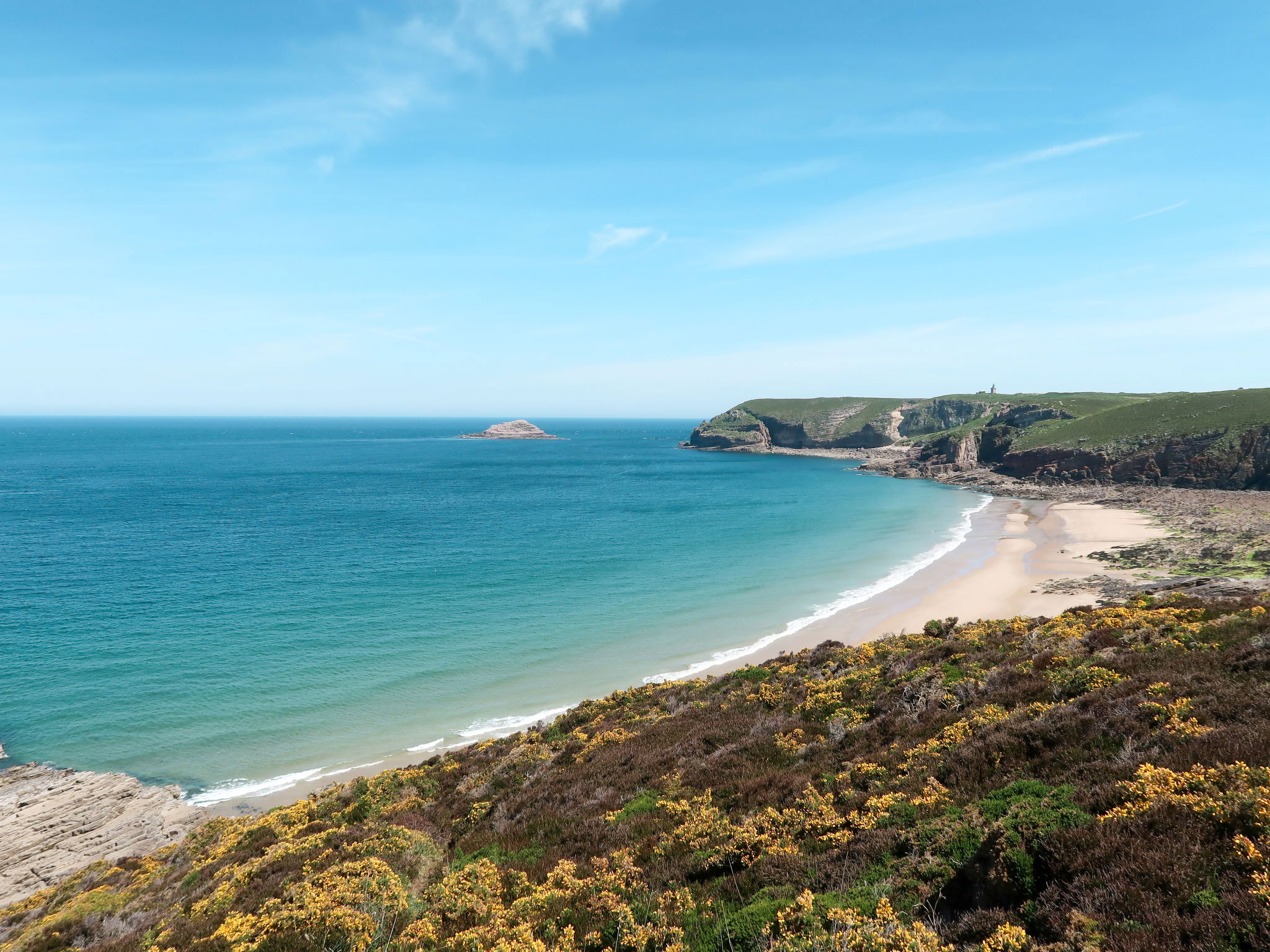 Apartment block "La Carquois". 13 houses in the residence. In the hamlet La Carquois 2 km from the centre of Sables d'Or Les Pins, 3 km from the centre of Fréhel, 1.5 km from the sea, 1.5 km from the beach, in the countryside. For shared use: property 2 ha with lawn and trees. Table tennis, boccia, volleyball court, fireplace, children's playground. In the complex: washing machine (for shared use, extra). Parking on the premises. Grocery 2 km, restaurant 2 km, bus stop 3 km, sandy beach "de Sables d'or les Pins" 1.5 km. Golf course (18 hole) 2 km. Nearby attractions: Cap Fréhel 8 km, Erquy 9 km, Pleneuf Val André 17 km, Saint Cast Le Guildo 18 km, Dinard 34 km, Saint Malo 47 km. Hiking paths: GR34.