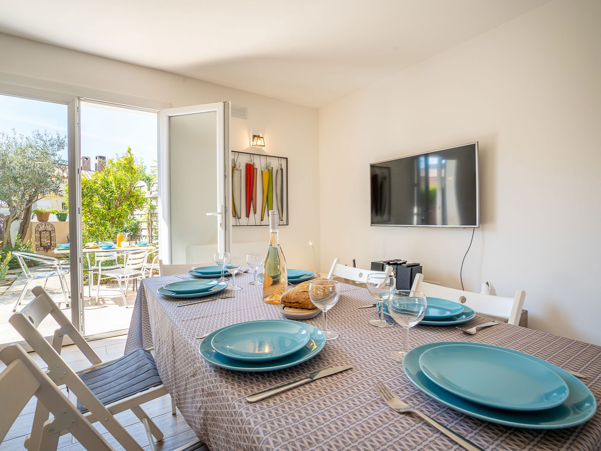 Les Salins 5 km from Hyéres: Residence "Pescadou". In the district of Des Salins with 20 houses, in a quiet, sunny position, 250 m from the sea. Private: garden. Motor access to the house. Parking (limited number of spaces) at the house. Grocery, restaurant, bar, bakery, bus stop 250 m, sandy beach. Nearby attractions: Magic Word 7 km. Please note: Loading and unloading of baggage is possible at the holiday house. The keys‘ handover takes place by the agency in Hyères sur le port. Airfield close by 5 km from the property. Neighbourhood highly sensitive to noise. Quietness and good behaviour expected.