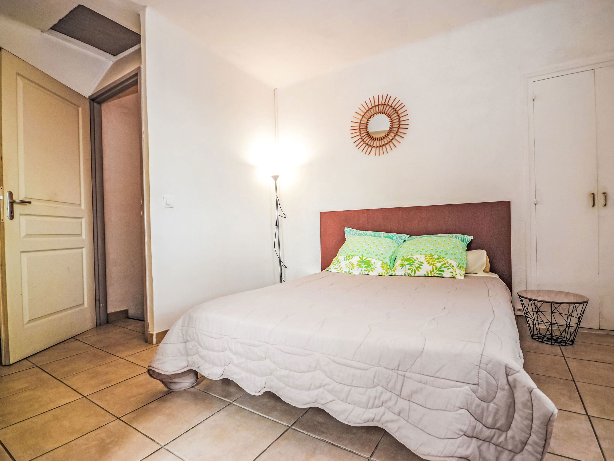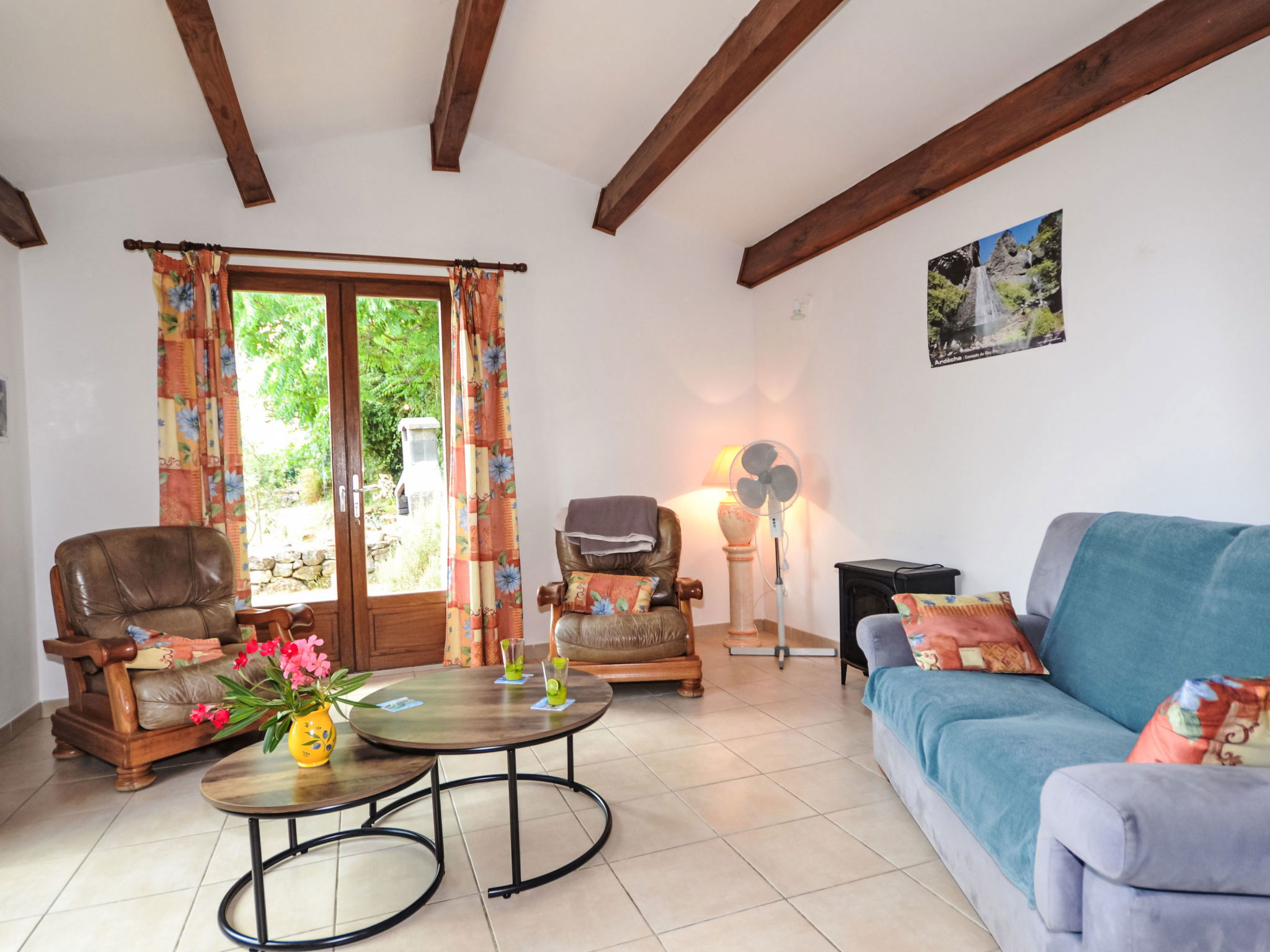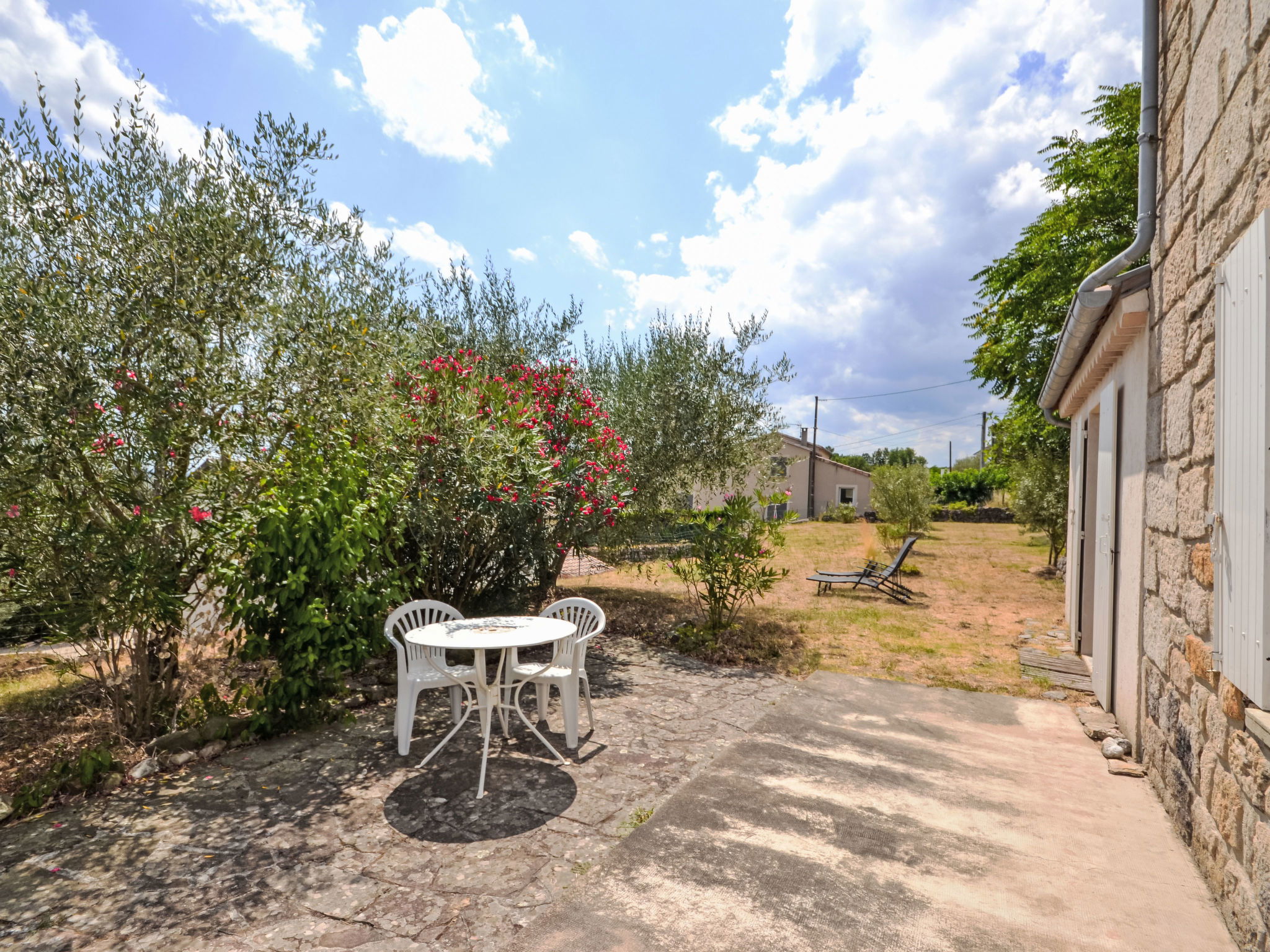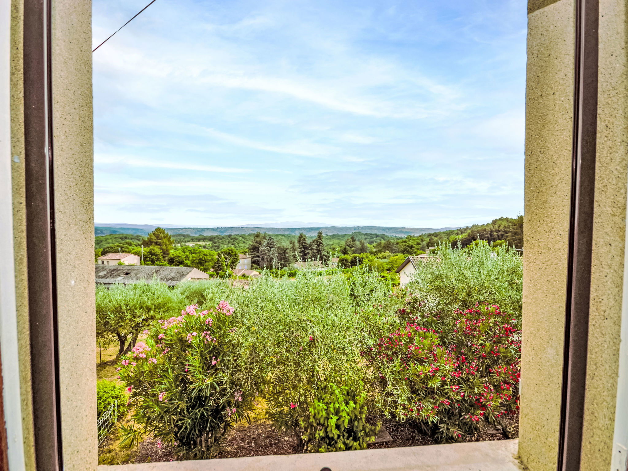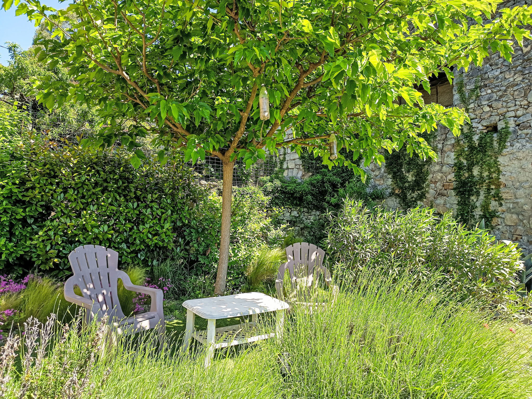 "Les Lauriers Roses", 3-room house 80 m2 on 2 levels. Practical and cosy furnishings: living room with TV (flat screen), CD-player, hi-fi system and fan. Exit to the garden. Kitchen (1 hot plate, oven, dishwasher, 3 gas rings, toaster, kettle, microwave, freezer, electric coffee machine) with dining table and wood-burning stove. Upper floor: 1 open room with 1 french bed (140 cm, length 190 cm), shower/WC. Electric heating. Terrace, patio. Terrace furniture, barbecue, deck chairs (4). Beautiful view of the mountains and the countryside. Facilities: washing machine, children's high chair, baby cot. Please note: non-smoking house. Maximum 2 pets/ dogs allowed. Smoke alarm. Offer by a private individual according to Art. 155, IV of CGI.