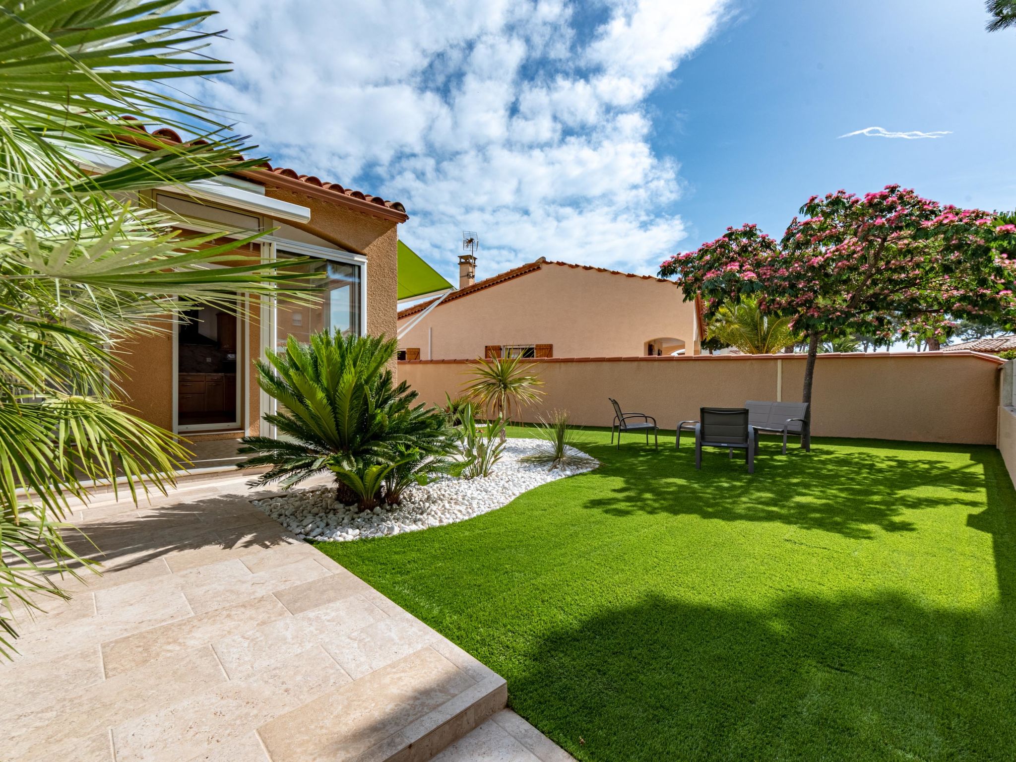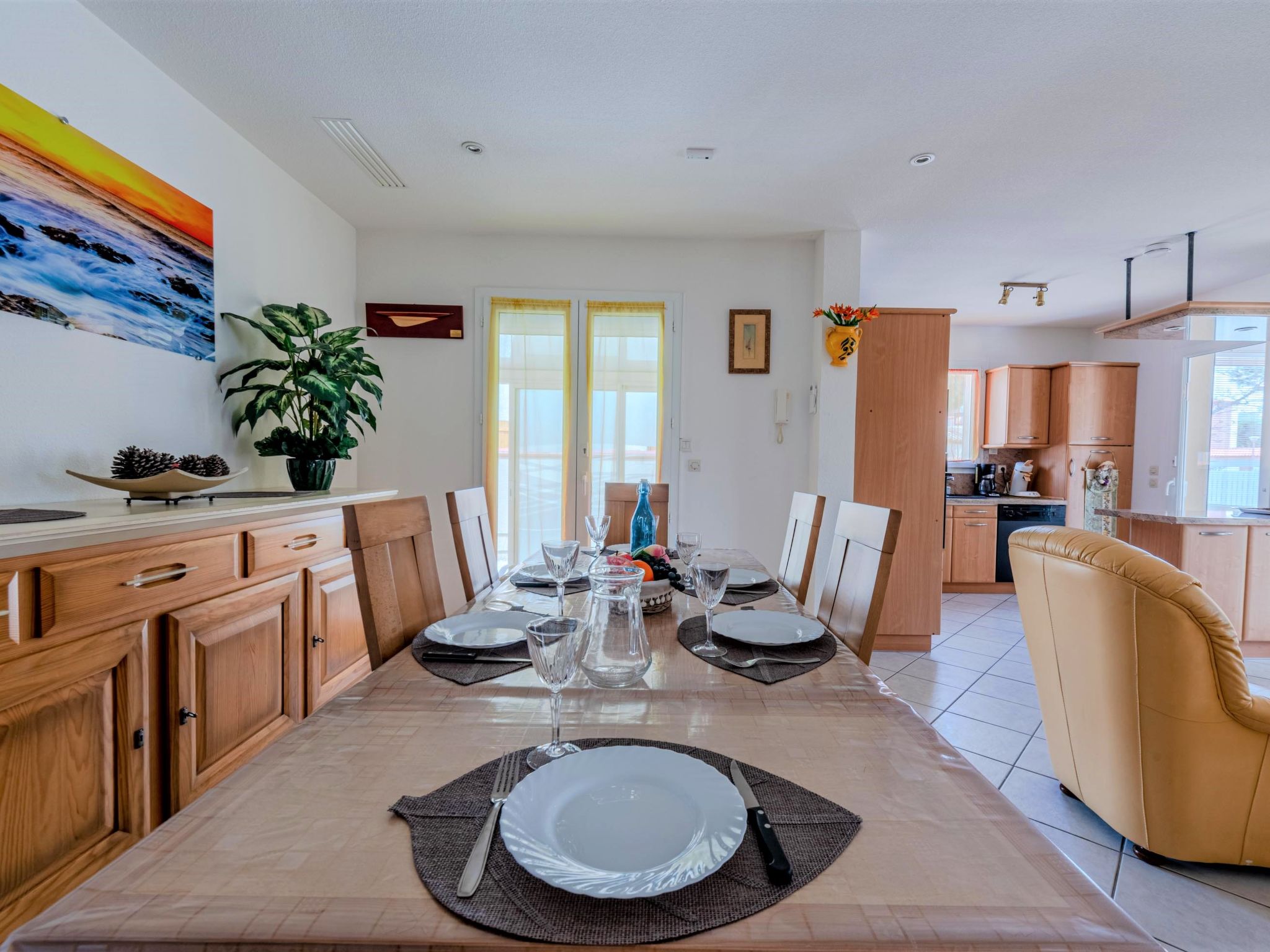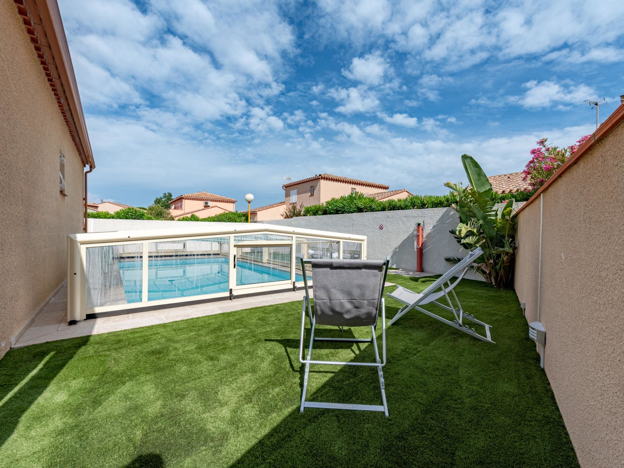 Villa "Ladine". In the centre of Barcarès village, 300 m from the sea, 250 m from the beach. Private: garden, swimming pool angular, heated, fenced (3 x 7 m, depth 120 - 170 cm, seasonal availability: 15.Jun. - 15.Sep.) with internal staircase and salt-electrolysis pool-cleaning system. Outdoor shower, terrace, pool maintenance by the owner/gardener. Shop 100 m, grocery, supermarket 500 m, restaurant, bar 600 m, bakery 500 m, café 600 m, bus stop "Méditerranée" 450 m, railway station "Perpignan" 20 km, nudist beach 16 km. Sports harbour 3 km, tennis 5 km, minigolf 5 km, riding stable 8 km. Nearby attractions: Aqualand de Port Leucate 5 km, Reserve Africaine de Sigean 41 km, Fort de Salses 20 km, parcours aventure 7 km, Téleski nautique site des dosses 7 km, Spot de windsurf 7 km. Well-known lakes can easily be reached: Etang de Leucate ou Salses 7 km, Lac de Villeneuve de La Raho 28 km. Hiking paths: Sentier du guetteur 8 km, la forteresse de salses 15 km, Sentier du littoral Collioure 40 km. Please note: entertainment in the season.