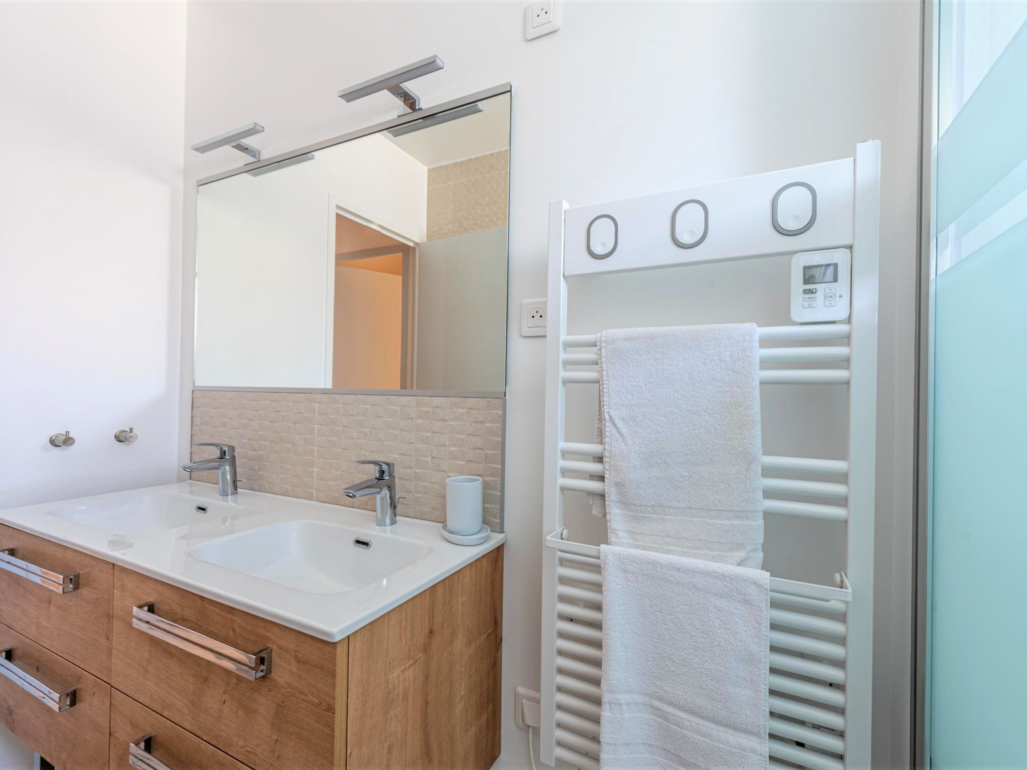 4-room villa 115 m2. Beautiful furnishings: living/dining room with TV (flat screen). Exit to the veranda. 2 rooms, each room with 1 french bed (1 x 140 cm). 1 room with 2 beds (90 cm). Open kitchen (oven, dishwasher, 4 ceramic glass hob hotplates, microwave, electric coffee machine). Exit to the veranda. Shower, sep. WC. Heating, air-conditioning. Terrace furniture. Facilities: washing machine, iron, hair dryer. Internet (WiFi, free). Parking (1 car). Please note: suitable for families. Maximum 1 pet/ dog allowed. Smoke alarm. Villa Ladine is located in a quiet residential area where the owners stay year-round. Offer by a private individual according to Art. 155, IV of CGI. FR6640