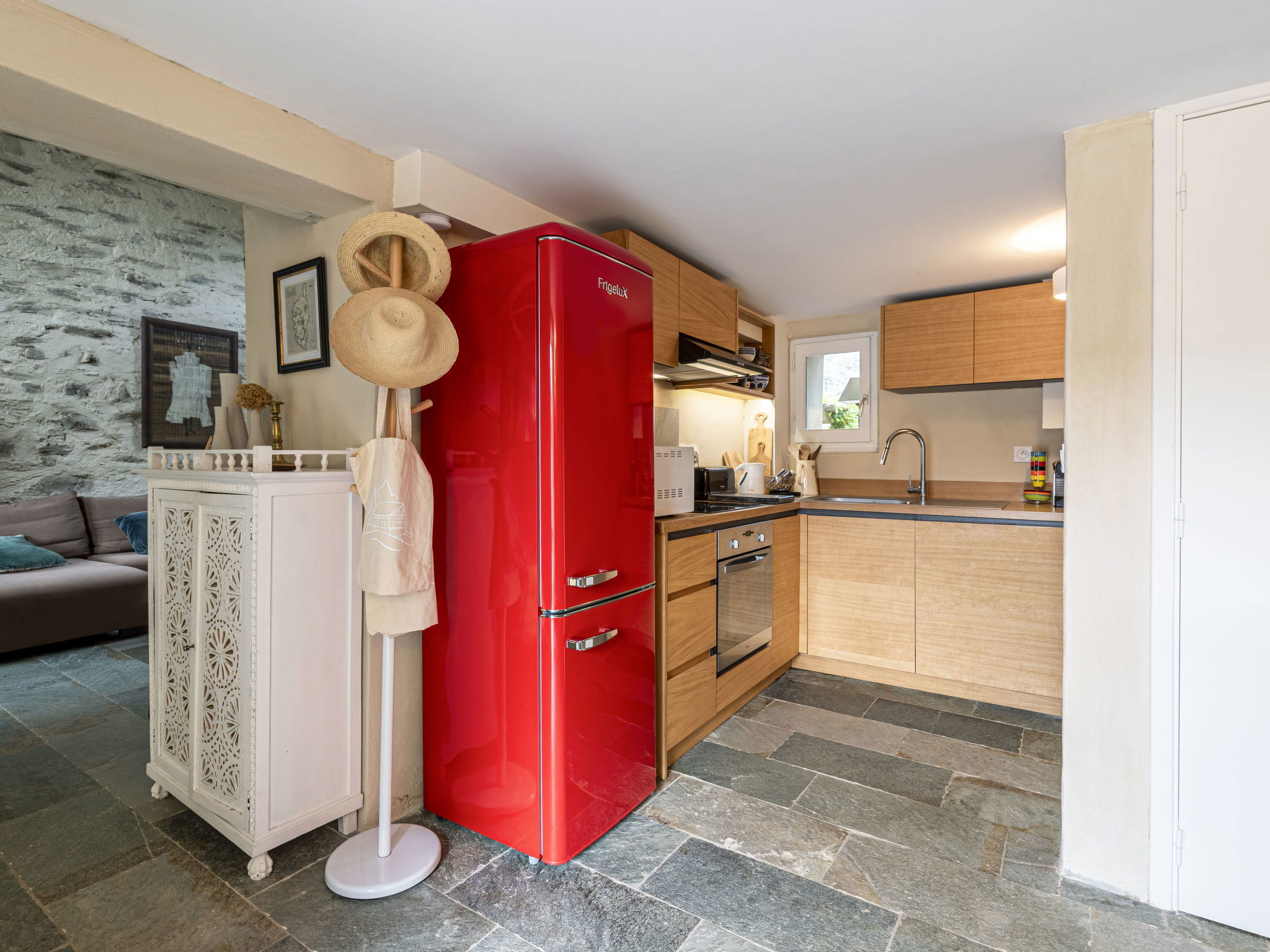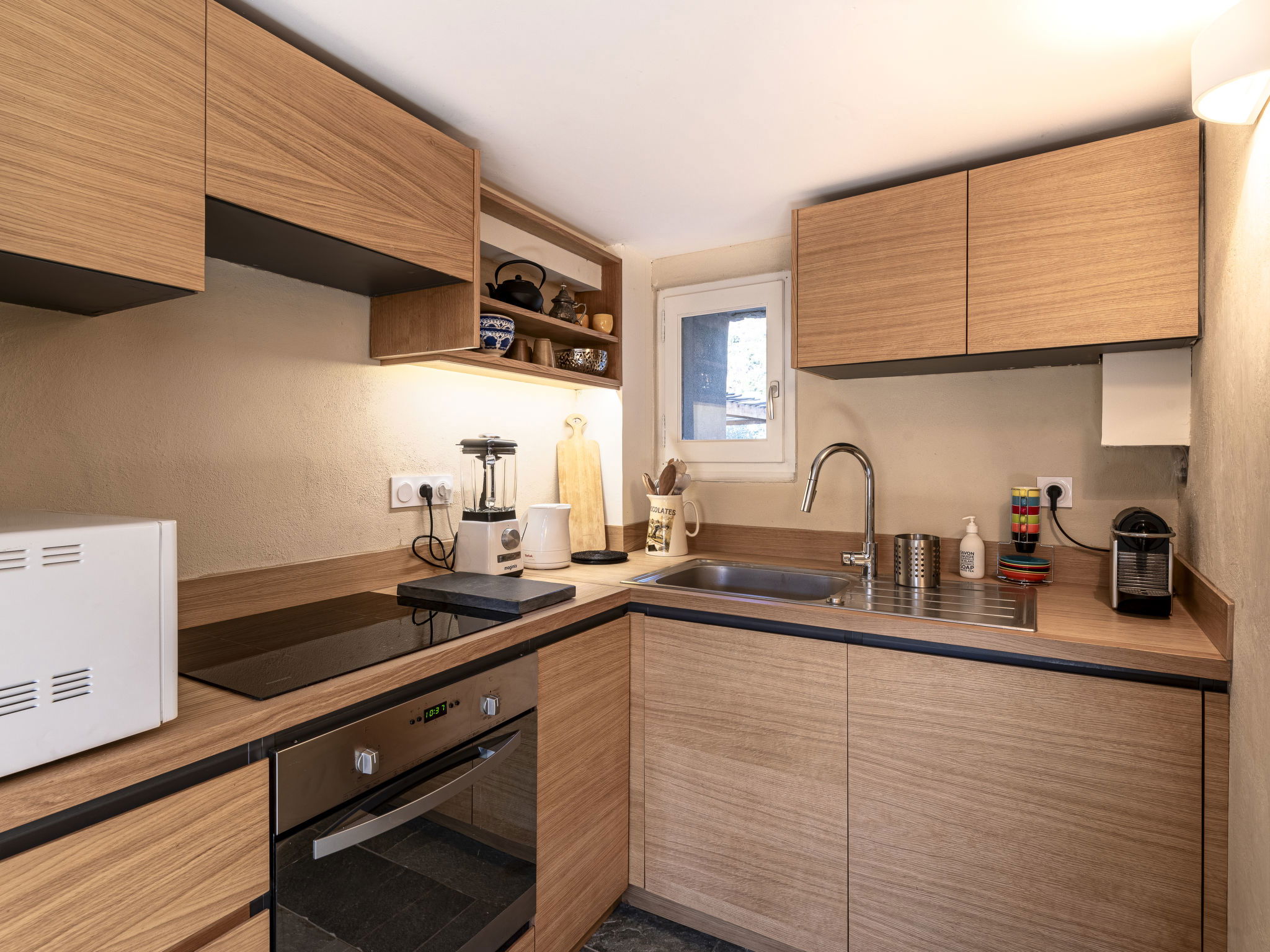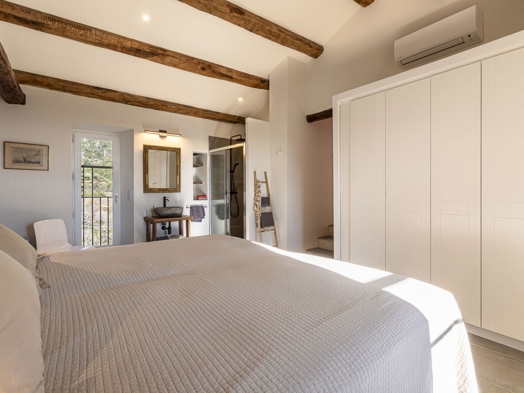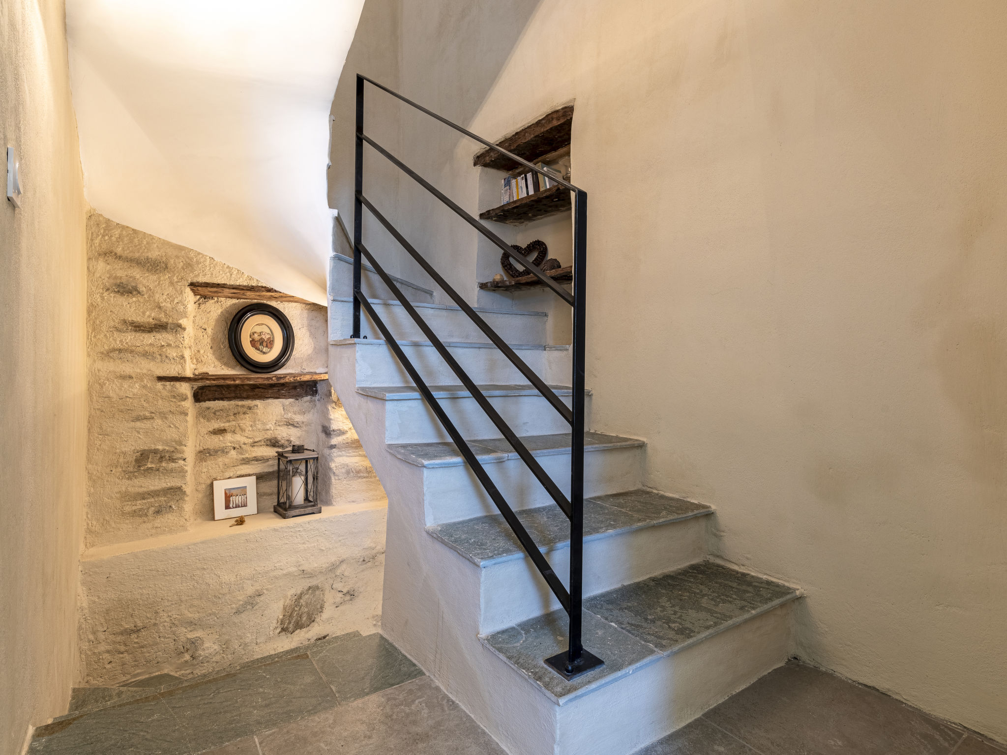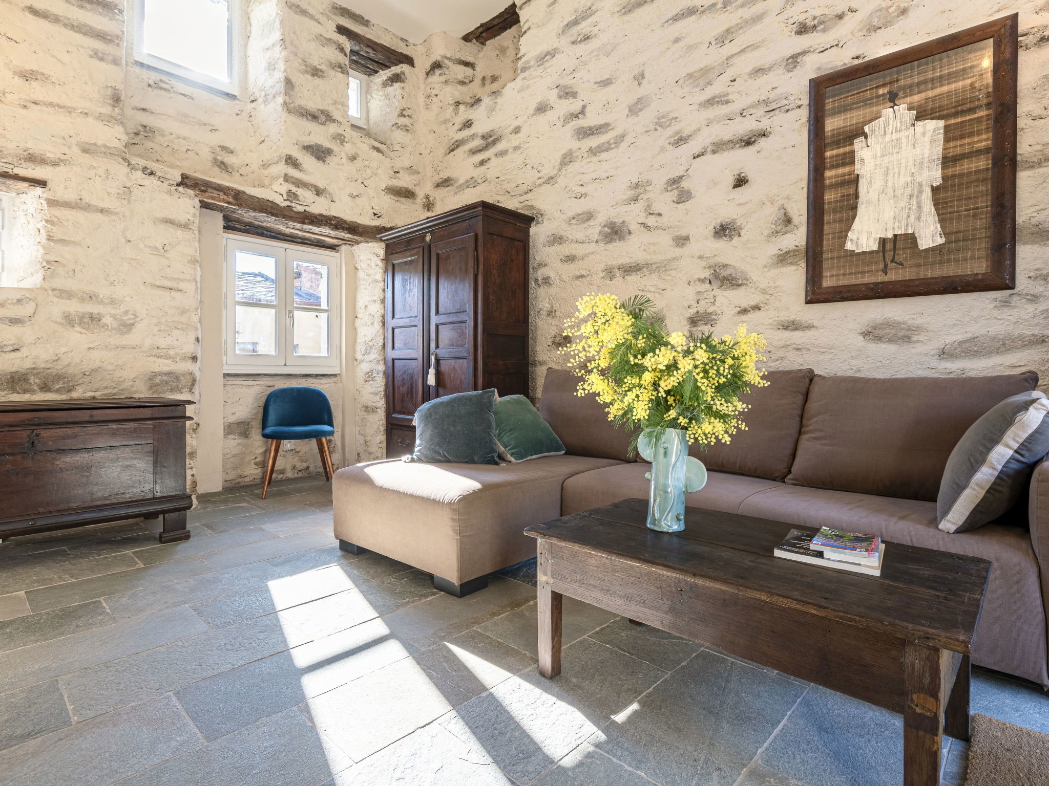 "Casa Serena", 4-room terraced house 95 m2 on 3 levels. Comfortable and cosy furnishings: lounge with open-hearth fireplace and dining table. Exit to the terrace. Open kitchen (oven, dishwasher, 3 induction hot plates, toaster, kettle, microwave, electric coffee machine, Capsules for coffee machine (nespresso) extra). Sep. WC. Heating. Upper floor: 1 children's room with 1 bed (80 cm, length 190 cm). Shower/WC. 2nd upper floor: small office. 1 large room with 1 french bed (200 cm, length 200 cm), shower and air conditioning. 1 room with 1 french bed (2 x 80 cm, length 200 cm), air conditioning. Natural stone floors. Terrace roofed. Terrace furniture, barbecue. Beautiful view of the sea and the mountains. Facilities: washing machine, baby cot, hair dryer. Internet (WiFi). Parking at the house. Please note: non-smokers only. Maximum 1 pet/ dog allowed. Smoke alarm. Offer by a private individual according to Art. 155, IV of CGI.