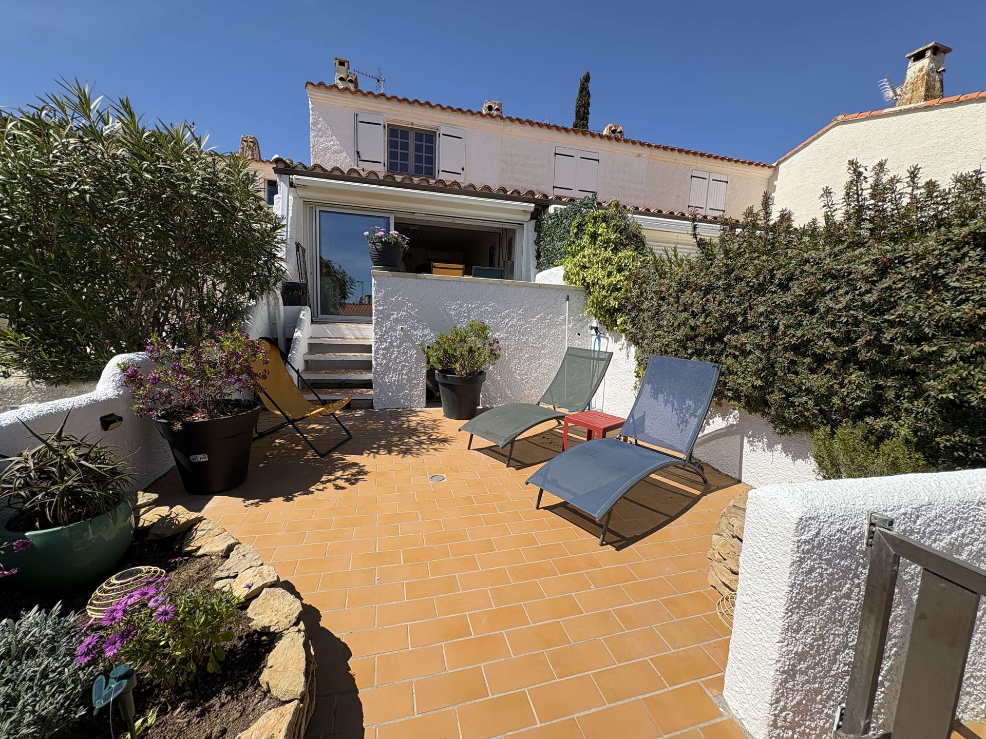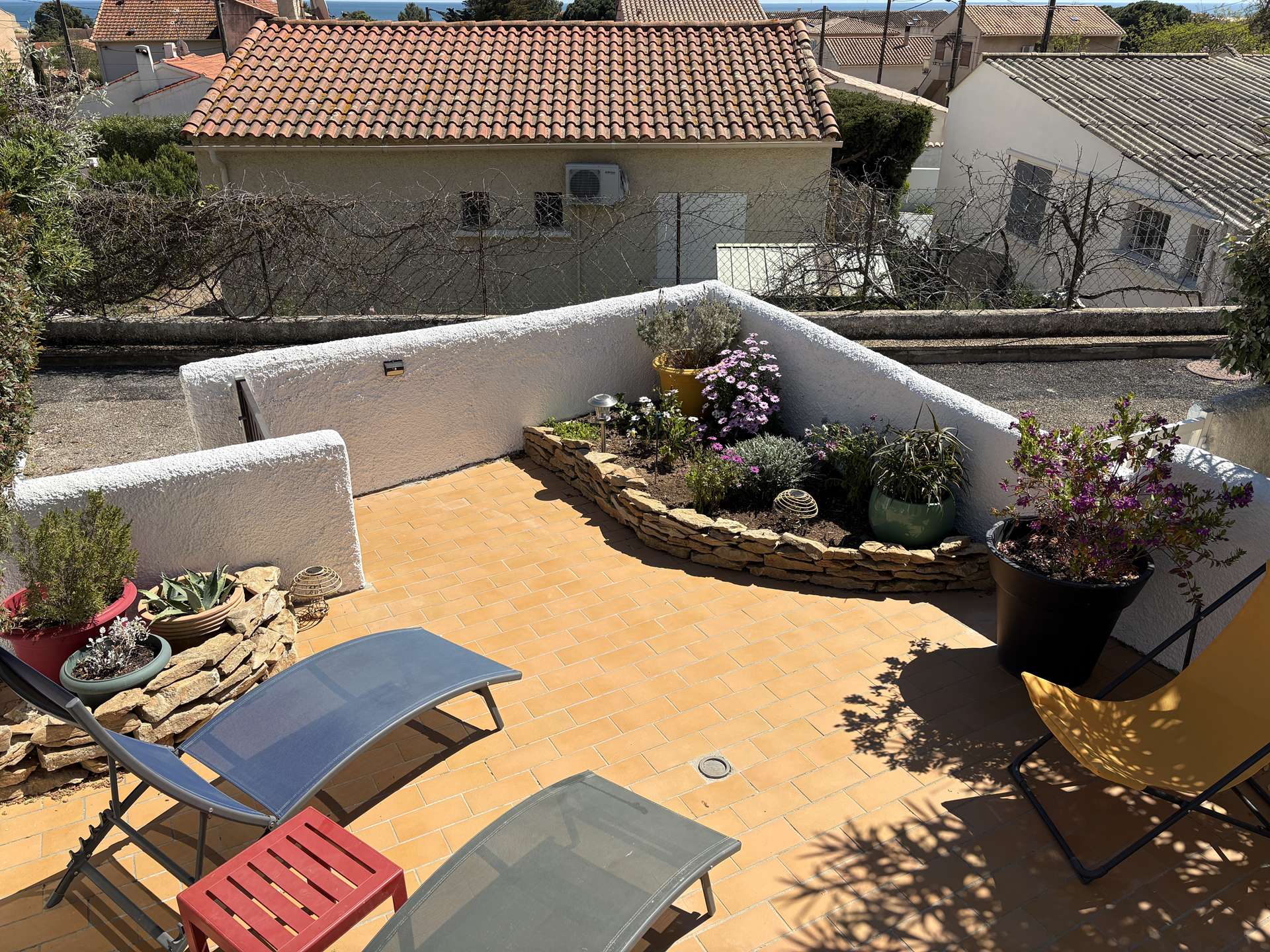 The advantages of this rental by the sea: double fenced terrace, barbecue, outdoor dining area